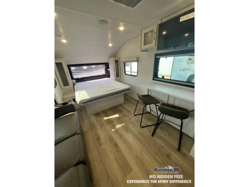 With any R-Pod travel trailer by Forest River, you will enjoy affordable luxury at the lowest tow weight in its class! There is a sealed underbelly with forced heat, a curved dual-pane acrylic front window with a bug screen and night shade, plus a large roof mounted solar panel for off-grid capabilities. The 15K A/C unit will keep you comfortable during the summer camping months, and the tankless water heater will provide endless hot showers after hiking, biking, swimming and more! Each model also includes a black glass friction hinge entrance door, roof ladder prep, exterior motion lighting, plus a hot and cold exterior spray port to wash off sand from the beach. Inside, you'll enjoy seamless Surf-X kitchen countertops, blackout roller shades, and a central vacuum system for hassle-free cleaning!