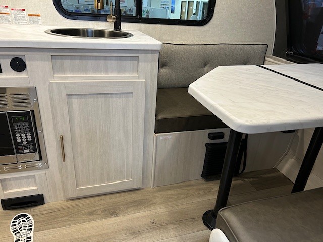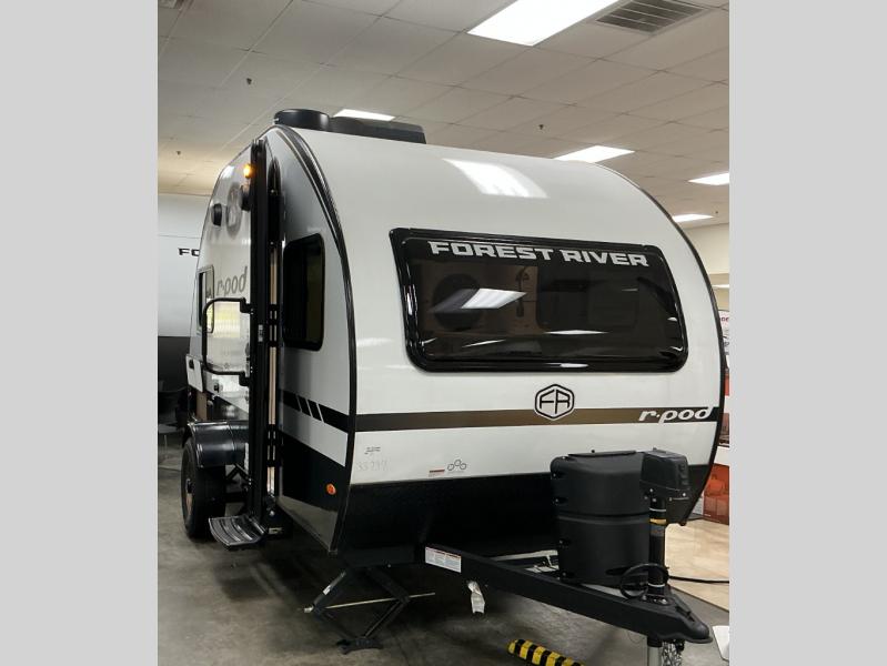 With any R-Pod travel trailer by Forest River, you will enjoy affordable luxury at the lowest tow weight in its class! There is a sealed underbelly with forced heat, a curved dual-pane acrylic front window with a bug screen and night shade, plus a large roof mounted solar panel for off-grid capabilities. The 15K A/C unit will keep you comfortable during the summer camping months, and the tankless water heater will provide endless hot showers after hiking, biking, swimming and more! Each model also includes a black glass friction hinge entrance door, roof ladder prep, exterior motion lighting, plus a hot and cold exterior spray port to wash off sand from the beach. Inside, you'll enjoy seamless Surf-X kitchen countertops, blackout roller shades, and a central vacuum system for hassle-free cleaning!