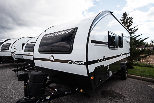 With any R-Pod travel trailer by Forest River, you will enjoy affordable luxury at the lowest tow weight in its class! There is a sealed underbelly with forced heat, a curved dual-pane acrylic front window with a bug screen and night shade, plus a large roof mounted solar panel for off-grid capabilities. The 15K A/C unit will keep you comfortable during the summer camping months, and the tankless water heater will provide endless hot showers after hiking, biking, swimming and more! Each model also includes a black glass friction hinge entrance door, roof ladder prep, exterior motion lighting, plus a hot and cold exterior spray port to wash off sand from the beach. Inside, you'll enjoy seamless Surf-X kitchen countertops, blackout roller shades, and a central vacuum system for hassle-free cleaning!
