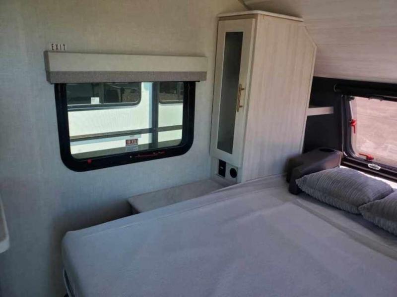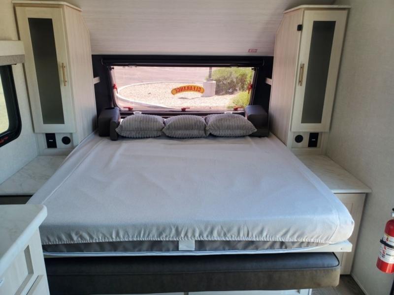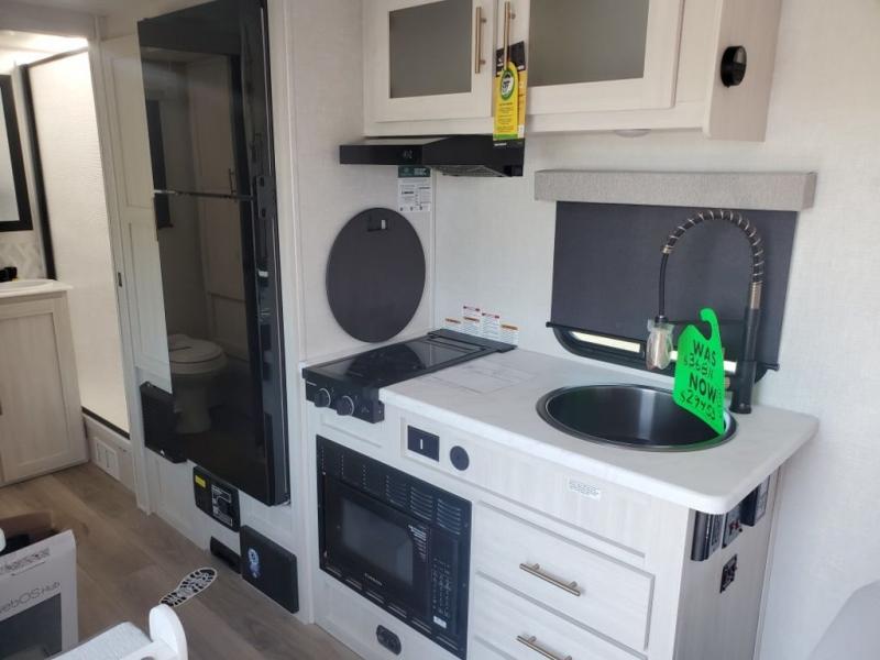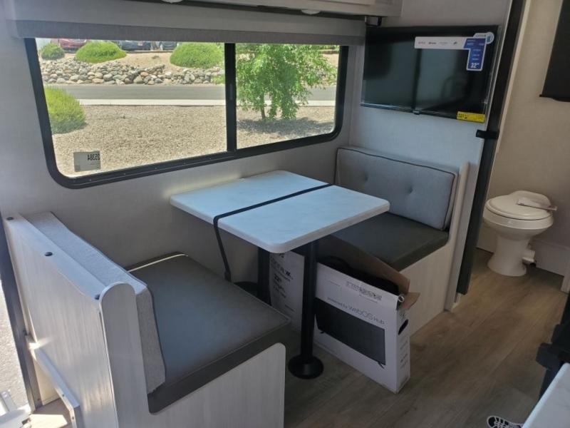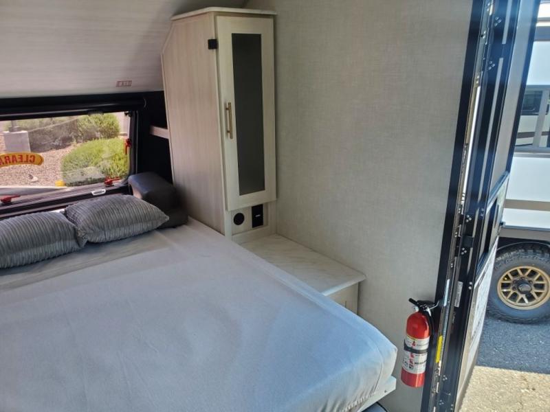 You're going to love all of the conveniences and versatility of this travel trailer! The front Murphy bed folds away to reveal the sofa which gives you a comfortable place to sit during the day and to sleep at night too. The rear full bath features everything you will need to get squeaky clean each morning as well as a large linen closet for clean towels. After you have whipped up your best meal with the two-burner cooktop, you can head to the booth dinette and enjoy eating it there comfortably. This model also includes the Hood River Edition that comes with Mud Legend all terrain tires with TPMS, a MaxxAir vent cover, and 12V tank heaters!