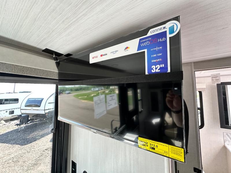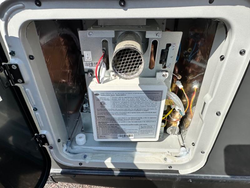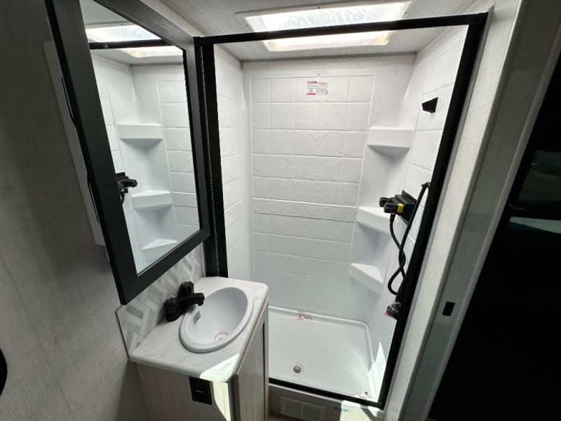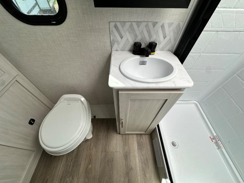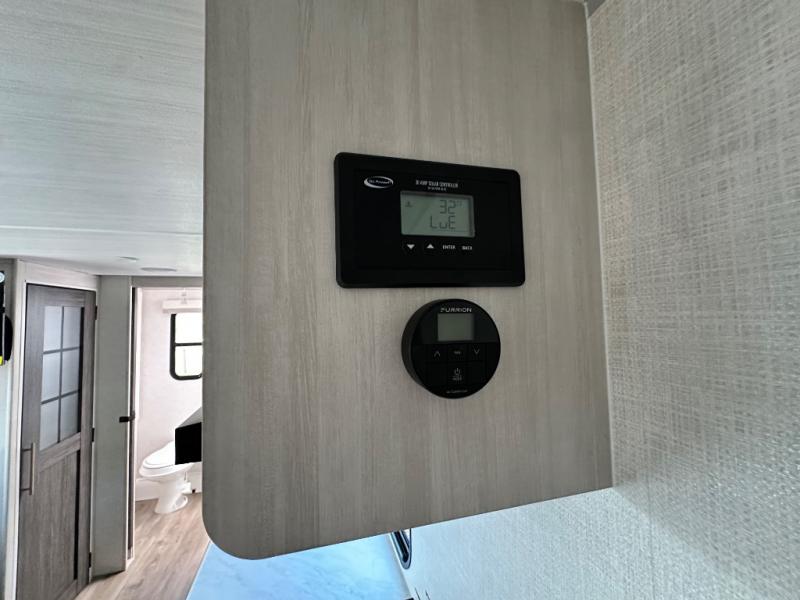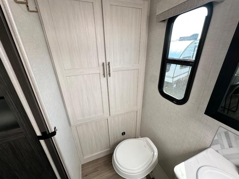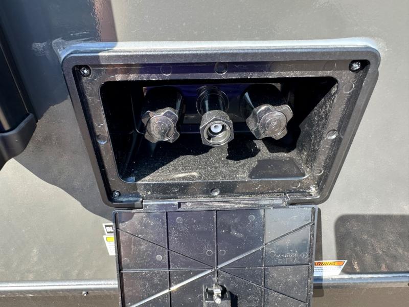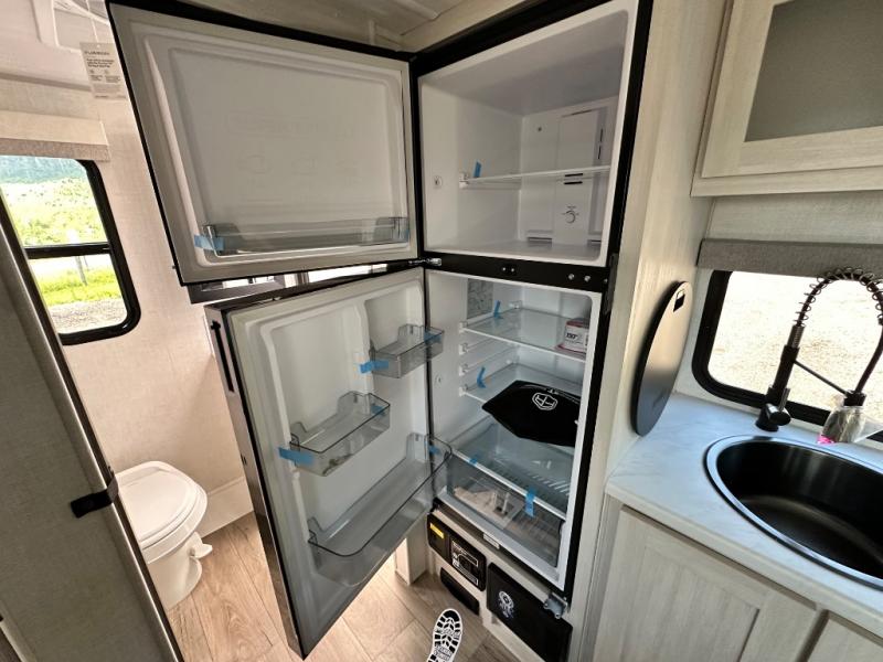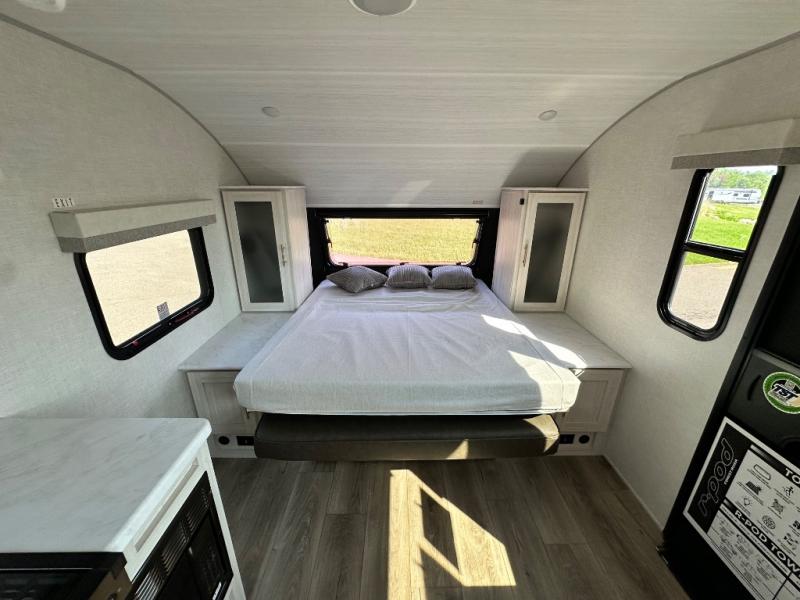 This versatile travel trailer is perfect for two adventure-seeking campers! You will love having a queen-size Murphy bed up front since you can fold it away during the day and relax on the sofa. There are also dual wardrobes to keep your clothes out of the way plus dual end end tables to set your coffee or book on. A full kitchen includes a convection microwave, 12V black glass refrigerator, and a counter with two chairs where you can dine each day. You will also love the flip-up window above the table, along with a 12V TV to keep you entertained, plus a pantry to keep food stocked. Head to the full rear bath that includes a large linen closet, a shower, and a night light for added convenience. The exterior is just as accommodating with its large roof mounted solar panel, rear accessory hitch, slam latch cargo doors, and more!