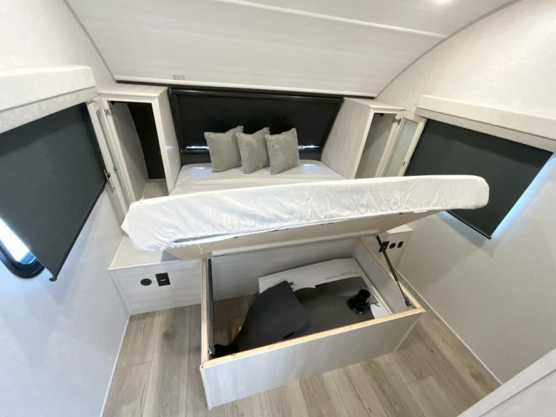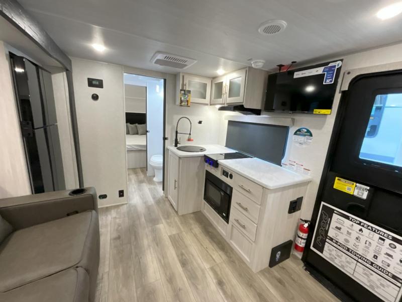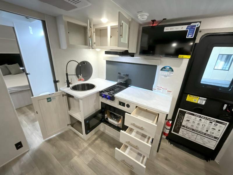 With any R-Pod travel trailer by Forest River, you will enjoy affordable luxury at the lowest tow weight in its class! There is a sealed underbelly with forced heat, a curved dual-pane acrylic front window with a bug screen and night shade, plus a large roof mounted solar panel for off-grid capabilities. The 15K A/C unit will keep you comfortable during the summer camping months, and the tankless water heater will provide endless hot showers after hiking, biking, swimming and more! Each model also includes a black glass friction hinge entrance door, roof ladder prep, exterior motion lighting, plus a hot and cold exterior spray port to wash off sand from the beach. Inside, you'll enjoy seamless Surf-X kitchen countertops, blackout roller shades, and a central vacuum system for hassle-free cleaning!