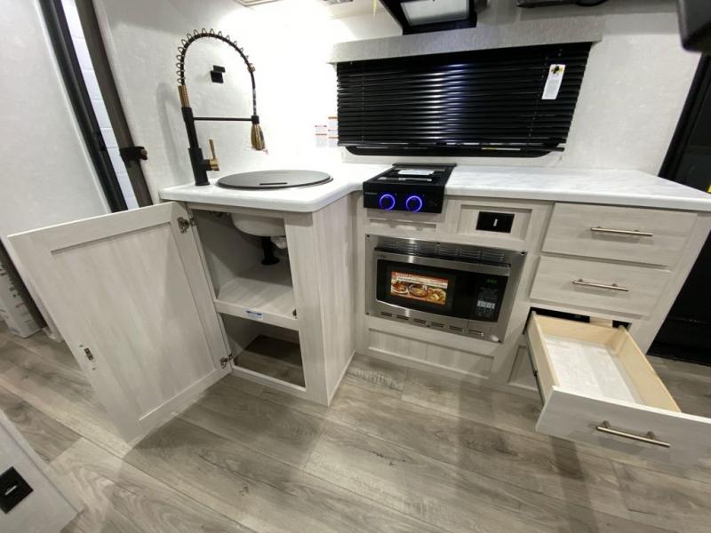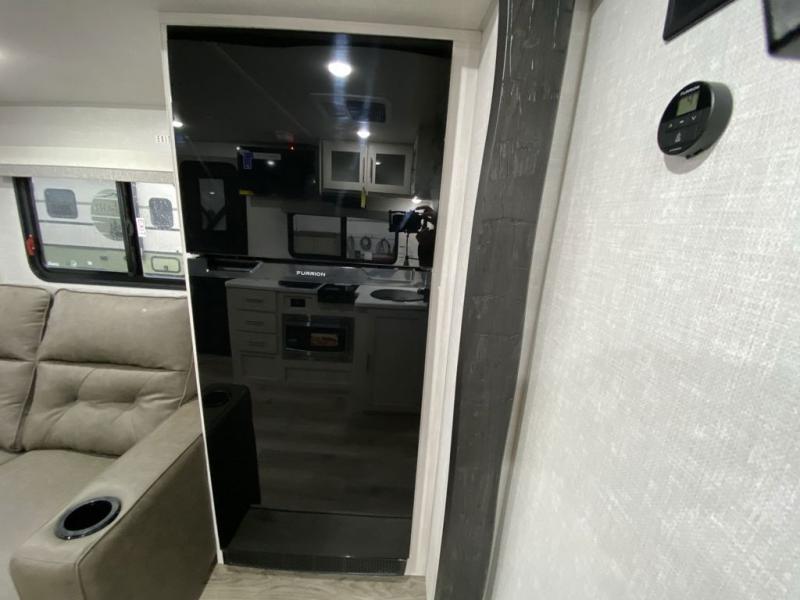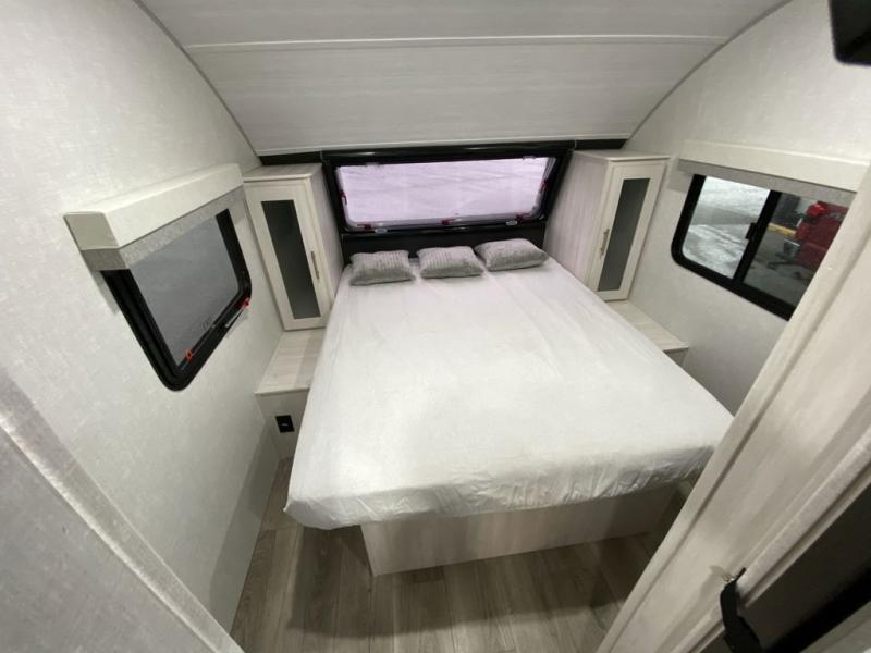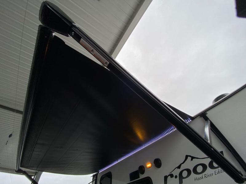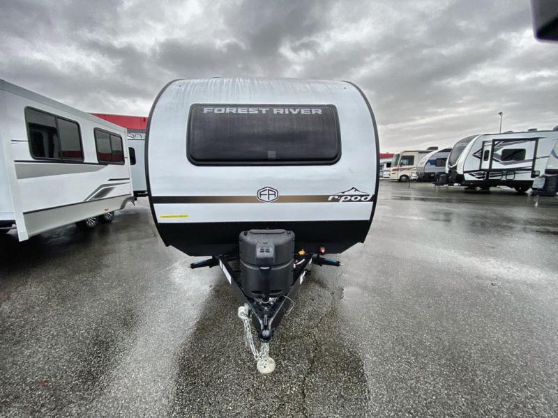 With any R-Pod travel trailer by Forest River, you will enjoy affordable luxury at the lowest tow weight in its class! There is a sealed underbelly with forced heat, a curved dual-pane acrylic front window with a bug screen and night shade, plus a large roof mounted solar panel for off-grid capabilities. The 15K A/C unit will keep you comfortable during the summer camping months, and the tankless water heater will provide endless hot showers after hiking, biking, swimming and more! Each model also includes a black glass friction hinge entrance door, roof ladder prep, exterior motion lighting, plus a hot and cold exterior spray port to wash off sand from the beach. Inside, you'll enjoy seamless Surf-X kitchen countertops, blackout roller shades, and a central vacuum system for hassle-free cleaning!