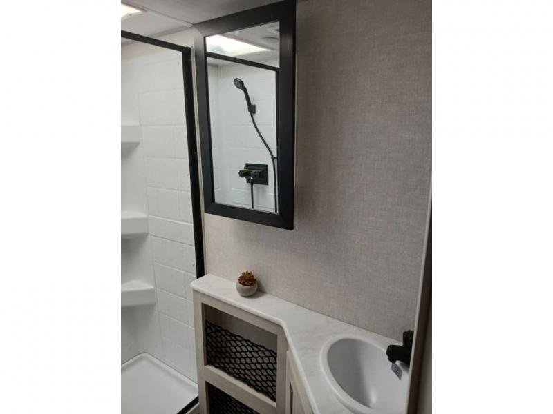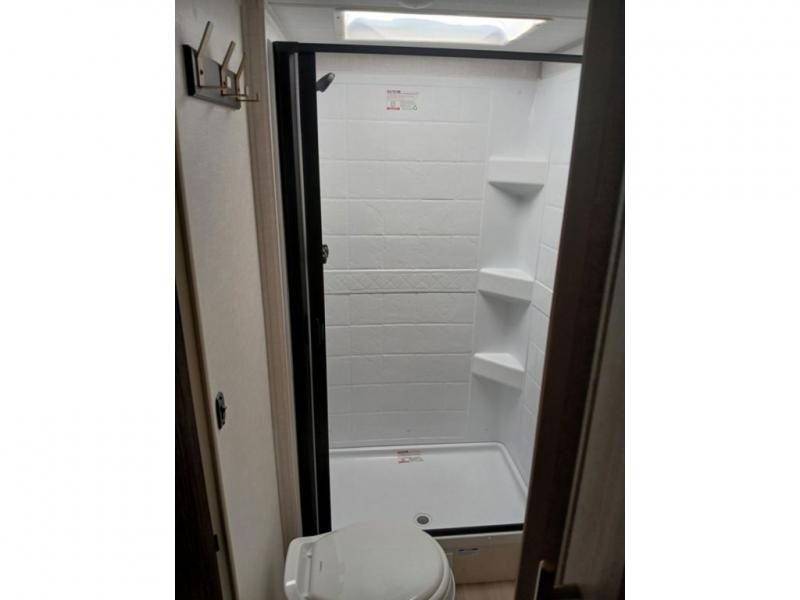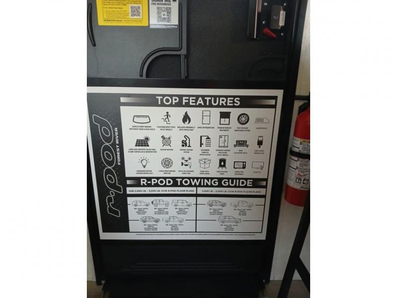 With any R-Pod travel trailer by Forest River, you will enjoy affordable luxury at the lowest tow weight in its class! There is a sealed underbelly with forced heat, a curved dual-pane acrylic front window with a bug screen and night shade, plus a large roof mounted solar panel for off-grid capabilities. The 15K A/C unit will keep you comfortable during the summer camping months, and the tankless water heater will provide endless hot showers after hiking, biking, swimming and more! Each model also includes a black glass friction hinge entrance door, roof ladder prep, exterior motion lighting, plus a hot and cold exterior spray port to wash off sand from the beach. Inside, you'll enjoy seamless Surf-X kitchen countertops, blackout roller shades, and a central vacuum system for hassle-free cleaning!
