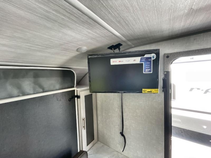 With any R-Pod travel trailer by Forest River, you will enjoy affordable luxury at the lowest tow weight in its class! There is a sealed underbelly with forced heat, a curved dual-pane acrylic front window with a bug screen and night shade, plus a large roof mounted solar panel for off-grid capabilities. The 15K A/C unit will keep you comfortable during the summer camping months, and the tankless water heater will provide endless hot showers after hiking, biking, swimming and more! Each model also includes a black glass friction hinge entrance door, roof ladder prep, exterior motion lighting, plus a hot and cold exterior spray port to wash off sand from the beach. Inside, you'll enjoy seamless Surf-X kitchen countertops, blackout roller shades, and a central vacuum system for hassle-free cleaning!