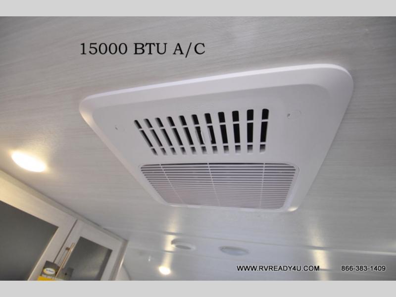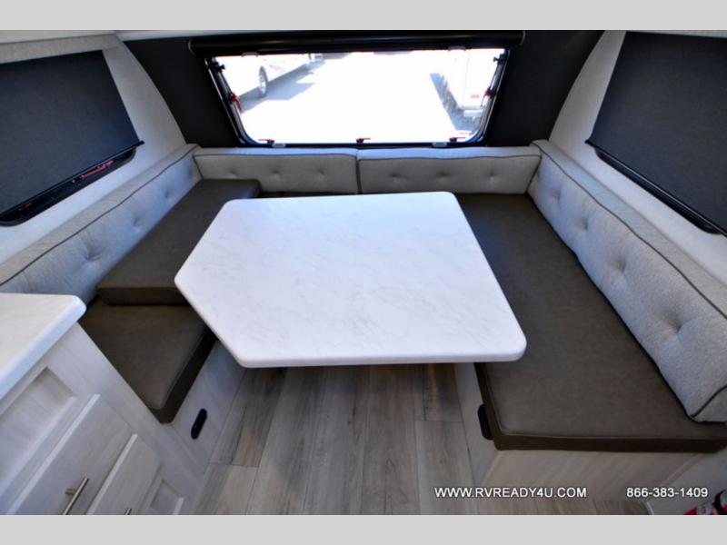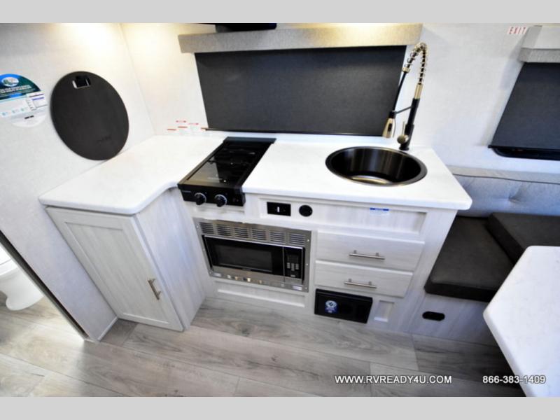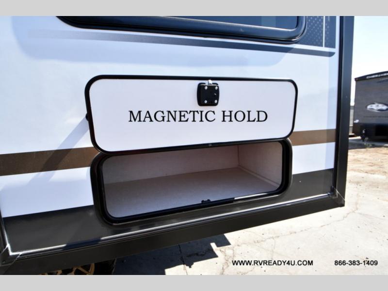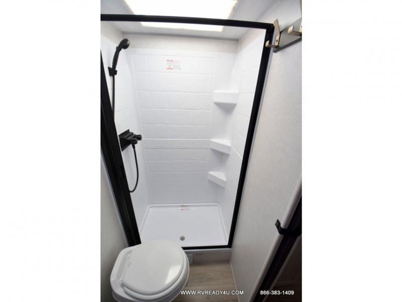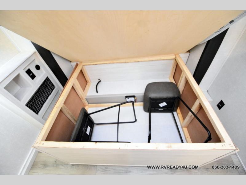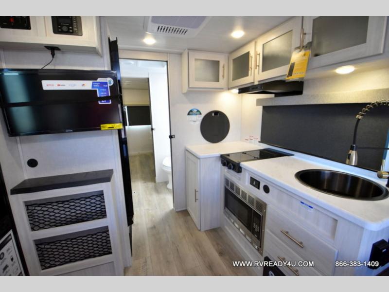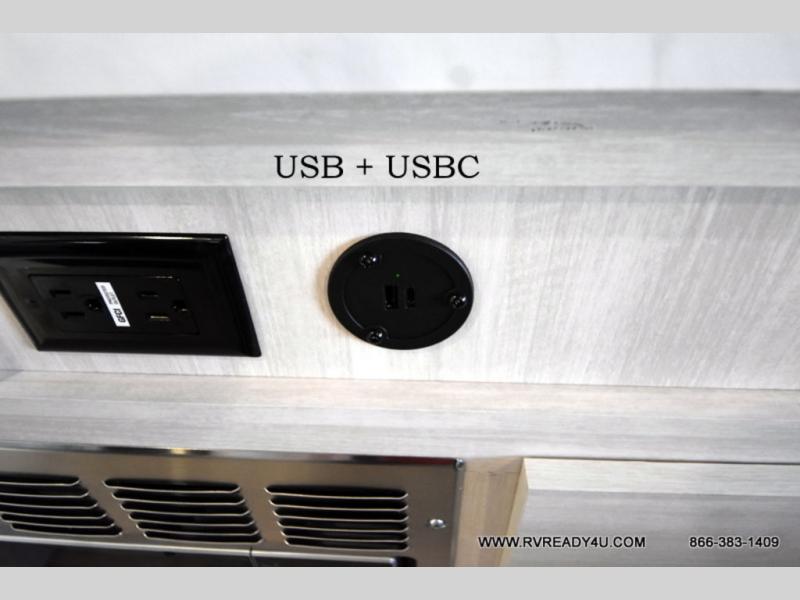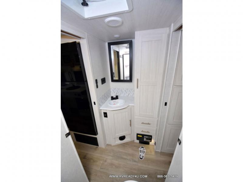Time spent in this travel trailer will be time well spent! You will have all the comforts of home, including a private bedroom with two wardrobes, a queen bed, and a desk/dresser that will allow you to get some work done if needed. The front U-shaped dinette with a swivel dinette table will double as dining and sleeping space, and the walk-through bath will be easily accessible for everyone to use. You can prepare meals on the two burner cooktop, or use the convection microwave. There is also a 12V black glass 12V refrigerator for food storage and plenty of counter space to prep meals. This model also includes the Hood River Edition that comes with Mud Legend all terrain tires with TPMS, advanced ground clearance, a MaxxAir vent cover, and 12V tank heaters!
