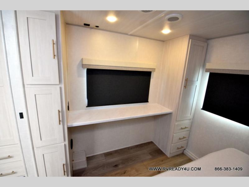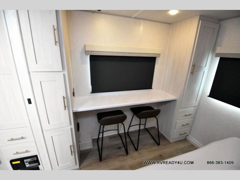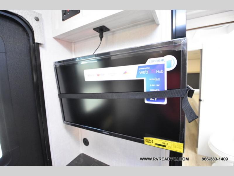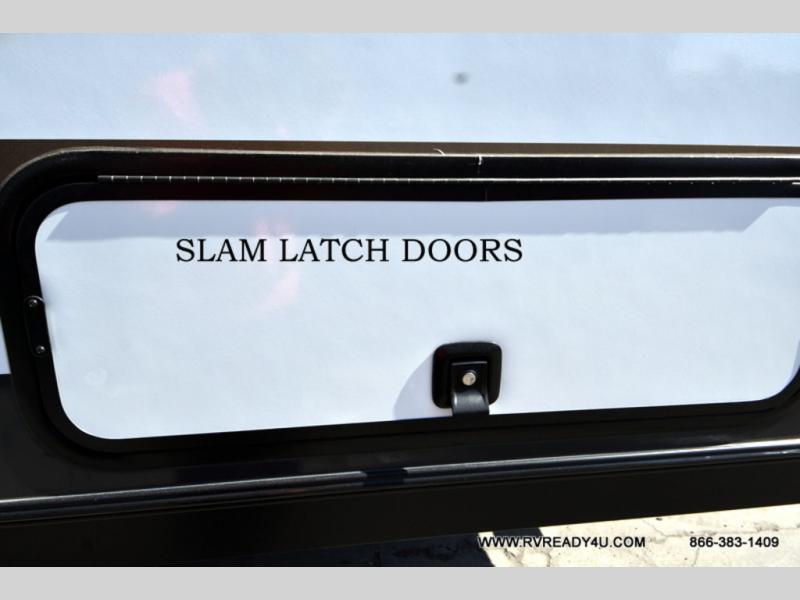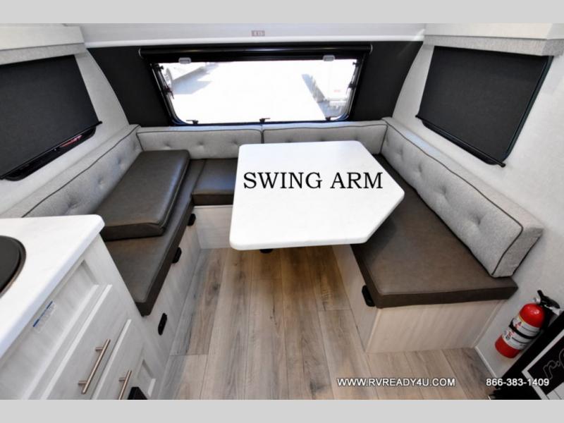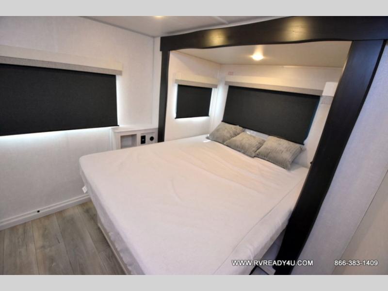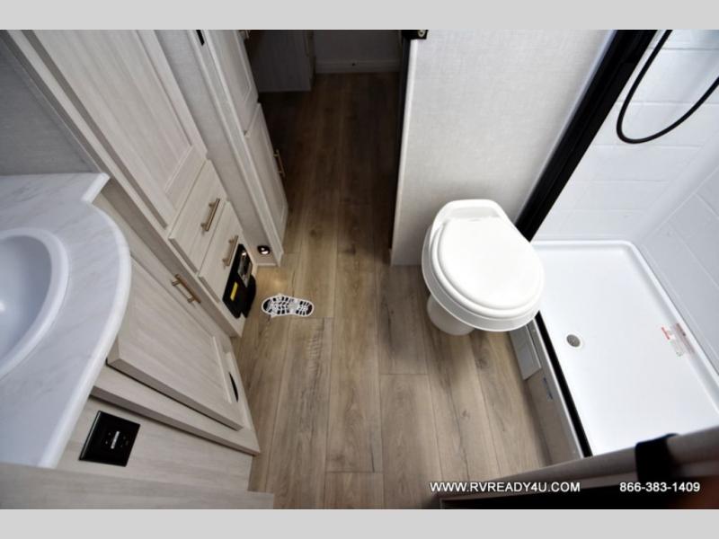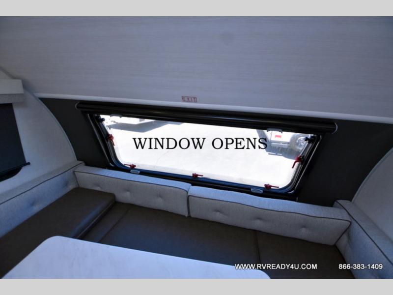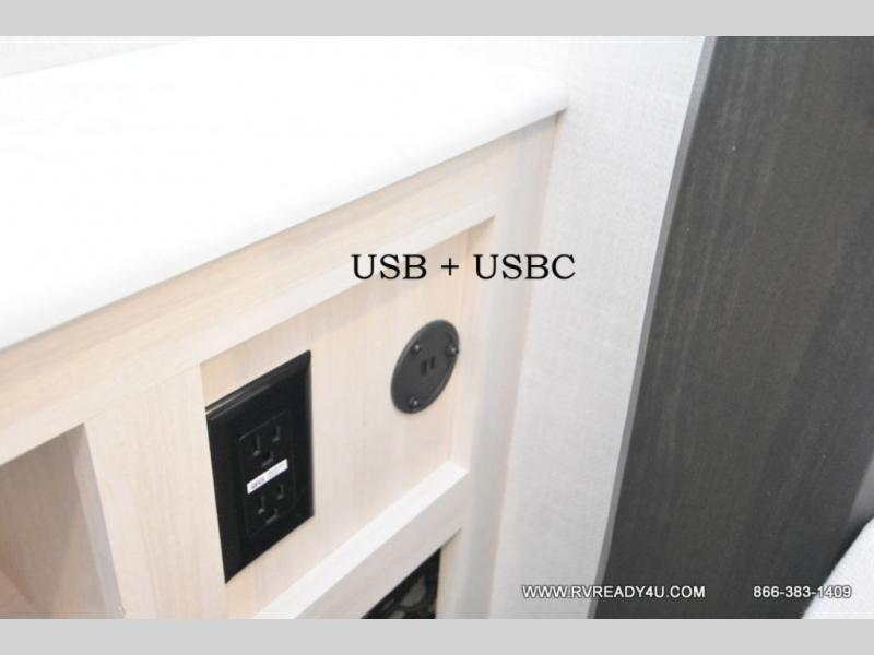 Time spent in this travel trailer will be time well spent! You will have all the comforts of home, including a private bedroom with two wardrobes, a queen bed, and a desk/dresser that will allow you to get some work done if needed. The front U-shaped dinette with a swivel dinette table will double as dining and sleeping space, and the walk-through bath will be easily accessible for everyone to use. You can prepare meals on the two burner cooktop, or use the convection microwave. There is also a 12V black glass 12V refrigerator for food storage and plenty of counter space to prep meals. This model also includes the Hood River Edition that comes with Mud Legend all terrain tires with TPMS, advanced ground clearance, a MaxxAir vent cover, and 12V tank heaters!
