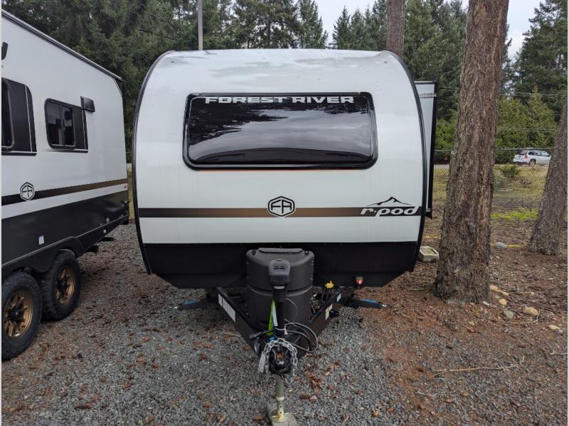 With any R-Pod travel trailer by Forest River, you will enjoy affordable luxury at the lowest tow weight in its class! There is a sealed underbelly with forced heat, a curved dual-pane acrylic front window with a bug screen and night shade, plus a large roof mounted solar panel for off-grid capabilities. The 15K A/C unit will keep you comfortable during the summer camping months, and the tankless water heater will provide endless hot showers after hiking, biking, swimming and more! Each model also includes a black glass friction hinge entrance door, roof ladder prep, exterior motion lighting, plus a hot and cold exterior spray port to wash off sand from the beach. Inside, you'll enjoy seamless Surf-X kitchen countertops, blackout roller shades, and a central vacuum system for hassle-free cleaning!