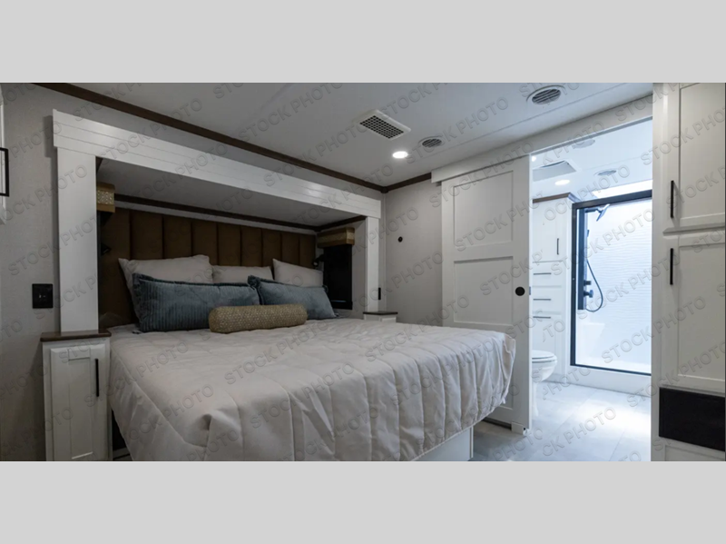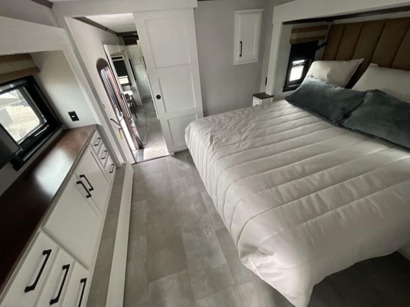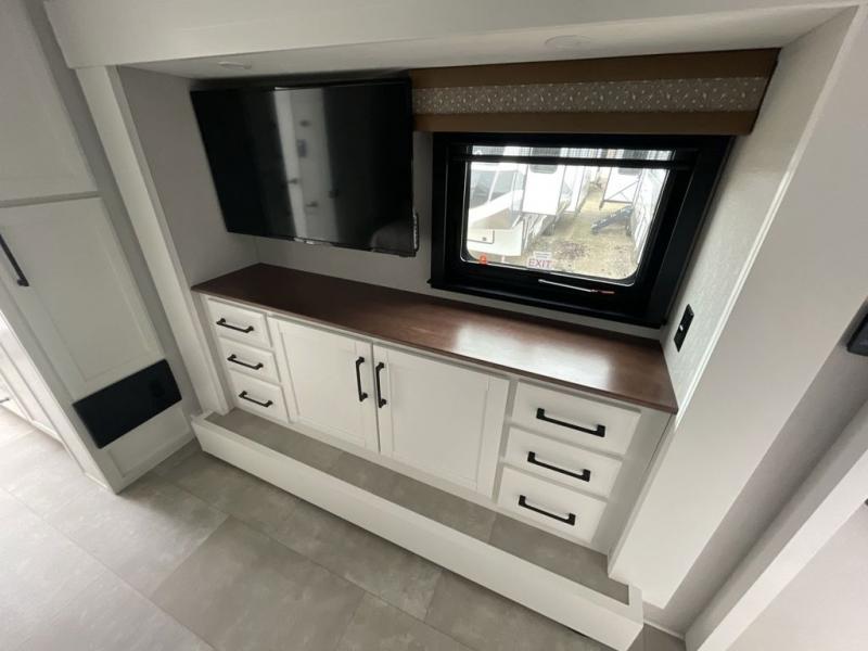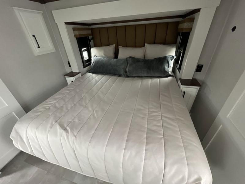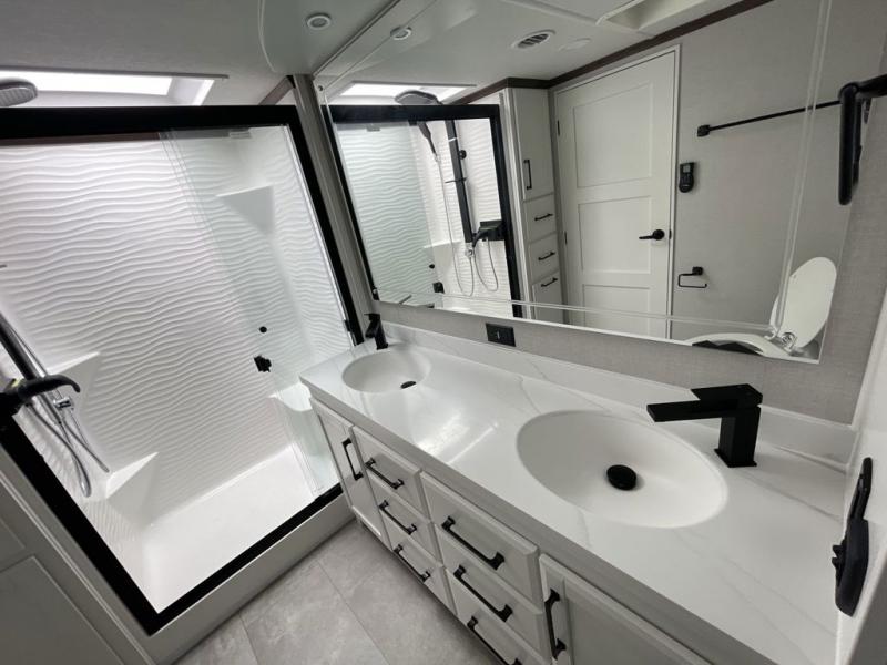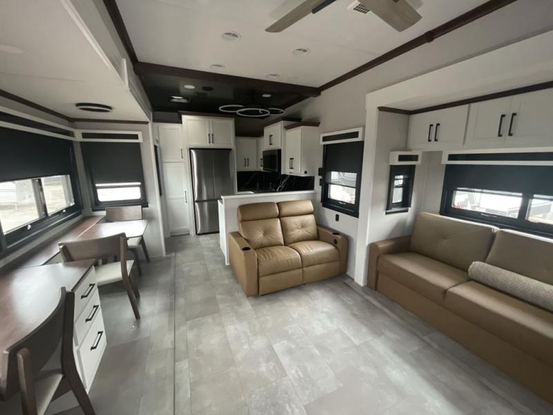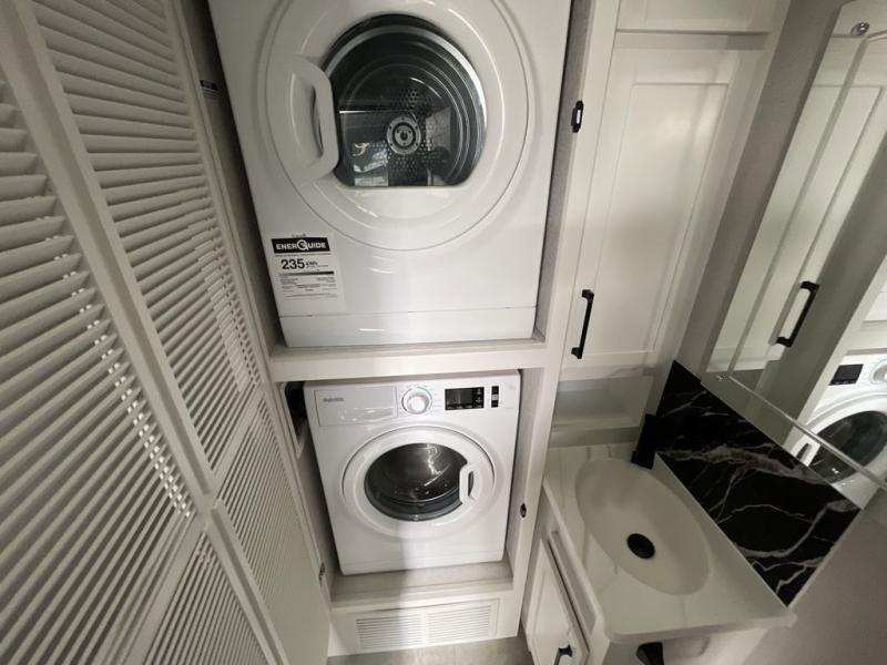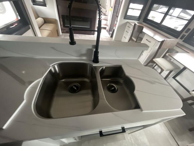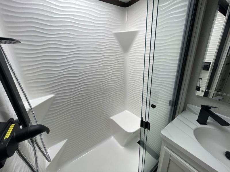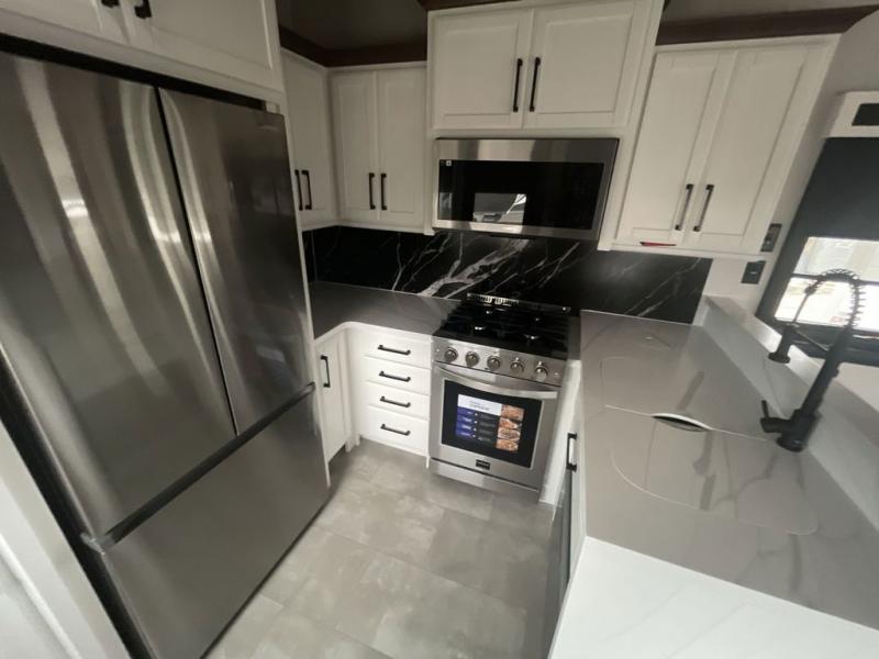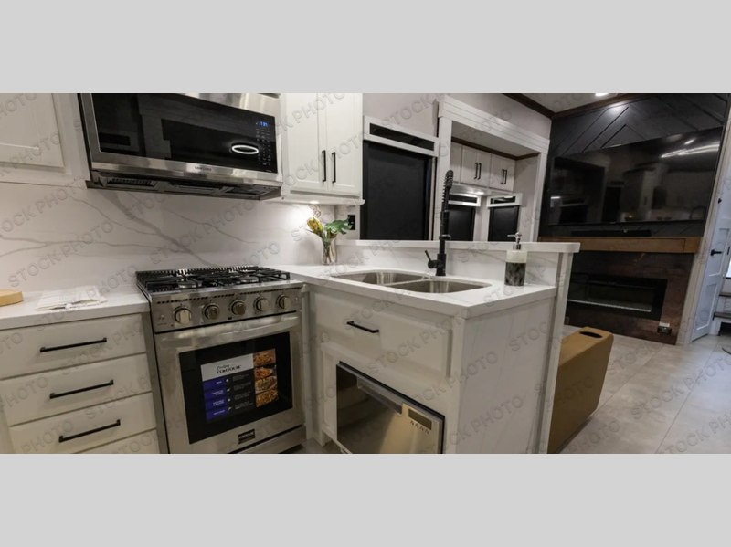 The Forest River RiverStone fifth wheels and toy haulers are luxurious units that have it all! You'll find an automatic six-point hydraulic level-up system to keep your unit in place, and there is preparation for a four-camera observation system. The TravlFi Journey XTR 4G/LTE router and WiFi extender will help you stay connected to the outside world, and you'll never have to overpack again since the Splendid “Astral” stackable washer and dryer will let you clean the small amount of clothes you've brought with you. Another high luxury is the Fischer Paykal dishwasher which will allow you to spend more time enjoying your camp life and less time cleaning up. Each unit is built with an LCI Road Armour suspension system, dual-pane frameless windows, a full docking station, a 200W solar panel, and a BMPro touch control system.