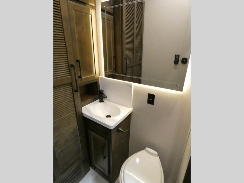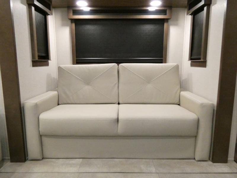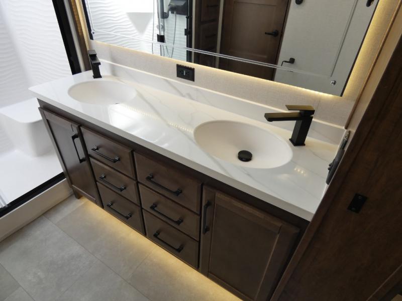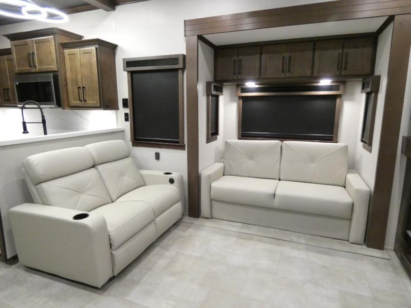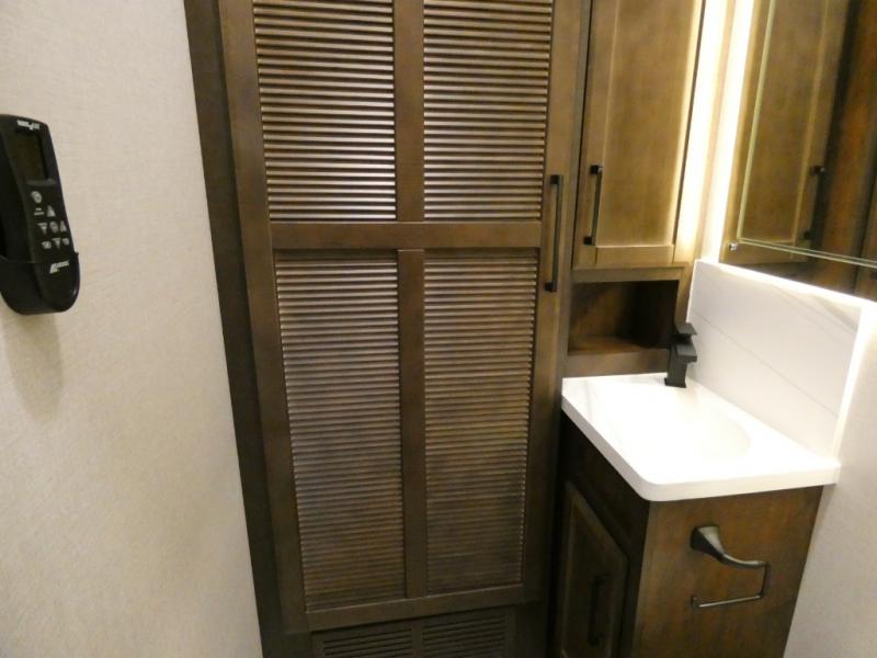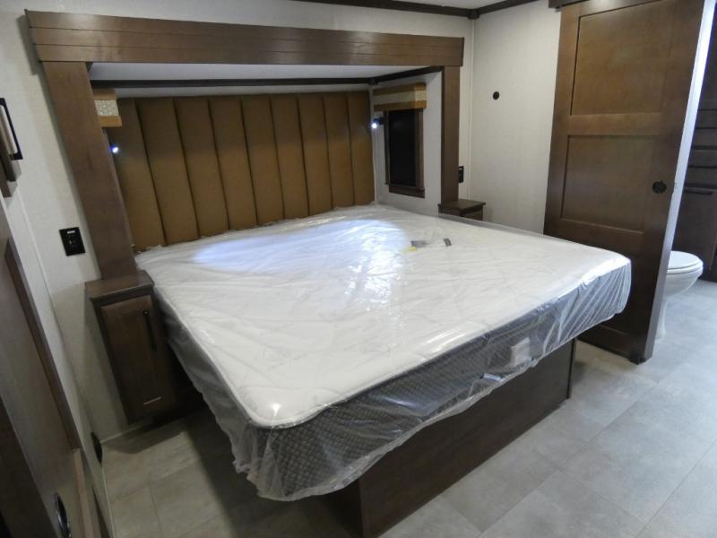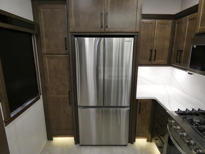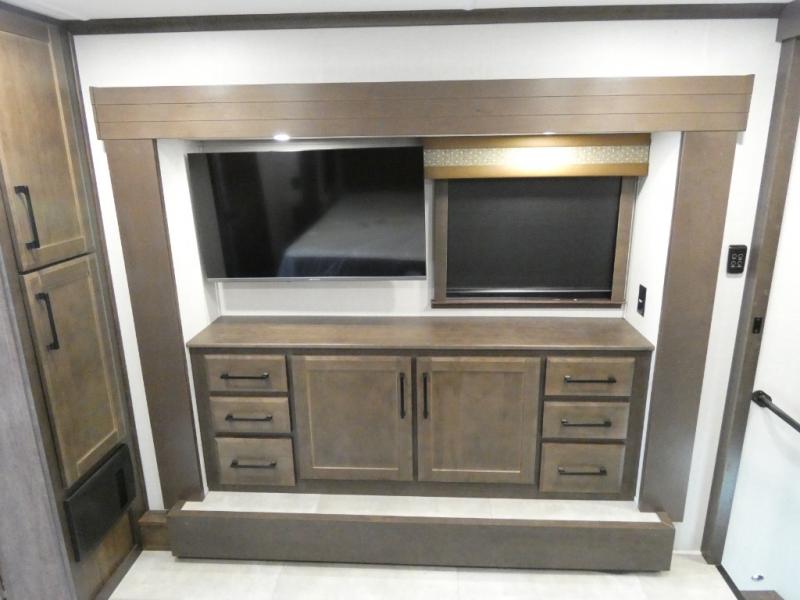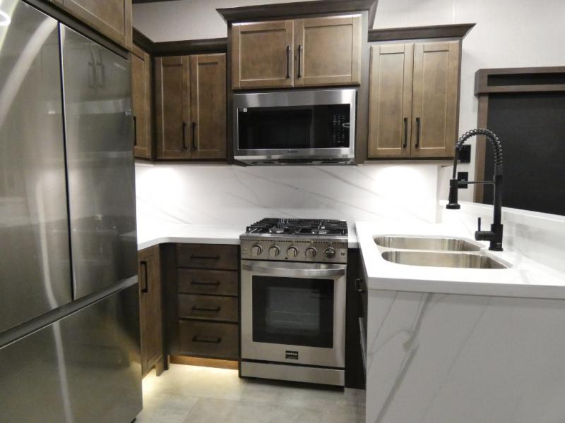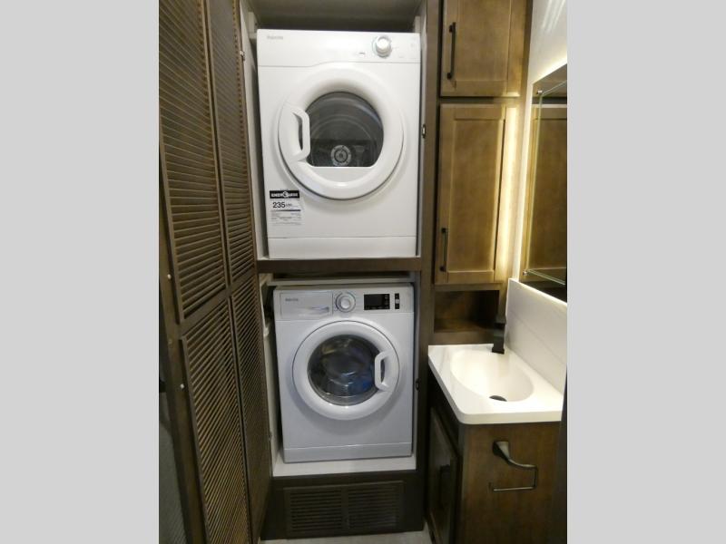 The Forest River RiverStone fifth wheels and toy haulers are luxurious units that have it all! You'll find an automatic six-point hydraulic level-up system to keep your unit in place, and there is preparation for a four-camera observation system. The TravlFi Journey XTR 4G/LTE router and WiFi extender will help you stay connected to the outside world, and you'll never have to overpack again since the Splendid “Astral” stackable washer and dryer will let you clean the small amount of clothes you've brought with you. Another high luxury is the Fischer Paykal dishwasher which will allow you to spend more time enjoying your camp life and less time cleaning up. Each unit is built with an LCI Road Armour suspension system, dual-pane frameless windows, a full docking station, a 200W solar panel, and a BMPro touch control system.