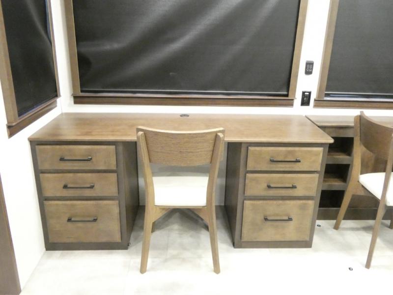 Show your family a good time with this RiverStone fifth wheel! You will get to stay in a super comfortable master suite at the front of this unit which has a dual-sink vanity in the full bathroom. The bedroom offers you a king-size bed that you can rest on while you watch the 40" LED TV across from you, and there is a half bathroom just outside the bedroom for your friends or family to use. If you've decided to bring work with you on the road, you'll be grateful to find a desk in the living area, and the pull-out dinette is a great place to sit down for meals. Work your magic in the kitchen and prepare something delicious on the four-burner range for everyone to eat.