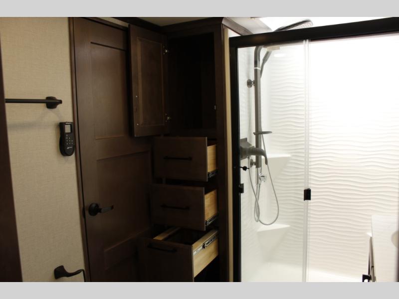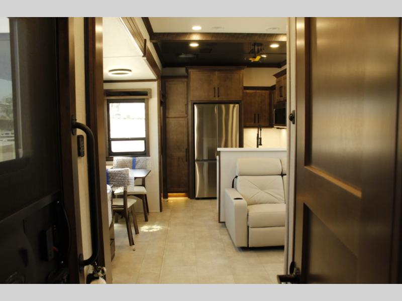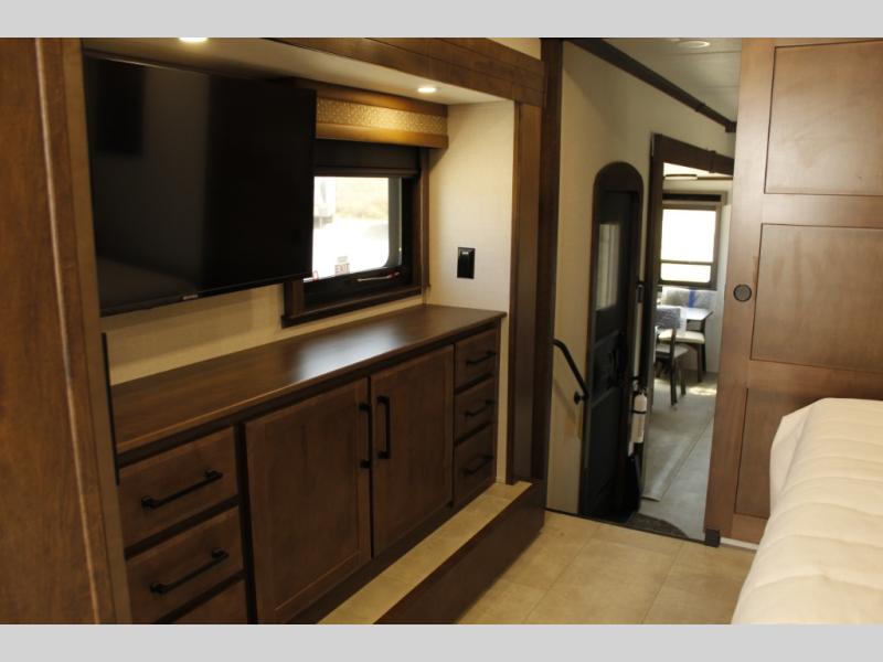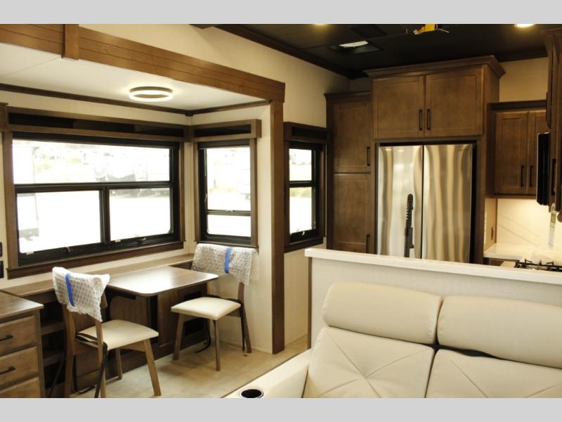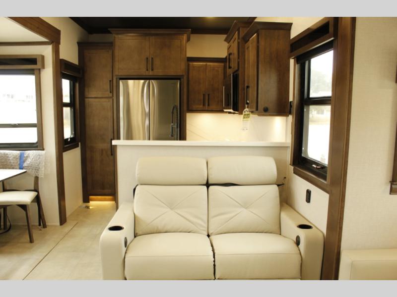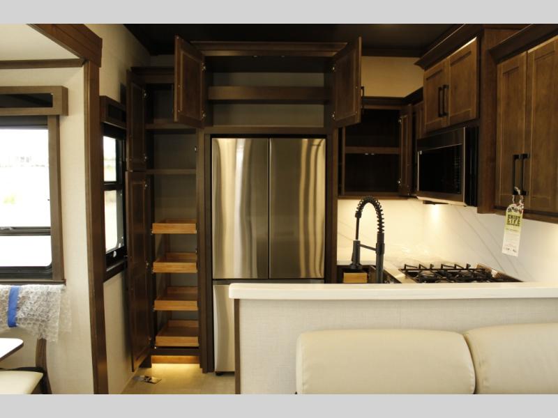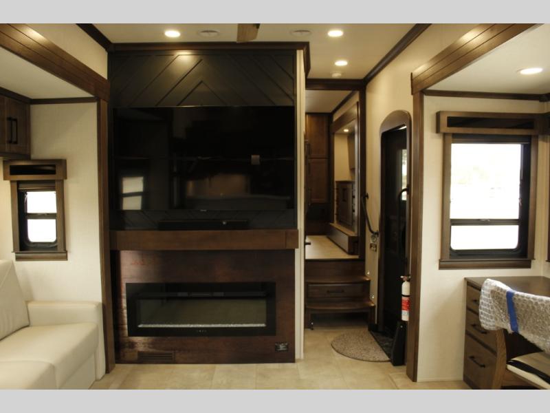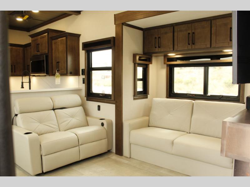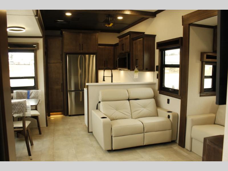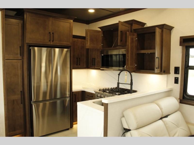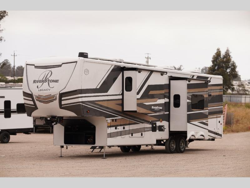 The Forest River RiverStone fifth wheels and toy haulers are luxurious units that have it all! You'll find an automatic six-point hydraulic level-up system to keep your unit in place, and there is preparation for a four-camera observation system. The TravlFi Journey XTR 4G/LTE router and WiFi extender will help you stay connected to the outside world, and you'll never have to overpack again since the Splendid “Astral” stackable washer and dryer will let you clean the small amount of clothes you've brought with you. Another high luxury is the Fischer Paykal dishwasher which will allow you to spend more time enjoying your camp life and less time cleaning up. Each unit is built with an LCI Road Armour suspension system, dual-pane frameless windows, a full docking station, a 200W solar panel, and a BMPro touch control system.