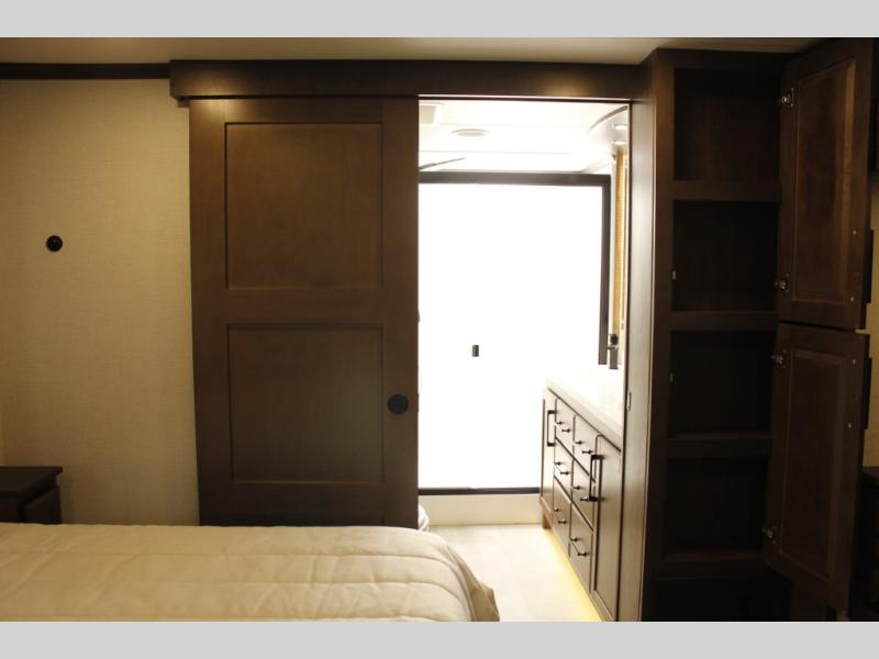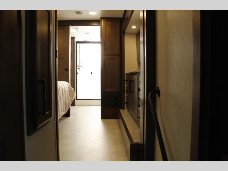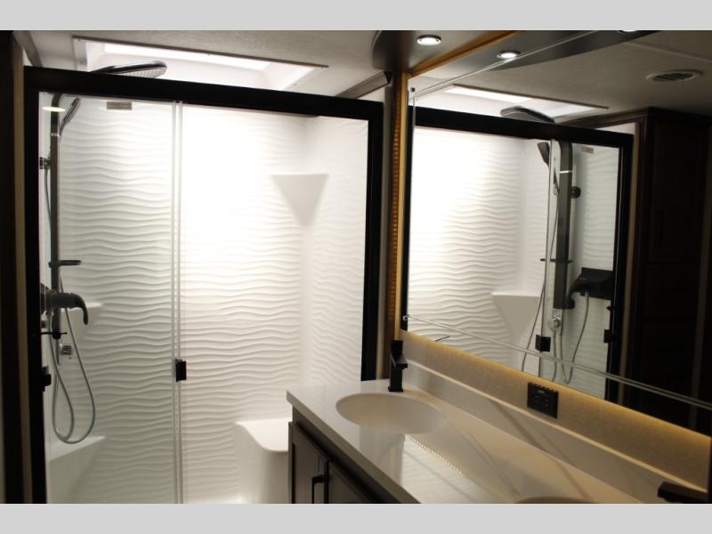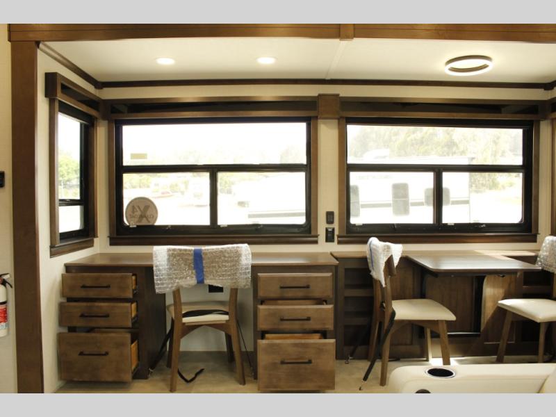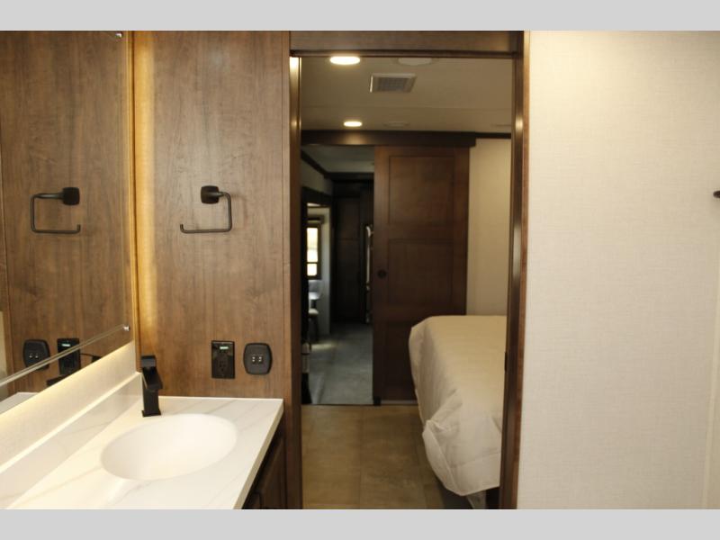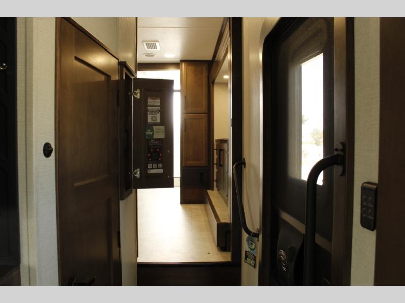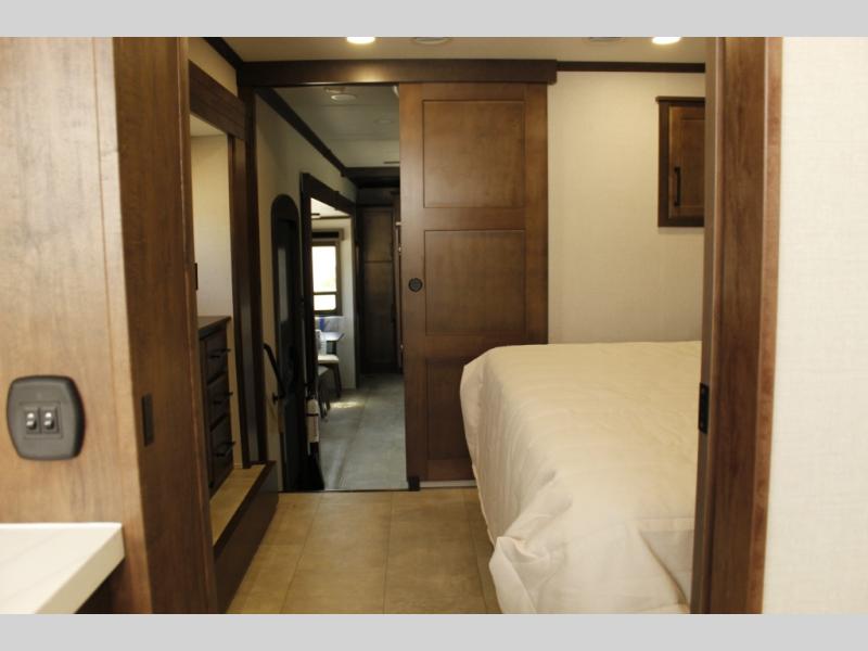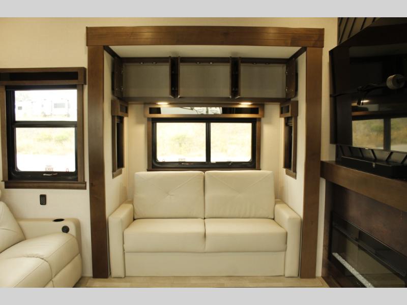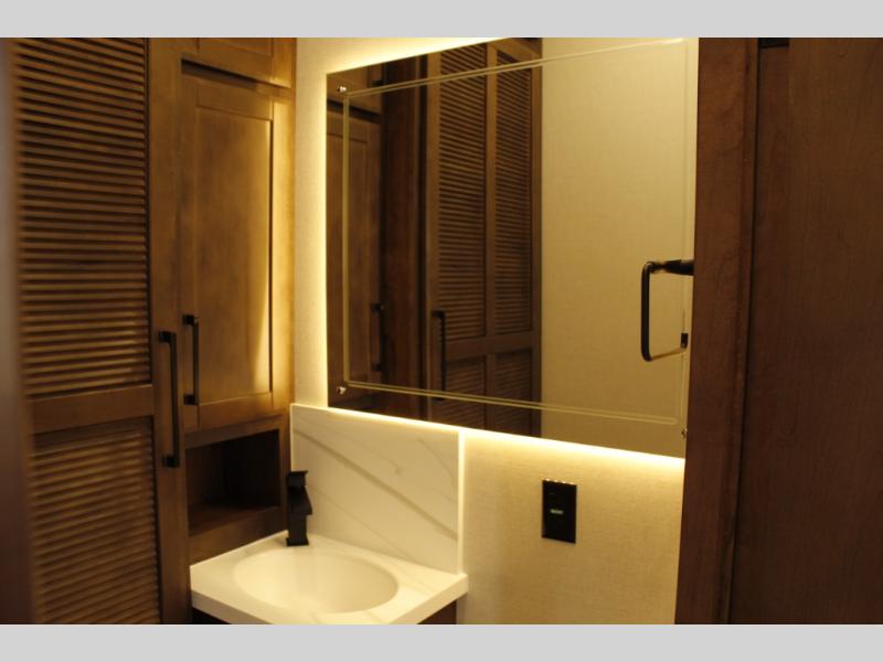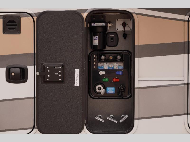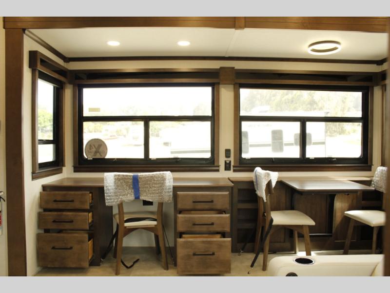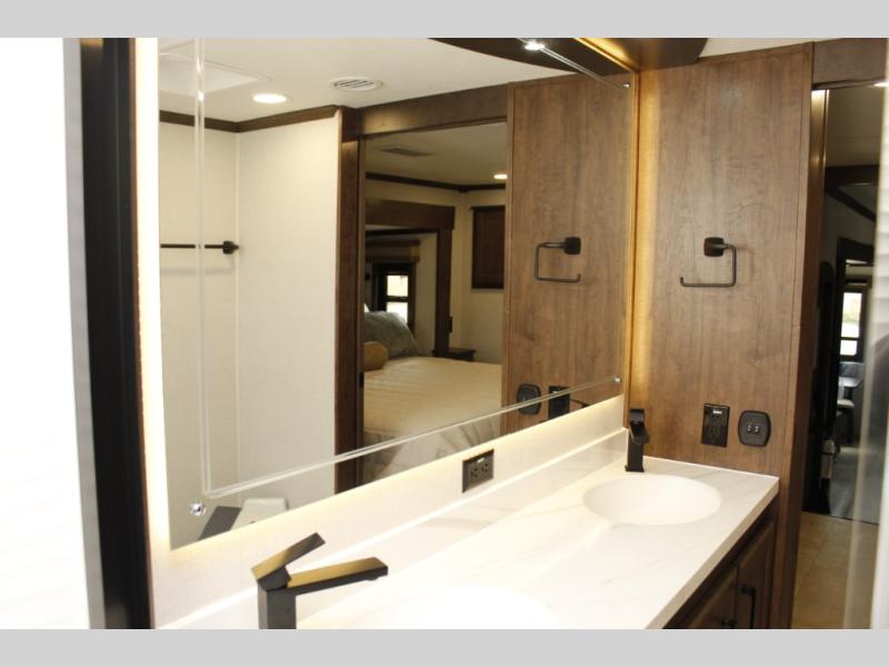 The Forest River RiverStone fifth wheels and toy haulers are luxurious units that have it all! You'll find an automatic six-point hydraulic level-up system to keep your unit in place, and there is preparation for a four-camera observation system. The TravlFi Journey XTR 4G/LTE router and WiFi extender will help you stay connected to the outside world, and you'll never have to overpack again since the Splendid “Astral” stackable washer and dryer will let you clean the small amount of clothes you've brought with you. Another high luxury is the Fischer Paykal dishwasher which will allow you to spend more time enjoying your camp life and less time cleaning up. Each unit is built with an LCI Road Armour suspension system, dual-pane frameless windows, a full docking station, a 200W solar panel, and a BMPro touch control system.