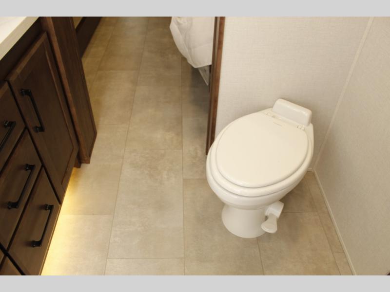 Show your family a good time with this RiverStone fifth wheel! You will get to stay in a super comfortable master suite at the front of this unit which has a dual-sink vanity in the full bathroom. The bedroom offers you a king-size bed that you can rest on while you watch the 40" LED TV across from you, and there is a half bathroom just outside the bedroom for your friends or family to use. If you've decided to bring work with you on the road, you'll be grateful to find a desk in the living area, and the pull-out dinette is a great place to sit down for meals. Work your magic in the kitchen and prepare something delicious on the four-burner range for everyone to eat.