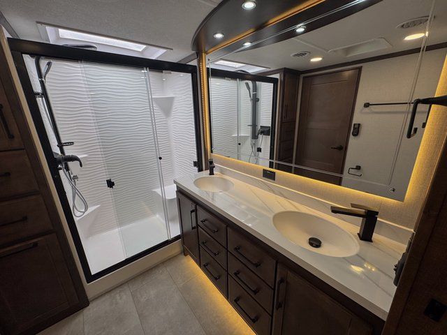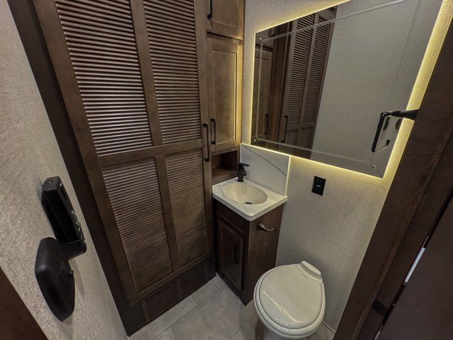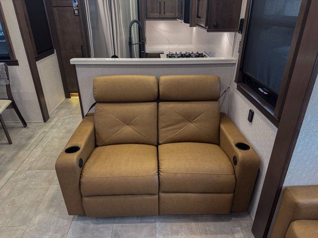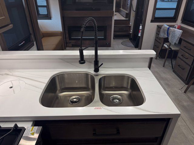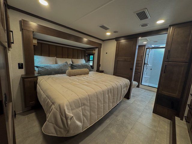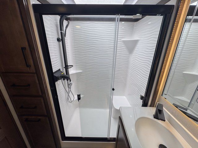 One of the standout features of the RiverStone 39RKFB is the full and half bath layout. The half bath is easily accessible for guests, while the private front full bath offers spa-like comfort. This setup makes entertaining easier and provides added privacy for everyone onboard.