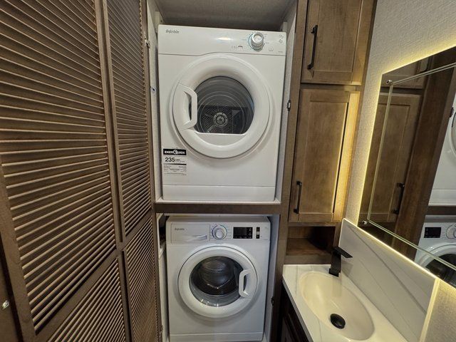 The washer and dryer allow you to pack lighter and travel longer without worrying about laundromats.