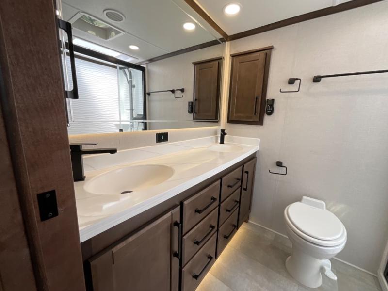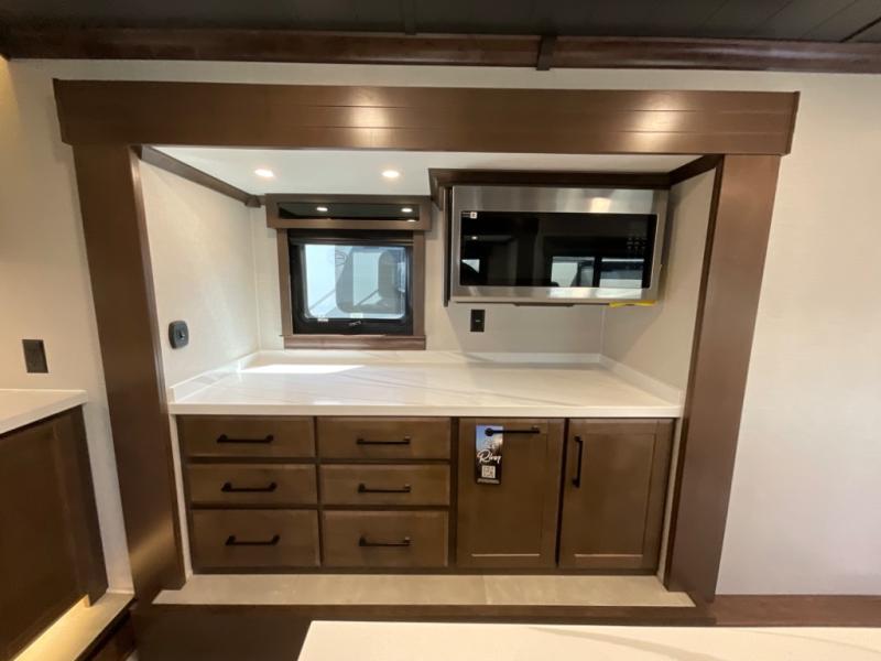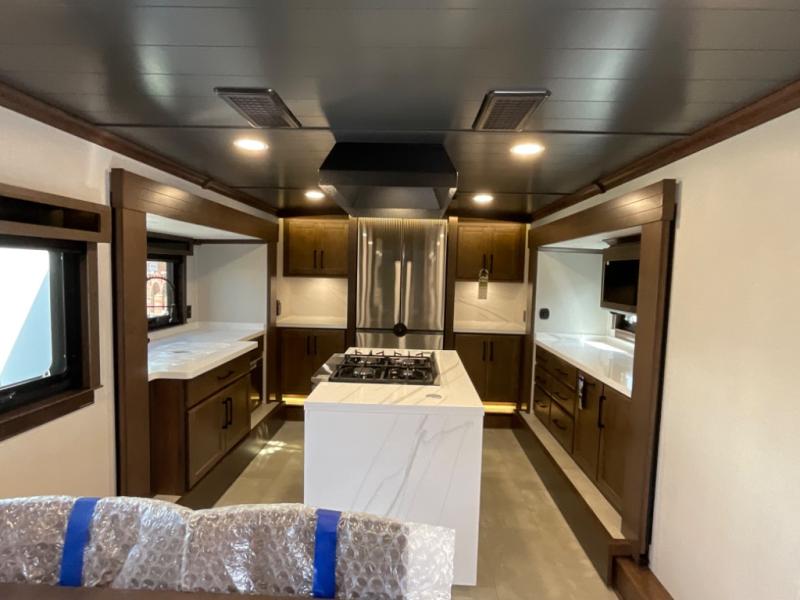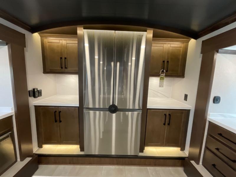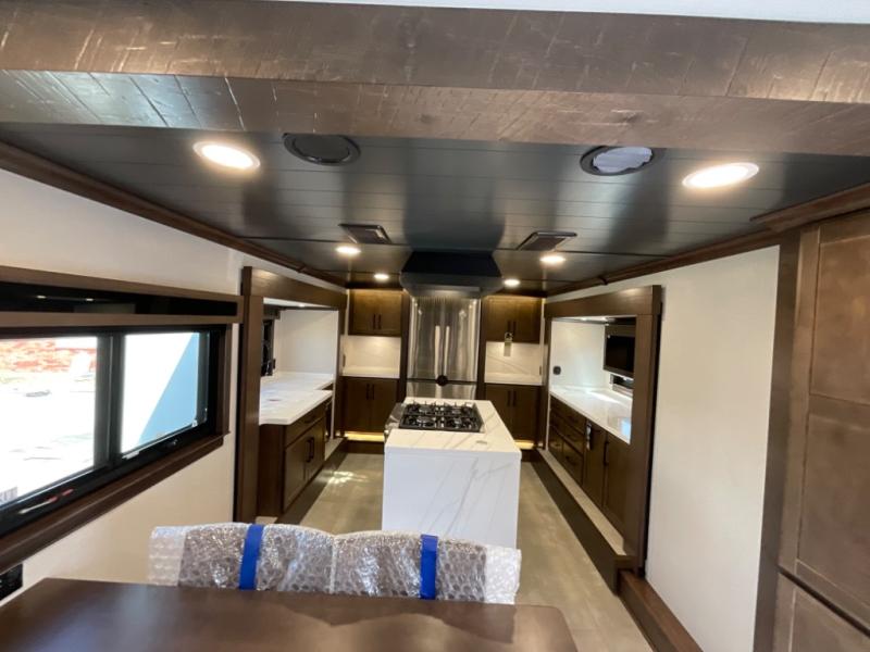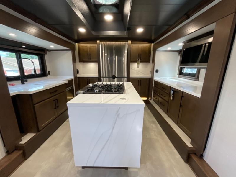 The Forest River RiverStone fifth wheels and toy haulers are luxurious units that have it all! You'll find an automatic six-point hydraulic level-up system to keep your unit in place, and there is preparation for a four-camera observation system. The TravlFi Journey XTR 4G/LTE router and WiFi extender will help you stay connected to the outside world, and you'll never have to overpack again since the Splendid “Astral” stackable washer and dryer will let you clean the small amount of clothes you've brought with you. Another high luxury is the Fischer Paykal dishwasher which will allow you to spend more time enjoying your camp life and less time cleaning up. Each unit is built with a LCI Road Armour suspension system, dual-pane frameless windows, a full docking station, a 200W solar panel, and a BMPro touch control system.