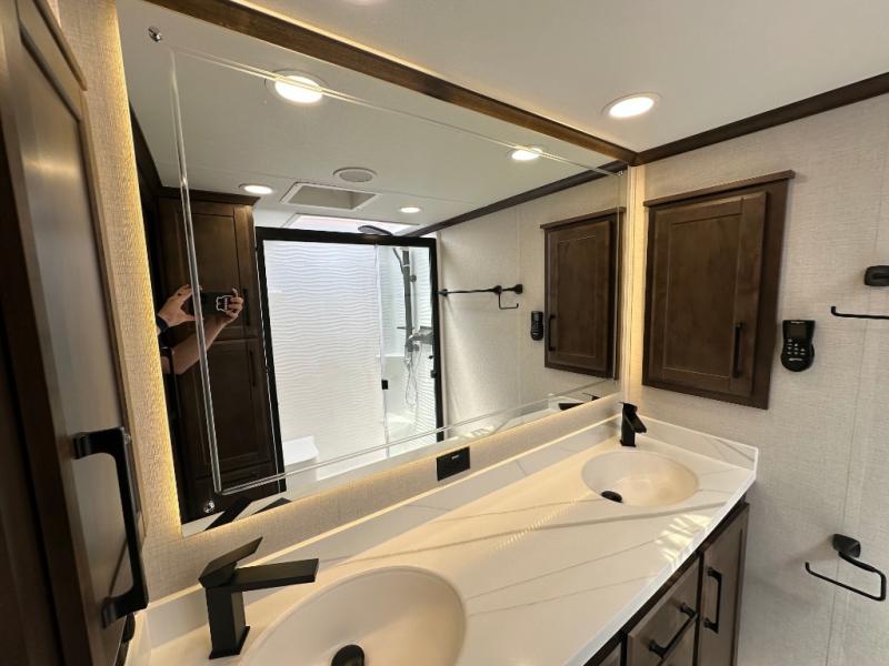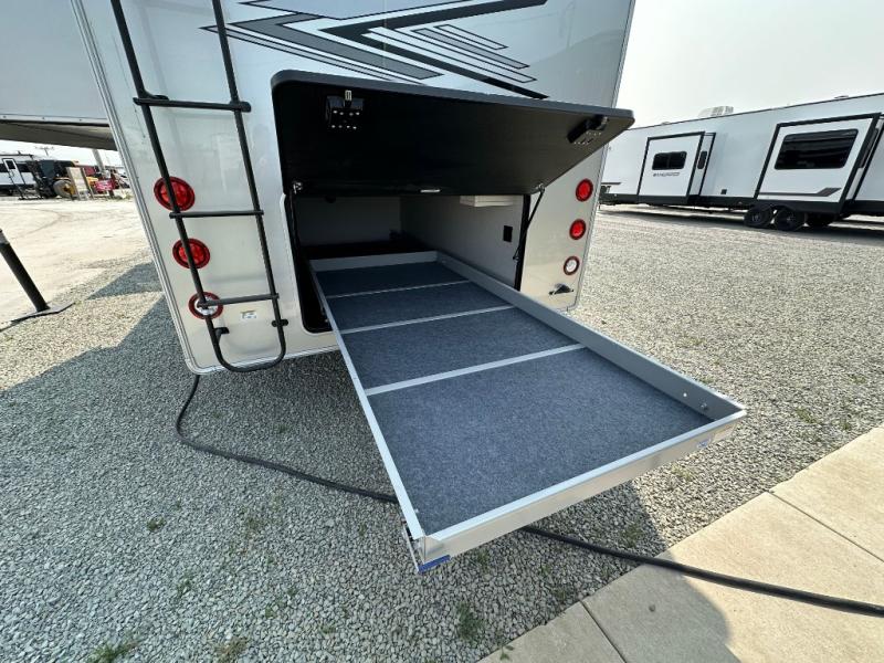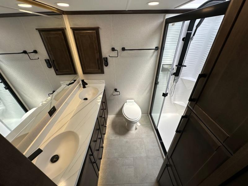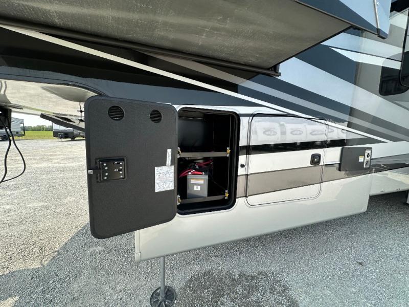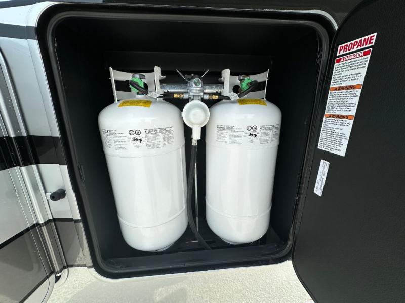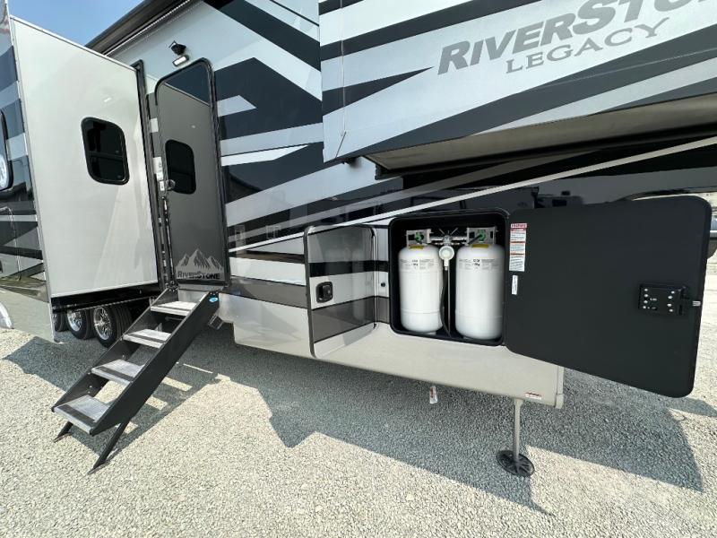 The Forest River RiverStone fifth wheels and toy haulers are luxurious units that have it all! You'll find an automatic six-point hydraulic level-up system to keep your unit in place, and there is preparation for a four-camera observation system. The TravlFi Journey XTR 4G/LTE router and WiFi extender will help you stay connected to the outside world, and you'll never have to overpack again since the Splendid “Astral” stackable washer and dryer will let you clean the small amount of clothes you've brought with you. Another high luxury is the Fischer Paykal dishwasher which will allow you to spend more time enjoying your camp life and less time cleaning up. Each unit is built with a LCI Road Armour suspension system, dual-pane frameless windows, a full docking station, a 200W solar panel, and a BMPro touch control system.