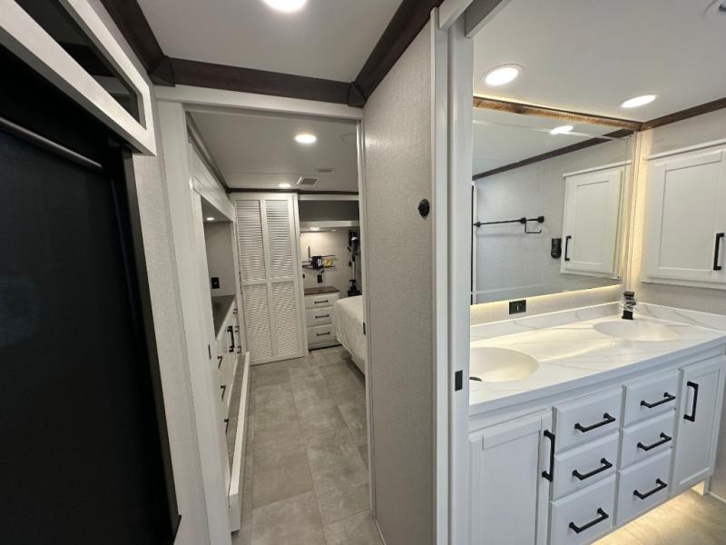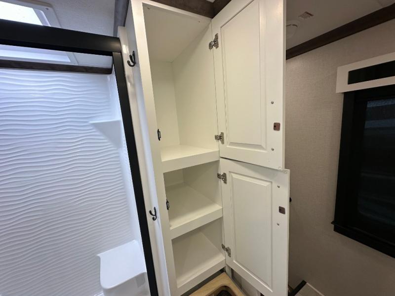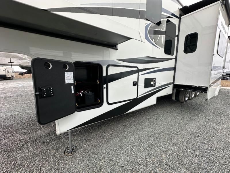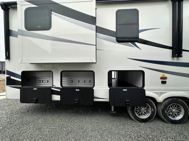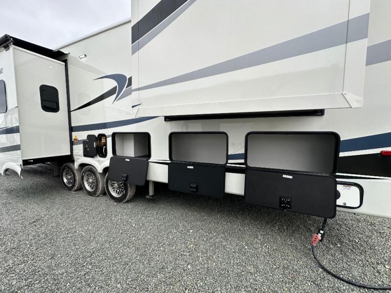 The Forest River RiverStone fifth wheels and toy haulers are luxurious units that have it all! You'll find an automatic six-point hydraulic level-up system to keep your unit in place, and there is preparation for a four-camera observation system. The TravlFi Journey XTR 4G/LTE router and WiFi extender will help you stay connected to the outside world, and you'll never have to overpack again since the Splendid “Astral” stackable washer and dryer will let you clean the small amount of clothes you've brought with you. Another high luxury is the Fischer Paykal dishwasher which will allow you to spend more time enjoying your camp life and less time cleaning up. Each unit is built with a LCI Road Armour suspension system, dual-pane frameless windows, a full docking station, a 200W solar panel, and a BMPro touch control system.