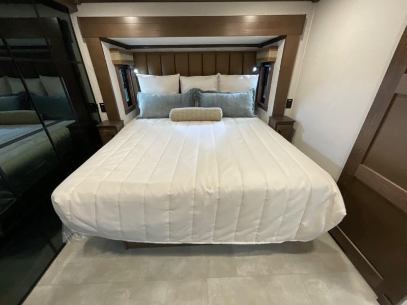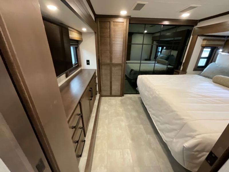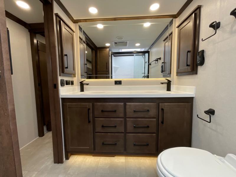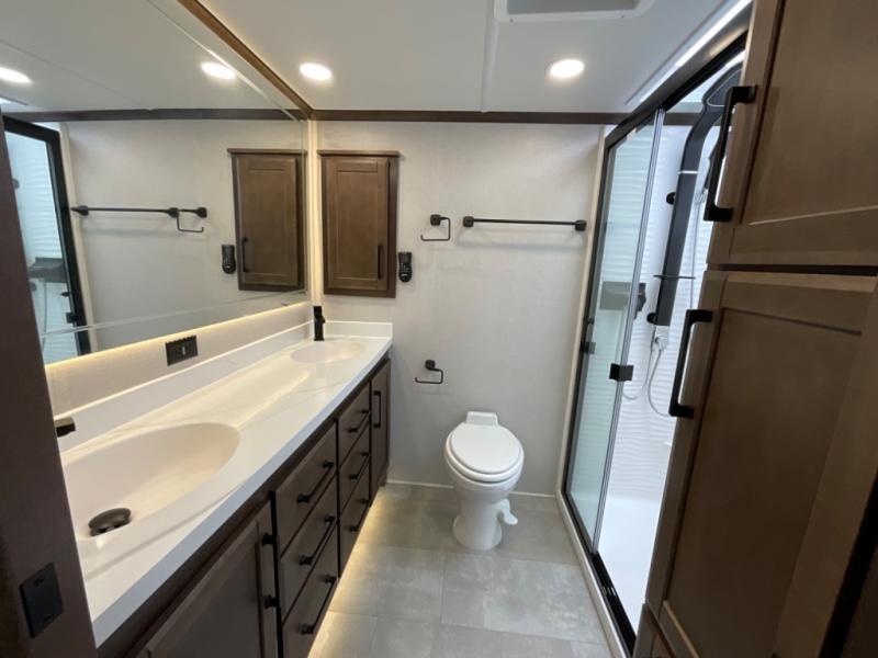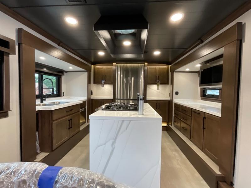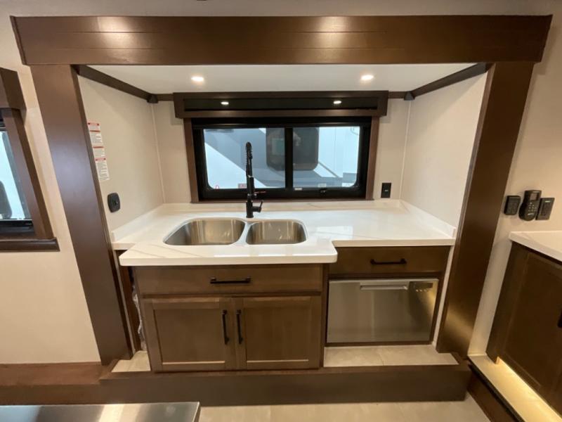 The Forest River RiverStone fifth wheels and toy haulers are luxurious units that have it all! You'll find an automatic six-point hydraulic level-up system to keep your unit in place, and there is preparation for a four-camera observation system. The TravlFi Journey XTR 4G/LTE router and WiFi extender will help you stay connected to the outside world, and you'll never have to overpack again since the Splendid “Astral” stackable washer and dryer will let you clean the small amount of clothes you've brought with you. Another high luxury is the Fischer Paykal dishwasher which will allow you to spend more time enjoying your camp life and less time cleaning up. Each unit is built with a LCI Road Armour suspension system, dual-pane frameless windows, a full docking station, a 200W solar panel, and a BMPro touch control system.
