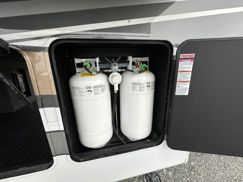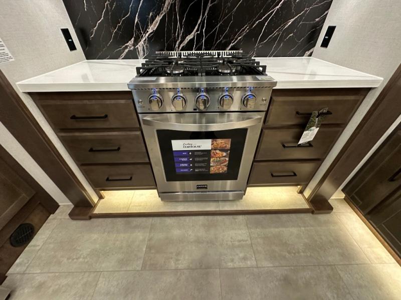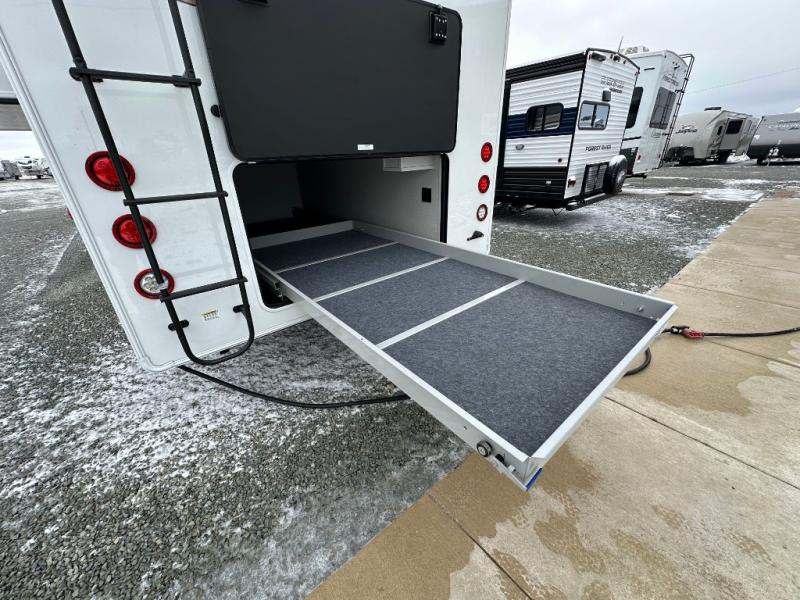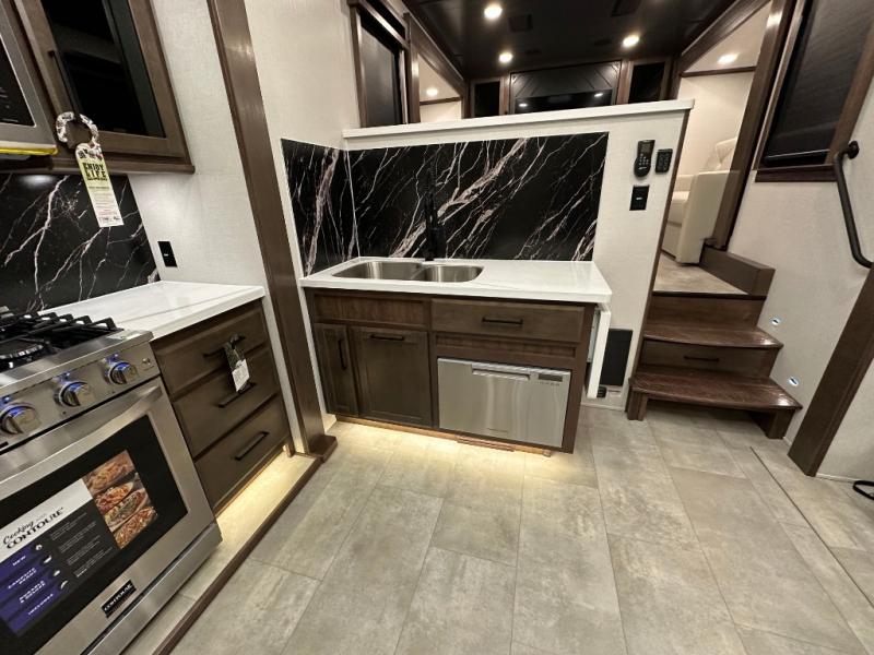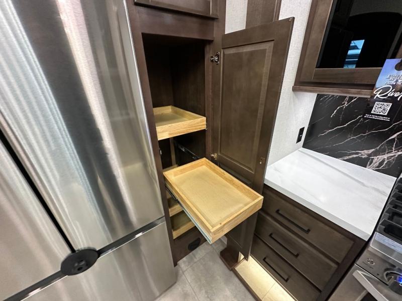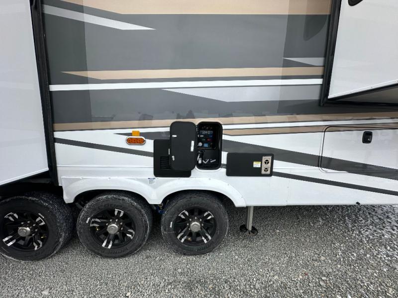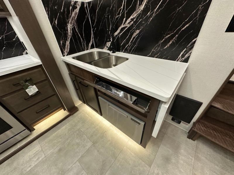 The Forest River RiverStone fifth wheels and toy haulers are luxurious units that have it all! You'll find an automatic six-point hydraulic level-up system to keep your unit in place, and there is preparation for a four-camera observation system. The King Wi-Fi Max router and omni-directional Wi-Fi antenna/extender will help you stay connected to the outside world, and you'll never have to overpack again since the Splendid “Astral” stackable washer and dryer will let you clean the small amount of clothes you've brought with you. Another high luxury is the Fischer Paykal dishwasher which will allow you to spend more time enjoying your camp life and less time cleaning up. Each unit is built with a Trail-Aire Road Armour suspension system, dual-pane frameless windows, a full docking station, a 190W solar panel, and a Firefly integrated touch control system.