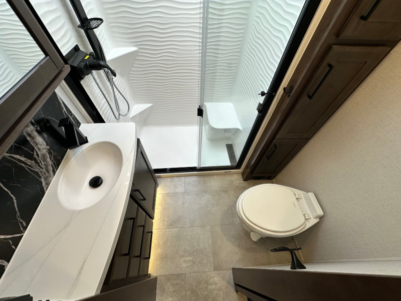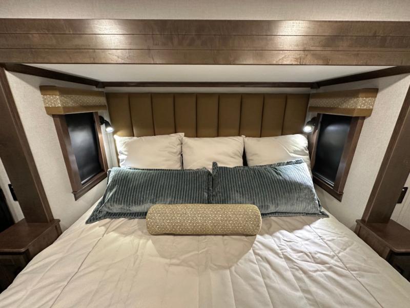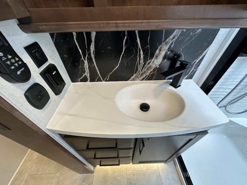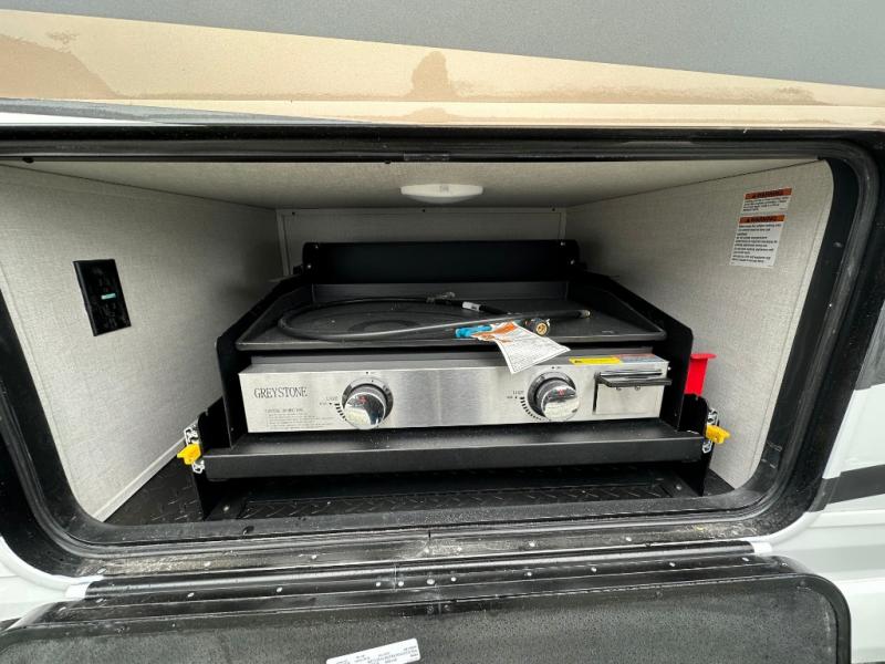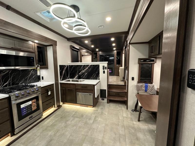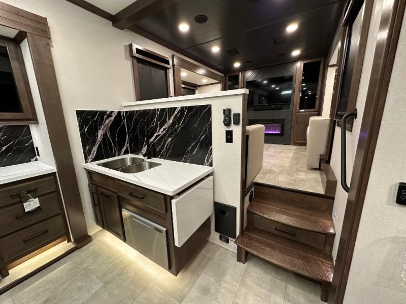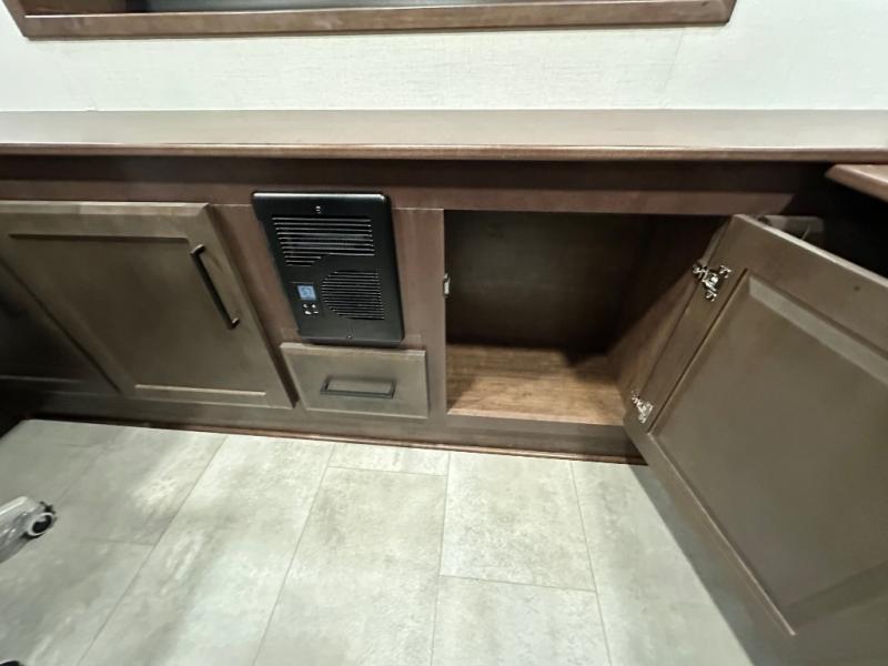 The Forest River RiverStone fifth wheels and toy haulers are luxurious units that have it all! You'll find an automatic six-point hydraulic level-up system to keep your unit in place, and there is preparation for a four-camera observation system. The King Wi-Fi Max router and omni-directional Wi-Fi antenna/extender will help you stay connected to the outside world, and you'll never have to overpack again since the Splendid “Astral” stackable washer and dryer will let you clean the small amount of clothes you've brought with you. Another high luxury is the Fischer Paykal dishwasher which will allow you to spend more time enjoying your camp life and less time cleaning up. Each unit is built with a Trail-Aire Road Armour suspension system, dual-pane frameless windows, a full docking station, a 190W solar panel, and a Firefly integrated touch control system.