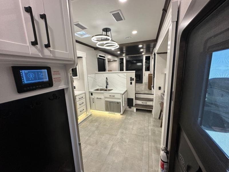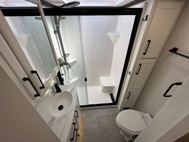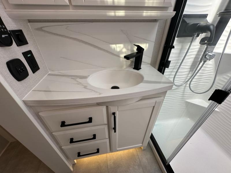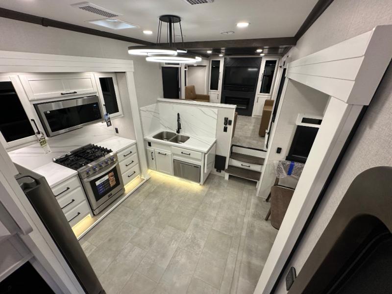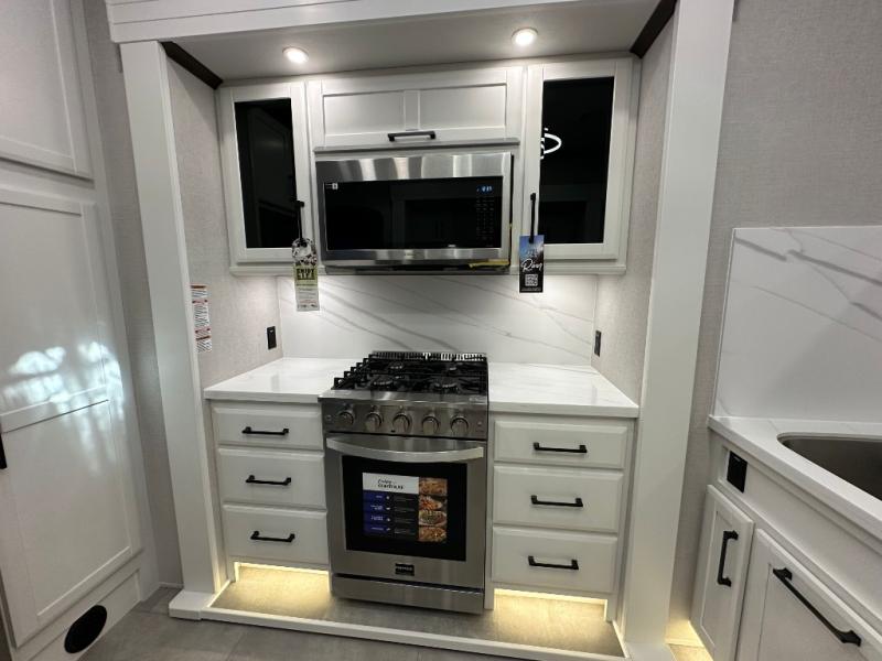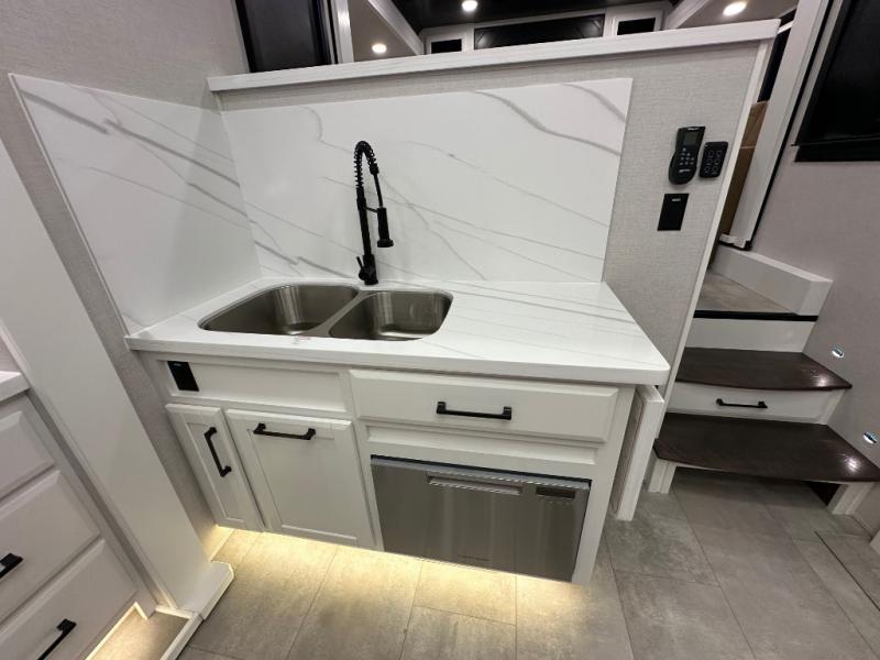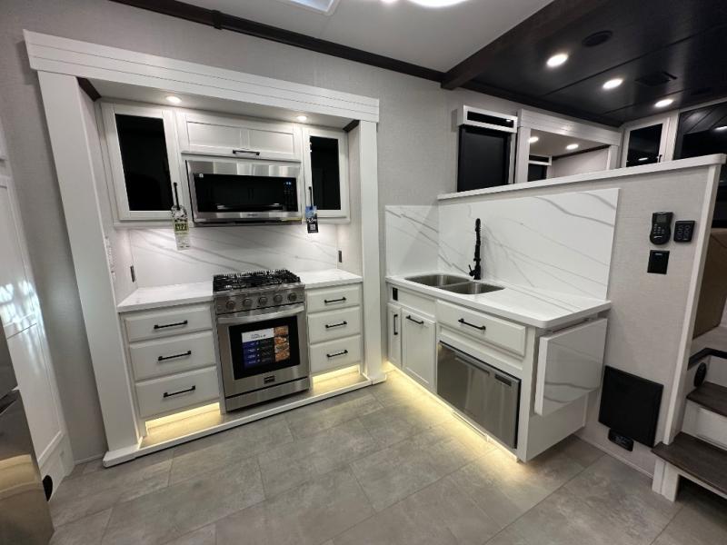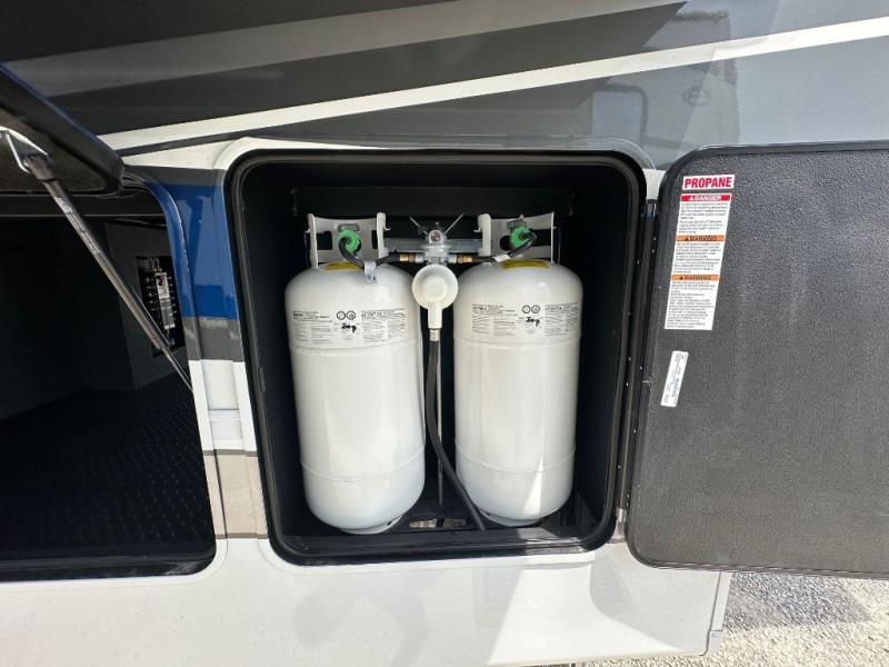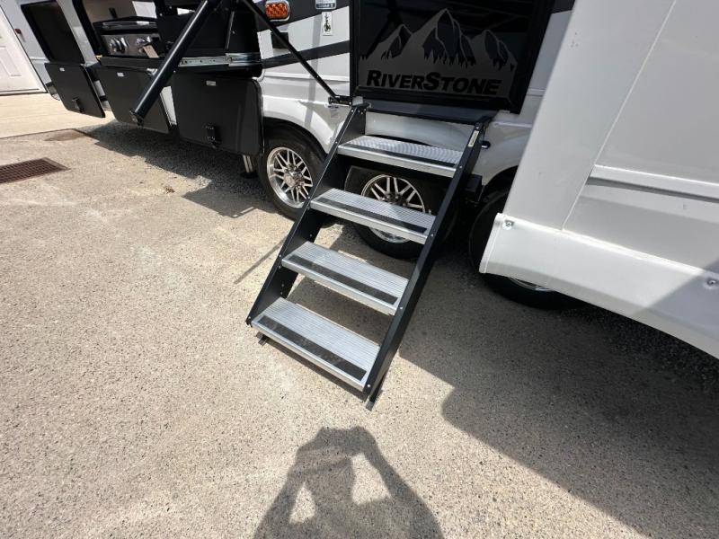 The Forest River RiverStone fifth wheels and toy haulers are luxurious units that have it all! You'll find an automatic six-point hydraulic level-up system to keep your unit in place, and there is preparation for a four-camera observation system. The TravlFi Journey XTR 4G/LTE router and WiFi extender will help you stay connected to the outside world, and you'll never have to overpack again since the Splendid “Astral” stackable washer and dryer will let you clean the small amount of clothes you've brought with you. Another high luxury is the Fischer Paykal dishwasher which will allow you to spend more time enjoying your camp life and less time cleaning up. Each unit is built with a LCI Road Armour suspension system, dual-pane frameless windows, a full docking station, a 200W solar panel, and a BMPro touch control system.