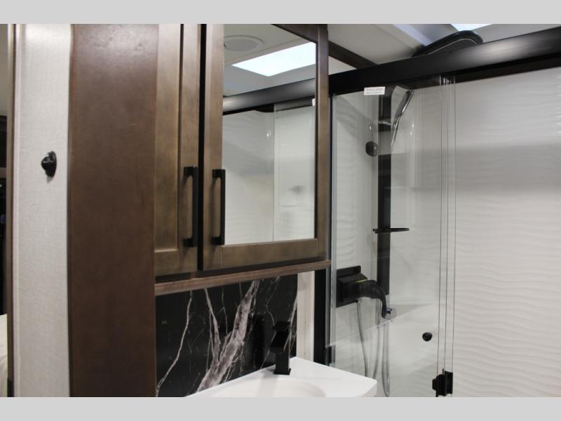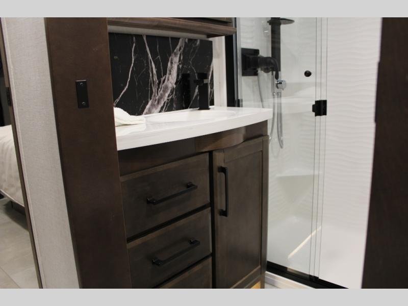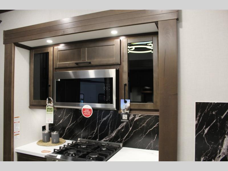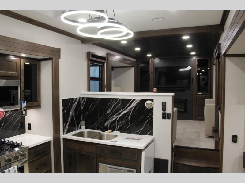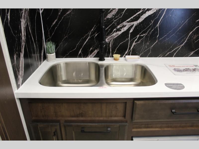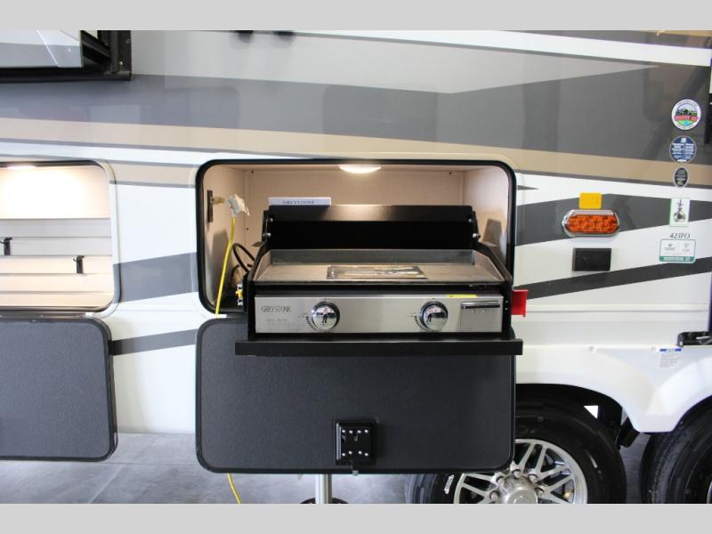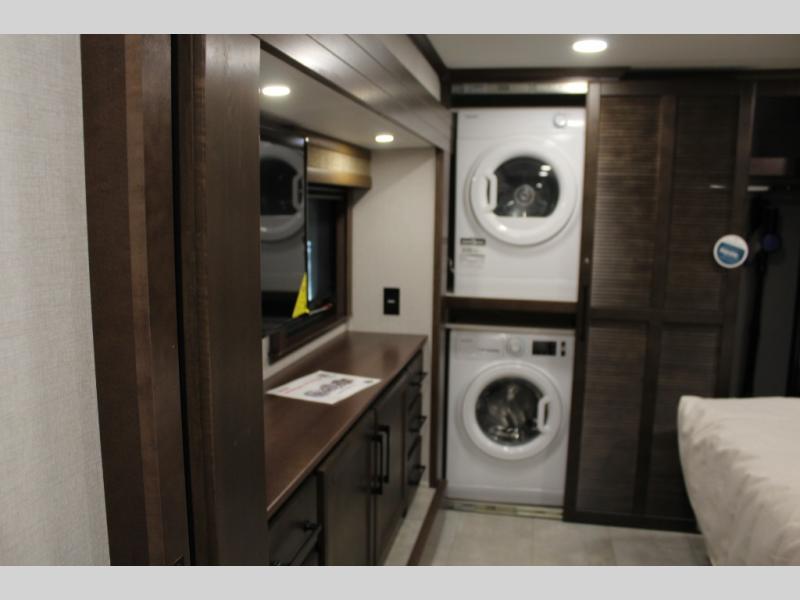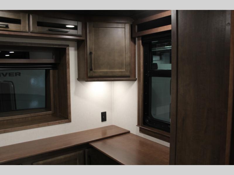The Forest River RiverStone fifth wheels and toy haulers are luxurious units that have it all! You'll find an automatic six-point hydraulic level-up system to keep your unit in place, and there is preparation for a four-camera observation system. The TravlFi Journey XTR 4G/LTE router and WiFi extender will help you stay connected to the outside world, and you'll never have to overpack again since the Splendid “Astral” stackable washer and dryer will let you clean the small amount of clothes you've brought with you. Another high luxury is the Fischer Paykal dishwasher which will allow you to spend more time enjoying your camp life and less time cleaning up. Each unit is built with a LCI Road Armour suspension system, dual-pane frameless windows, a full docking station, a 200W solar panel, and a BMPro touch control system.