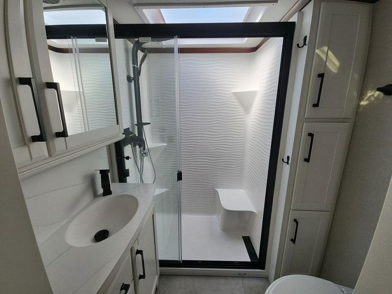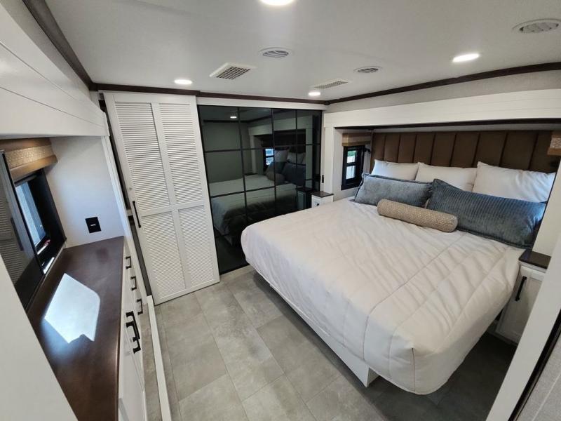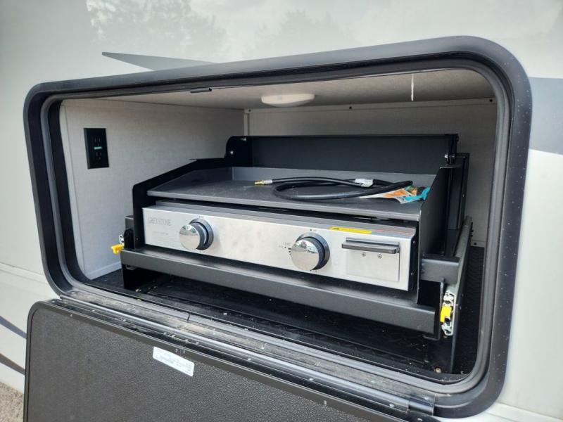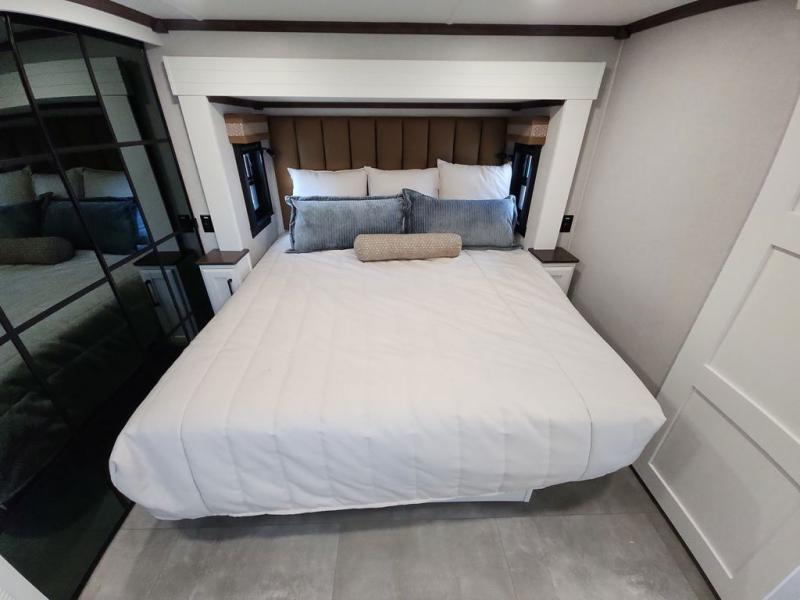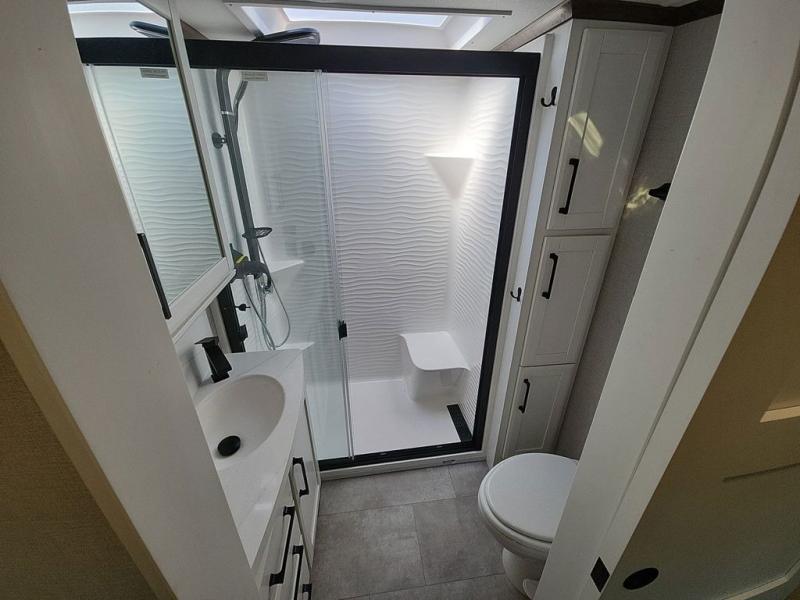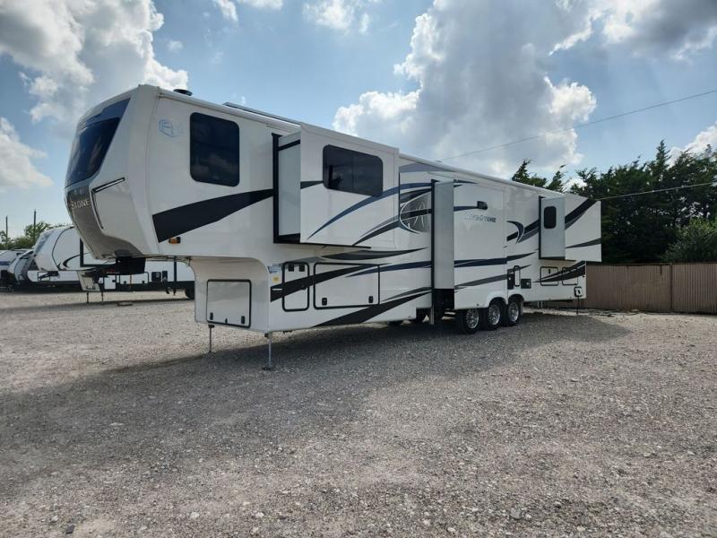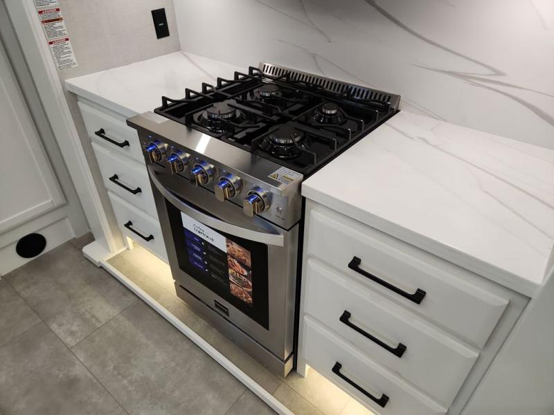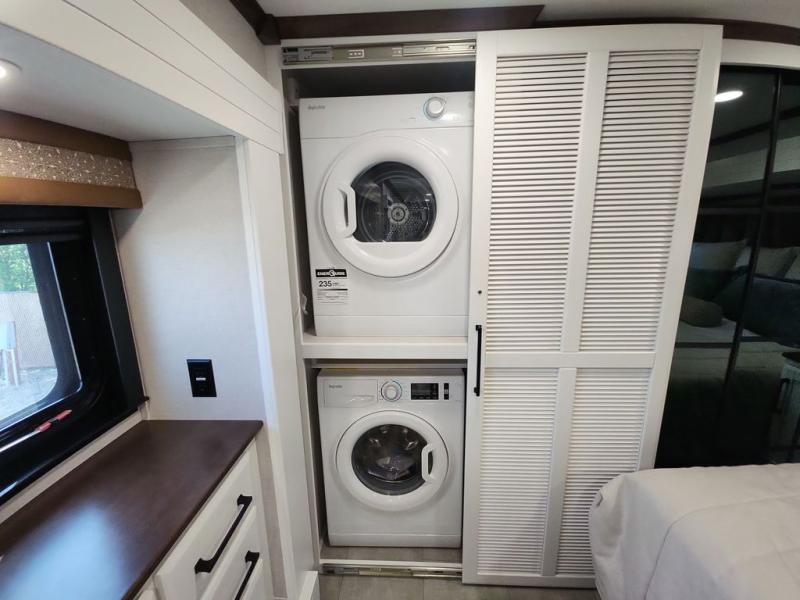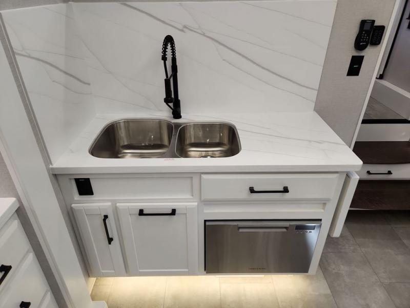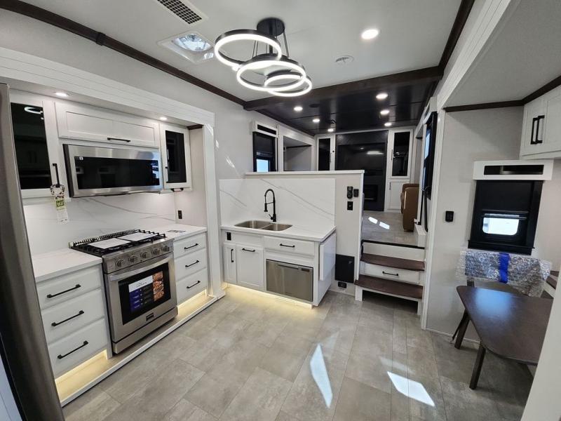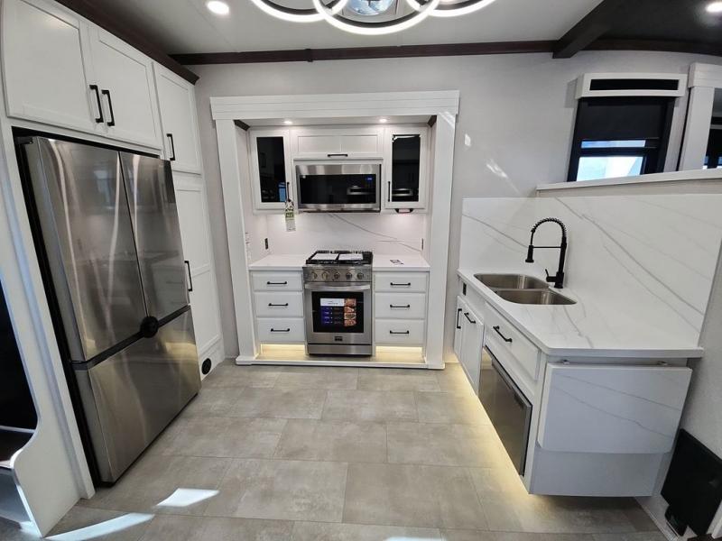 The Forest River RiverStone fifth wheels and toy haulers are luxurious units that have it all! You'll find an automatic six-point hydraulic level-up system to keep your unit in place, and there is preparation for a four-camera observation system. The TravlFi Journey XTR 4G/LTE router and WiFi extender will help you stay connected to the outside world, and you'll never have to overpack again since the Splendid “Astral” stackable washer and dryer will let you clean the small amount of clothes you've brought with you. Another high luxury is the Fischer Paykal dishwasher which will allow you to spend more time enjoying your camp life and less time cleaning up. Each unit is built with a LCI Road Armour suspension system, dual-pane frameless windows, a full docking station, a 200W solar panel, and a BMPro touch control system.