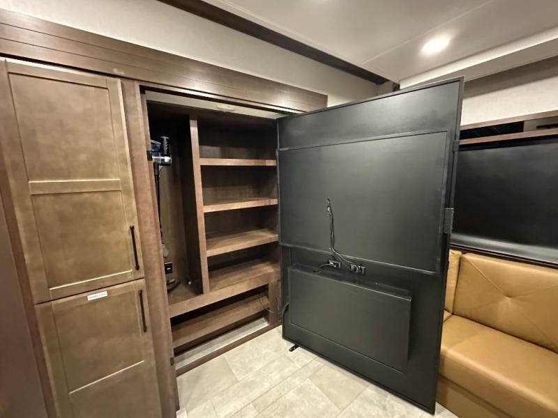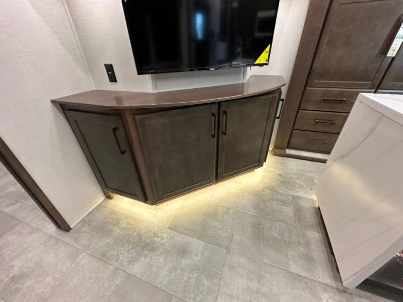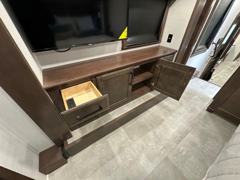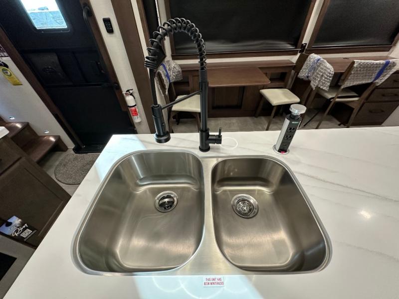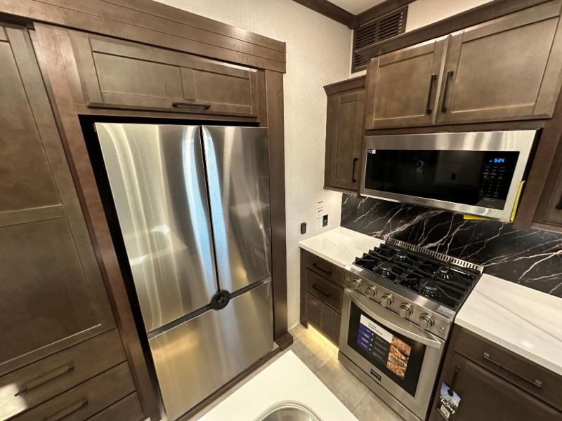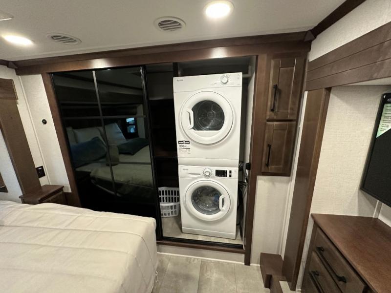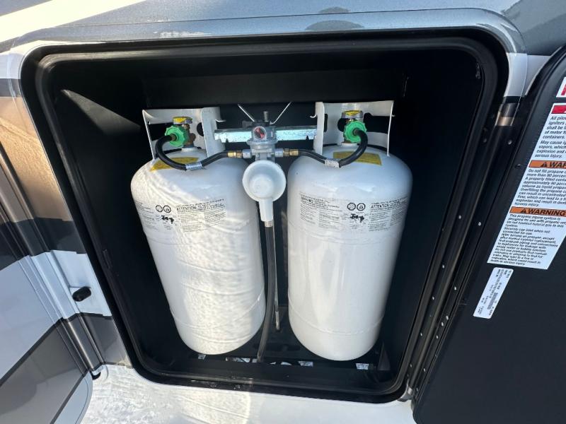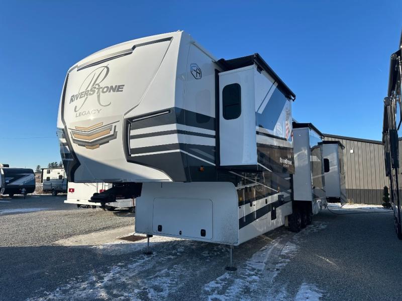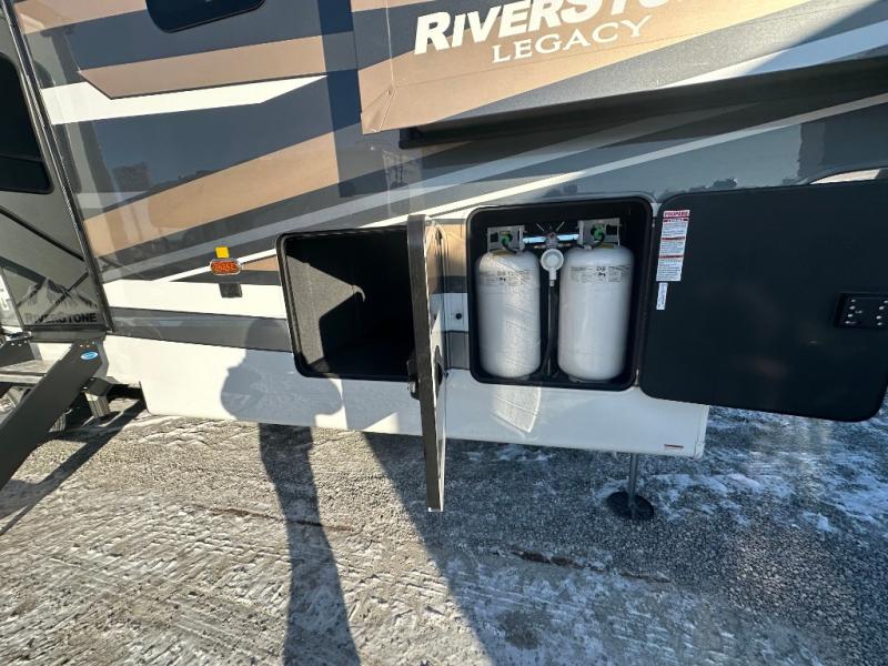 The Forest River RiverStone fifth wheels and toy haulers are luxurious units that have it all! You'll find an automatic six-point hydraulic level-up system to keep your unit in place, and there is preparation for a four-camera observation system. The TravlFi Journey XTR 4G/LTE router and WiFi extender will help you stay connected to the outside world, and you'll never have to overpack again since the Splendid “Astral” stackable washer and dryer will let you clean the small amount of clothes you've brought with you. Another high luxury is the Fischer Paykal dishwasher which will allow you to spend more time enjoying your camp life and less time cleaning up. Each unit is built with a LCI Road Armour suspension system, dual-pane frameless windows, a full docking station, a 200W solar panel, and a BMPro touch control system.