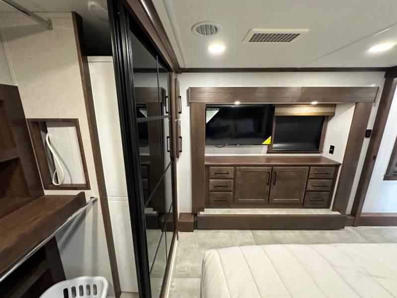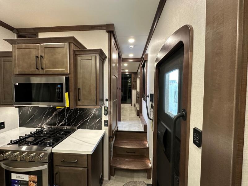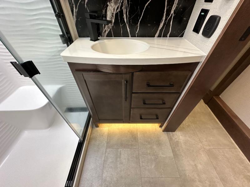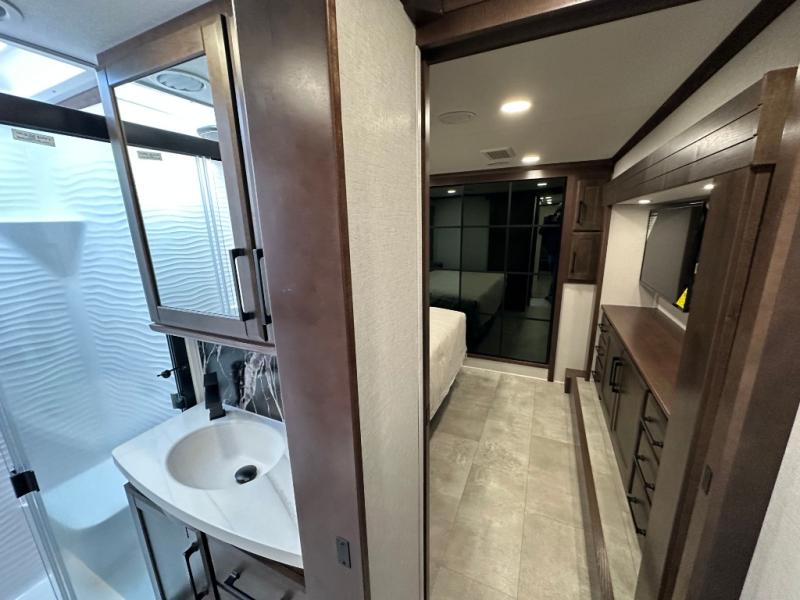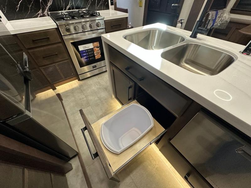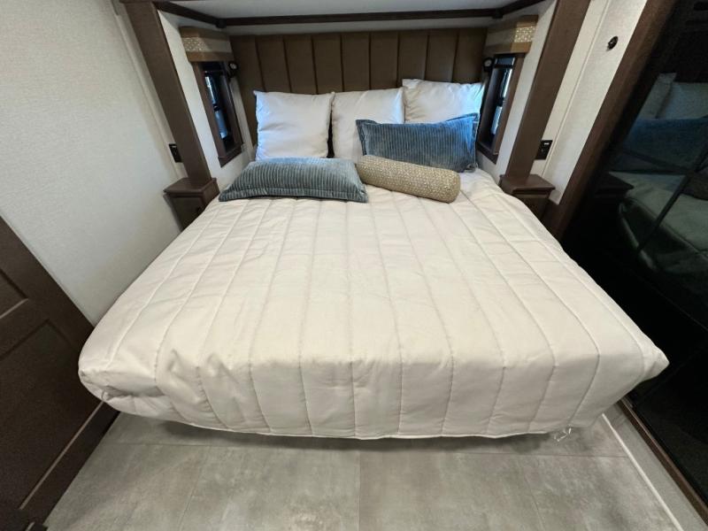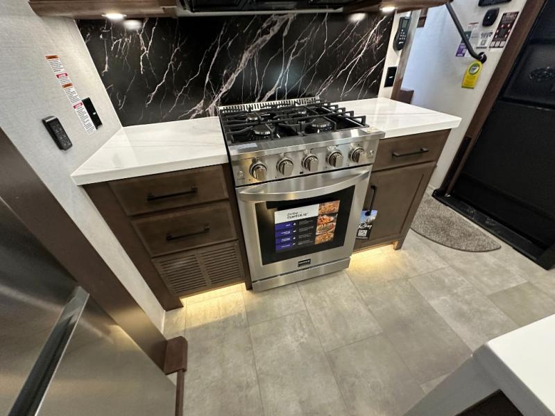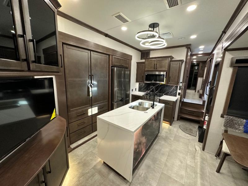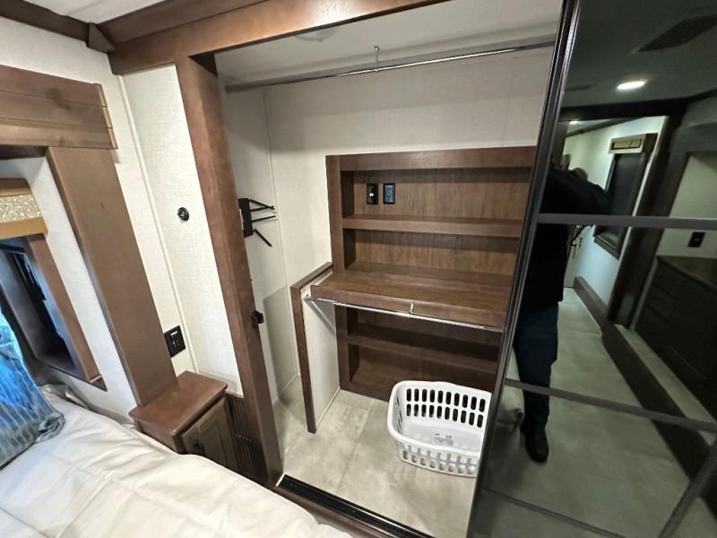 The Forest River RiverStone fifth wheels and toy haulers are luxurious units that have it all! You'll find an automatic six-point hydraulic level-up system to keep your unit in place, and there is preparation for a four-camera observation system. The TravlFi Journey XTR 4G/LTE router and WiFi extender will help you stay connected to the outside world, and you'll never have to overpack again since the Splendid “Astral” stackable washer and dryer will let you clean the small amount of clothes you've brought with you. Another high luxury is the Fischer Paykal dishwasher which will allow you to spend more time enjoying your camp life and less time cleaning up. Each unit is built with a LCI Road Armour suspension system, dual-pane frameless windows, a full docking station, a 200W solar panel, and a BMPro touch control system.