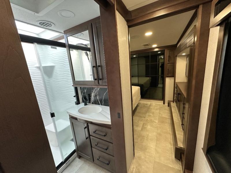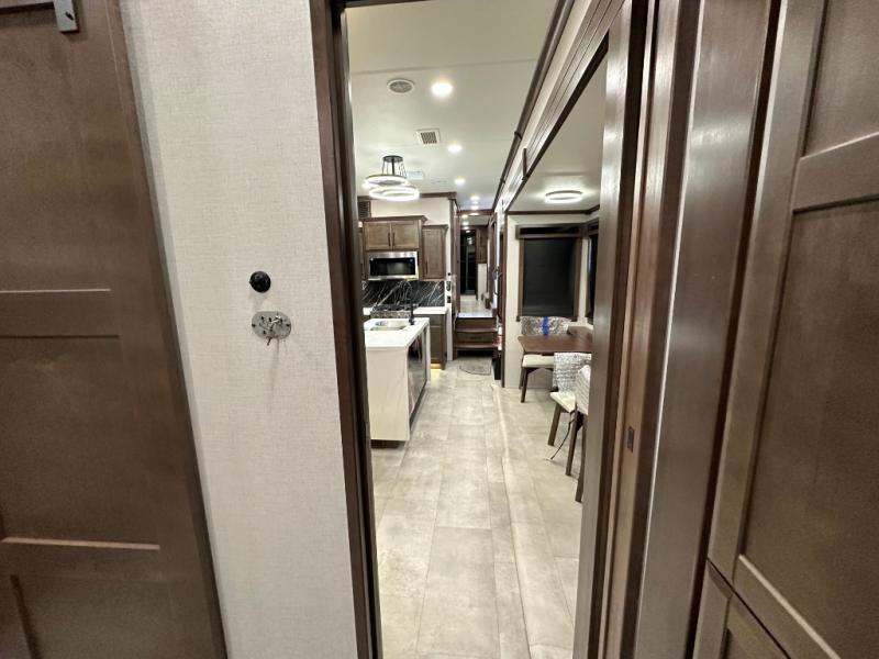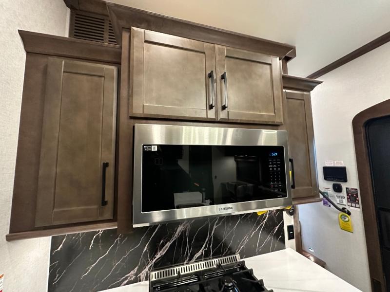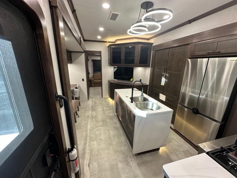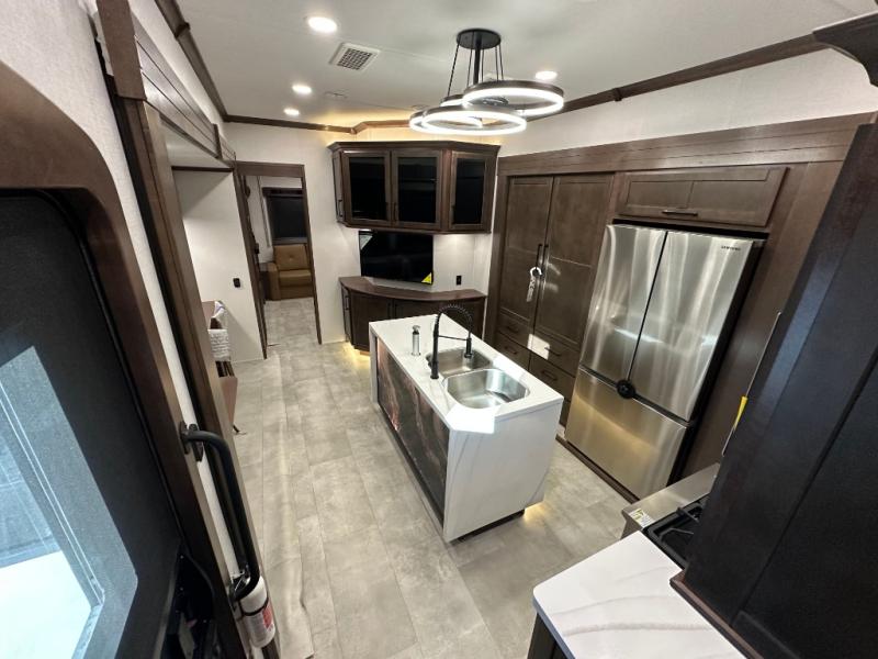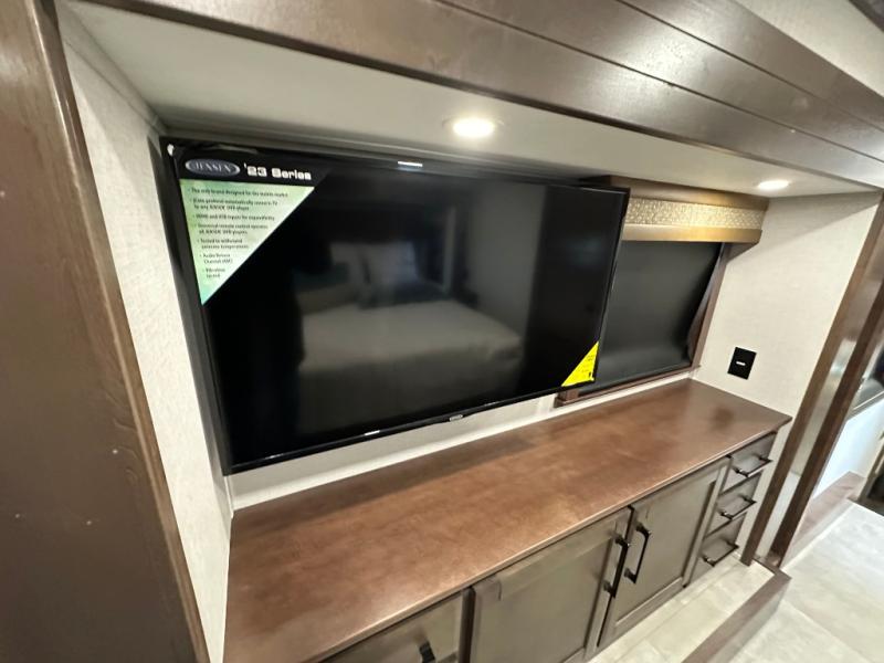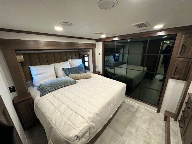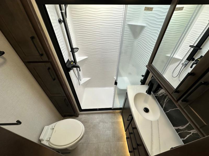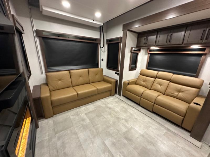 The Forest River RiverStone fifth wheels and toy haulers are luxurious units that have it all! You'll find an automatic six-point hydraulic level-up system to keep your unit in place, and there is preparation for a four-camera observation system. The TravlFi Journey XTR 4G/LTE router and WiFi extender will help you stay connected to the outside world, and you'll never have to overpack again since the Splendid “Astral” stackable washer and dryer will let you clean the small amount of clothes you've brought with you. Another high luxury is the Fischer Paykal dishwasher which will allow you to spend more time enjoying your camp life and less time cleaning up. Each unit is built with a LCI Road Armour suspension system, dual-pane frameless windows, a full docking station, a 200W solar panel, and a BMPro touch control system.