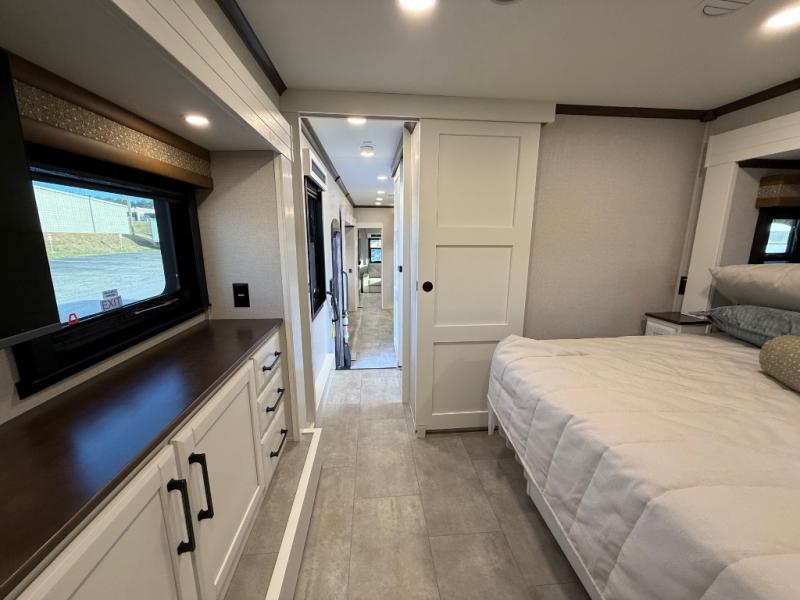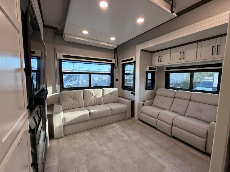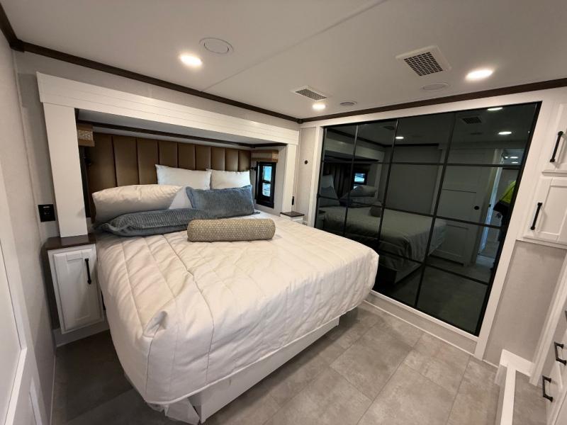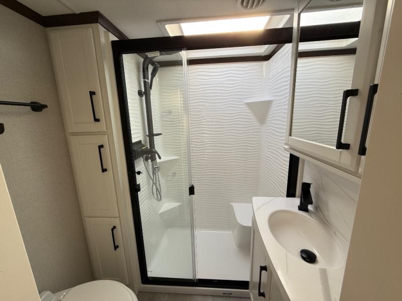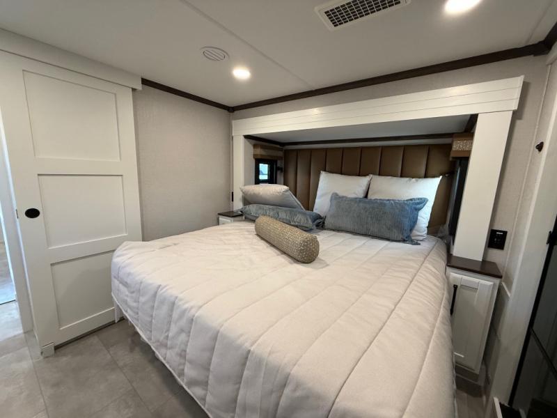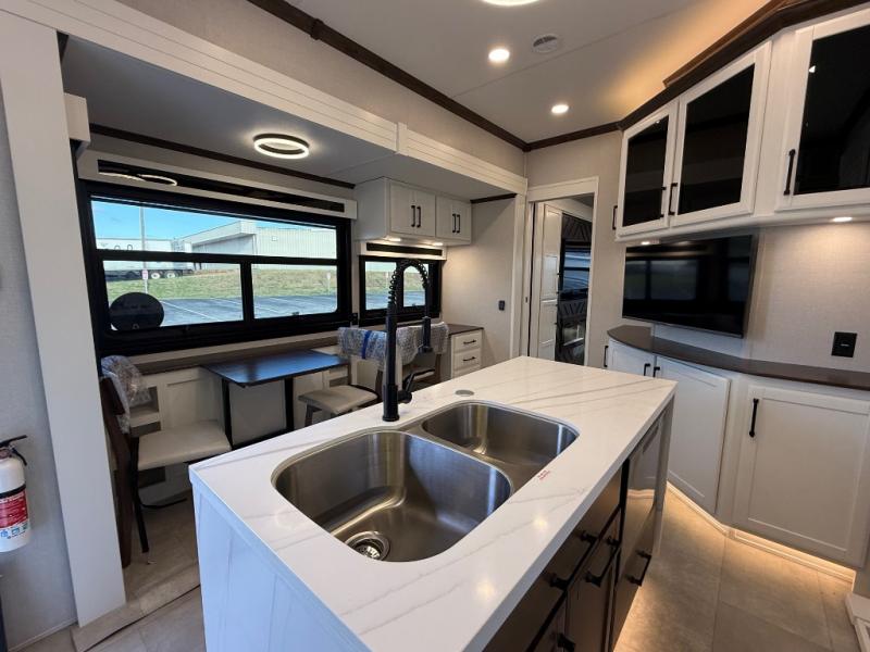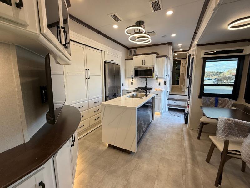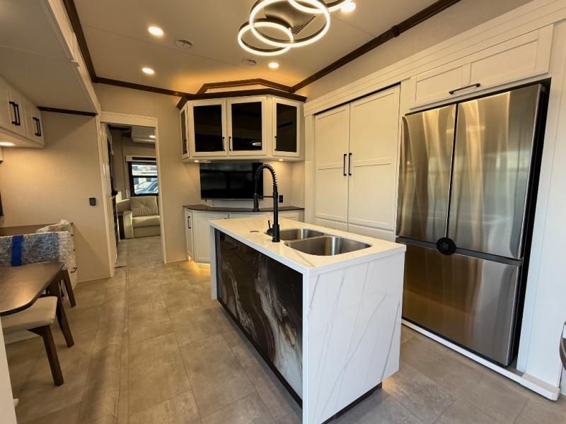 The Forest River RiverStone fifth wheels and toy haulers are luxurious units that have it all! You'll find an automatic six-point hydraulic level-up system to keep your unit in place, and there is preparation for a four-camera observation system. The TravlFi Journey XTR 4G/LTE router and WiFi extender will help you stay connected to the outside world, and you'll never have to overpack again since the Splendid “Astral” stackable washer and dryer will let you clean the small amount of clothes you've brought with you. Another high luxury is the Fischer Paykal dishwasher which will allow you to spend more time enjoying your camp life and less time cleaning up. Each unit is built with a LCI Road Armour suspension system, dual-pane frameless windows, a full docking station, a 200W solar panel, and a BMPro touch control system.