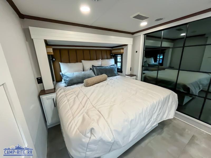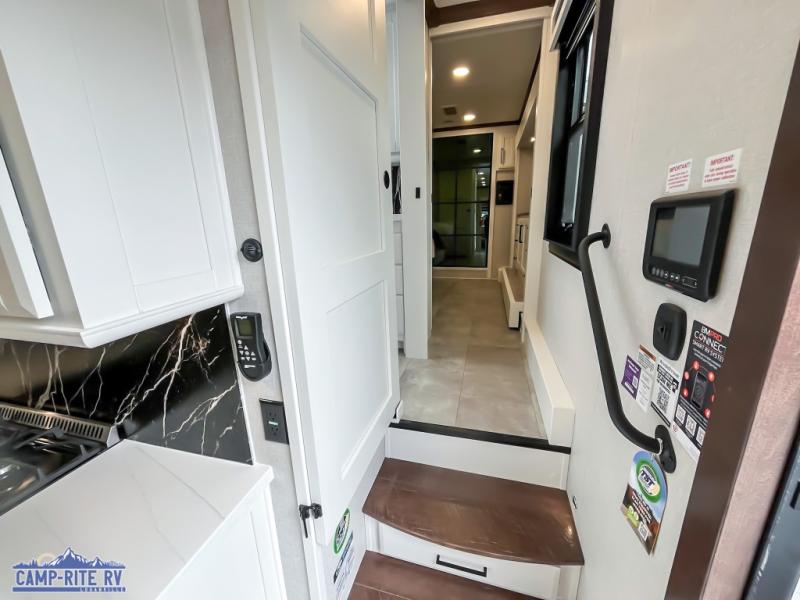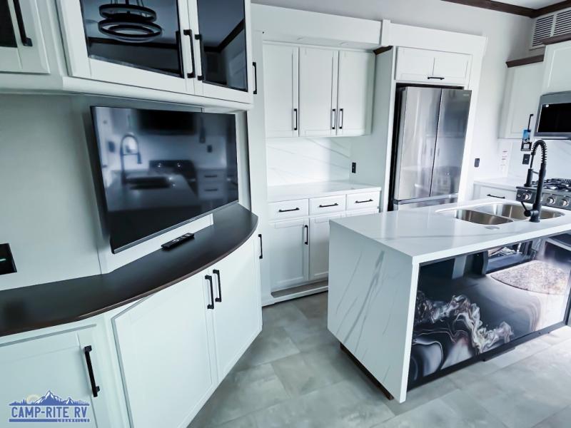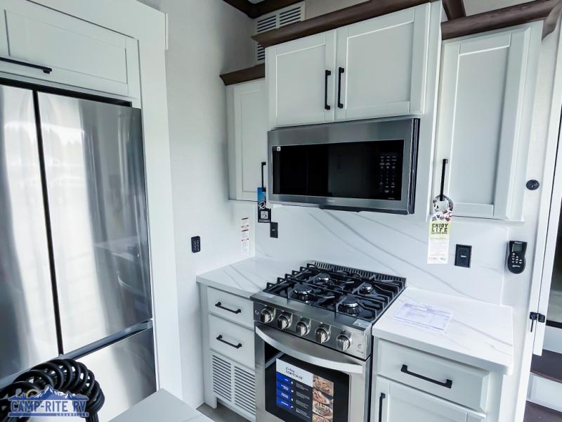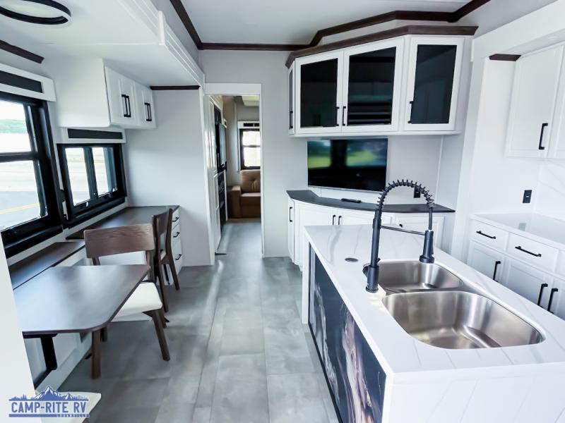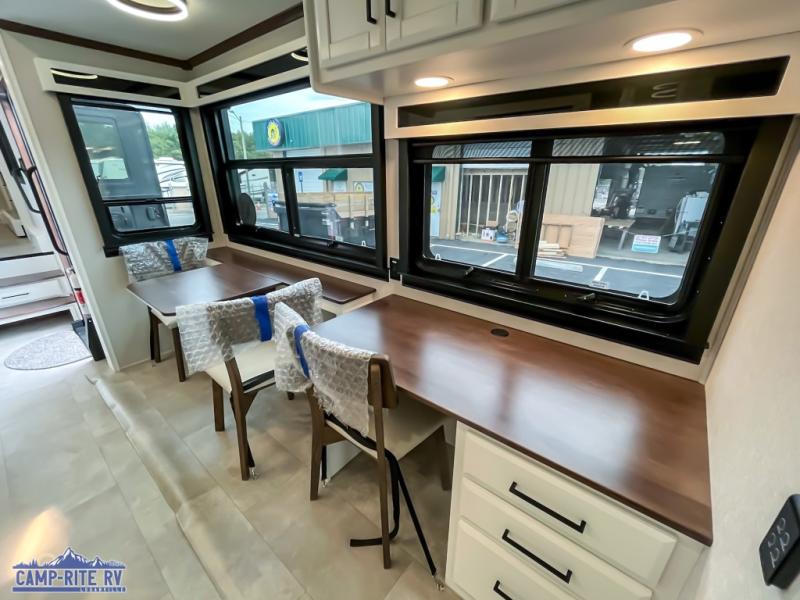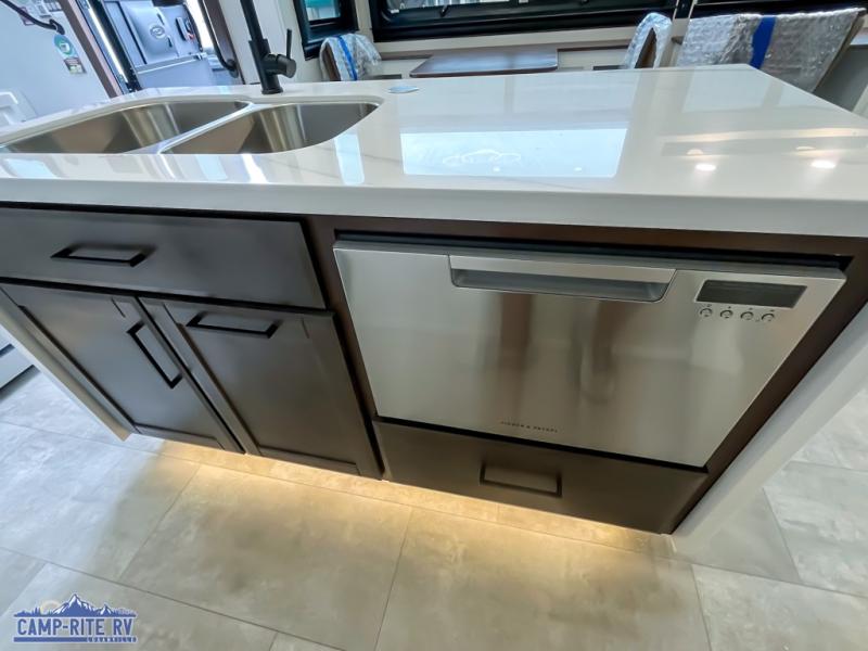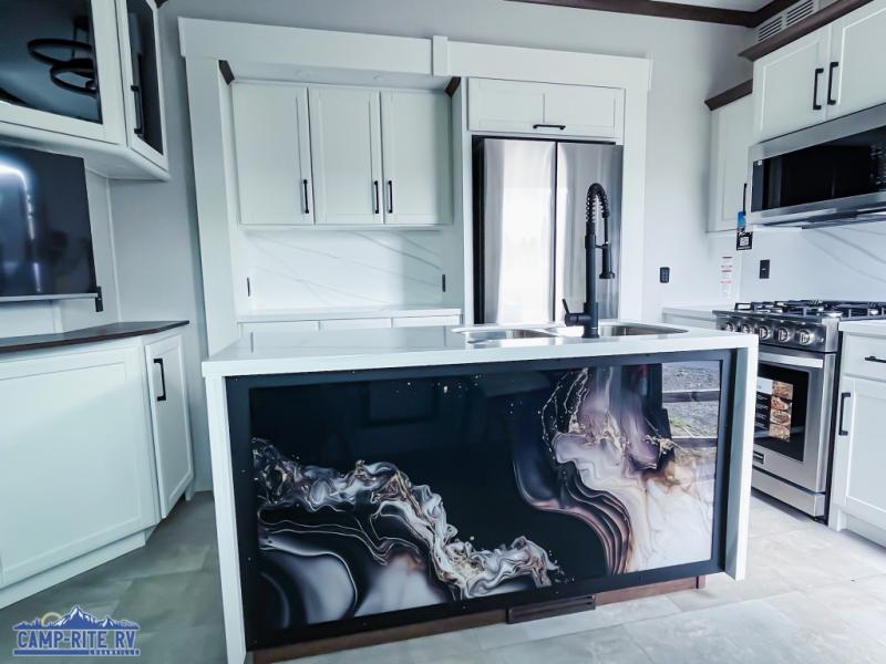 The Forest River RiverStone fifth wheels and toy haulers are luxurious units that have it all! You'll find an automatic six-point hydraulic level-up system to keep your unit in place, and there is preparation for a four-camera observation system. The TravlFi Journey XTR 4G/LTE router and WiFi extender will help you stay connected to the outside world, and you'll never have to overpack again since the Splendid “Astral” stackable washer and dryer will let you clean the small amount of clothes you've brought with you. Another high luxury is the Fischer Paykal dishwasher which will allow you to spend more time enjoying your camp life and less time cleaning up. Each unit is built with a LCI Road Armour suspension system, dual-pane frameless windows, a full docking station, a 200W solar panel, and a BMPro touch control system.
