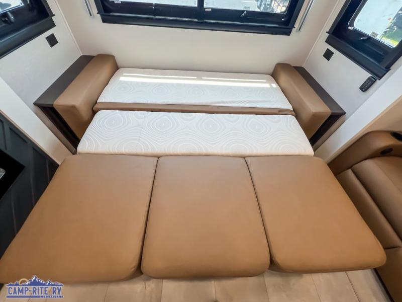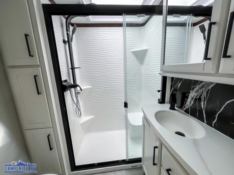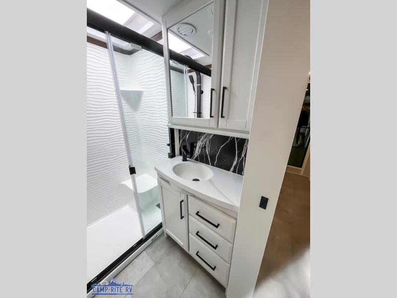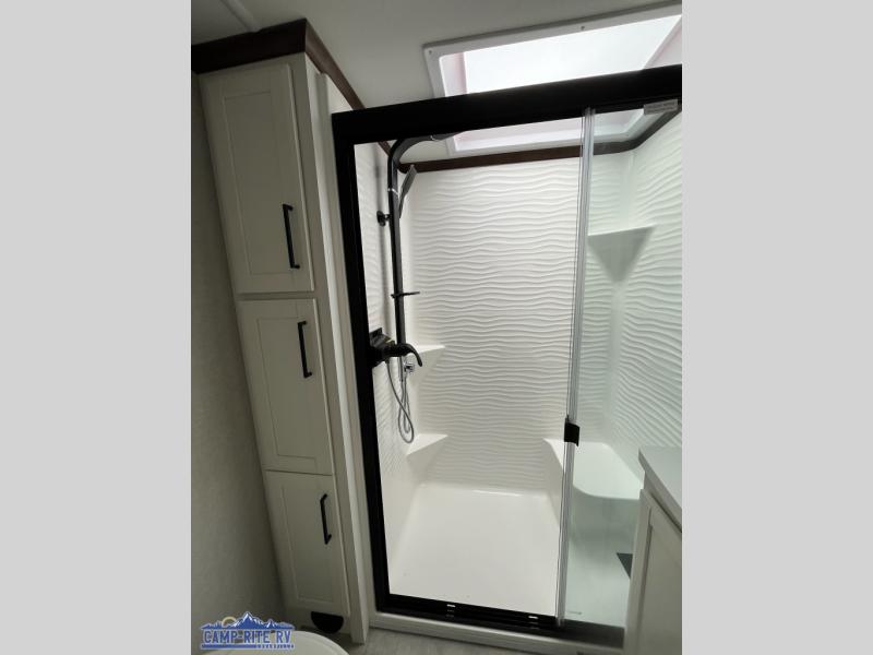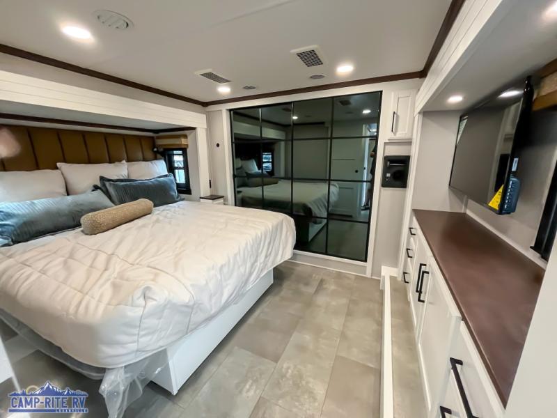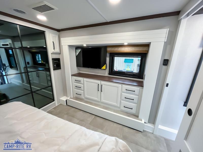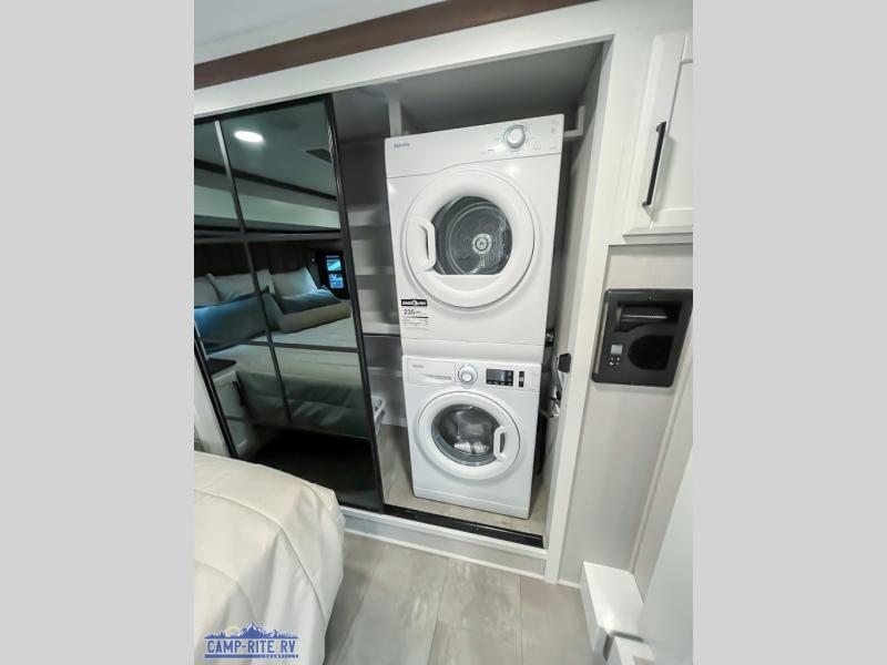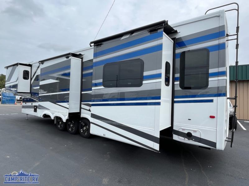 The Forest River RiverStone fifth wheels and toy haulers are luxurious units that have it all! You'll find an automatic six-point hydraulic level-up system to keep your unit in place, and there is preparation for a four-camera observation system. The TravlFi Journey XTR 4G/LTE router and WiFi extender will help you stay connected to the outside world, and you'll never have to overpack again since the Splendid “Astral” stackable washer and dryer will let you clean the small amount of clothes you've brought with you. Another high luxury is the Fischer Paykal dishwasher which will allow you to spend more time enjoying your camp life and less time cleaning up. Each unit is built with a LCI Road Armour suspension system, dual-pane frameless windows, a full docking station, a 200W solar panel, and a BMPro touch control system.