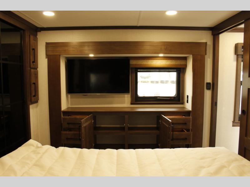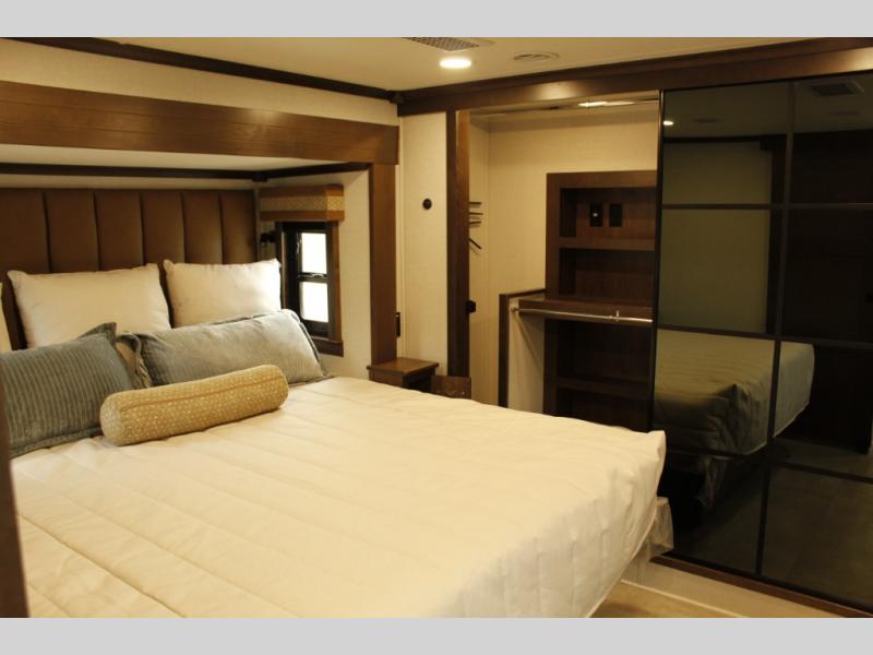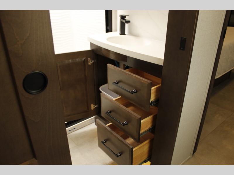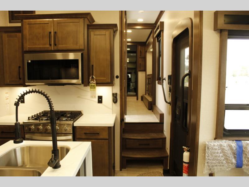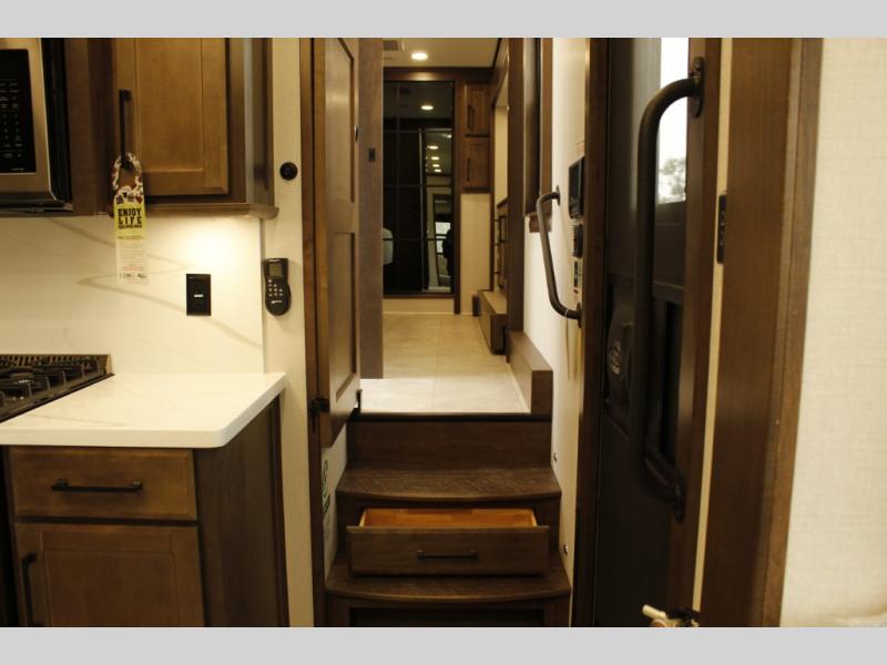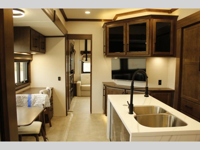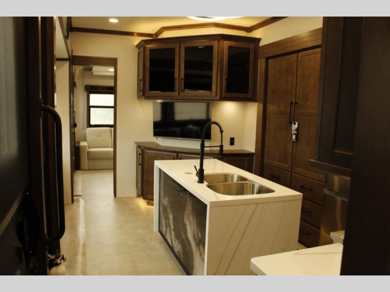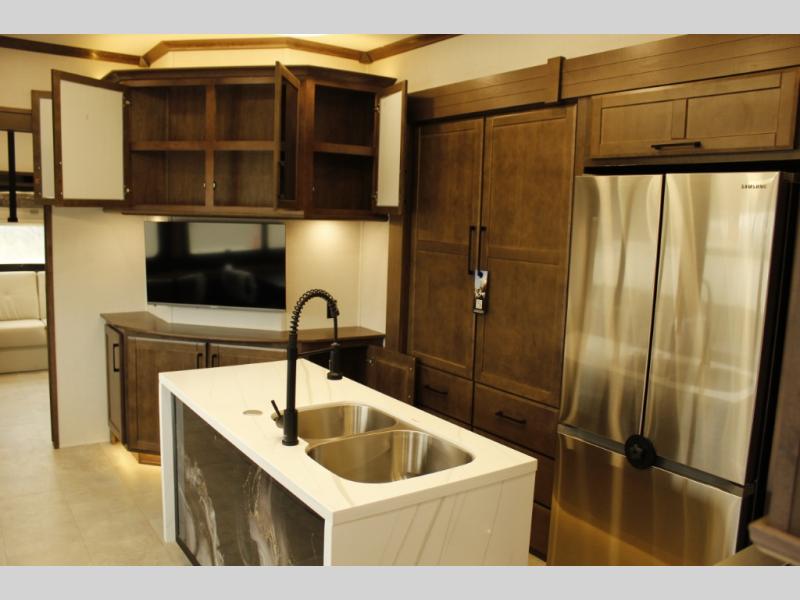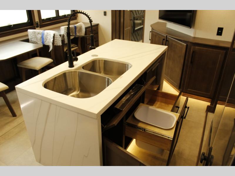 The Forest River RiverStone fifth wheels and toy haulers are luxurious units that have it all! You'll find an automatic six-point hydraulic level-up system to keep your unit in place, and there is preparation for a four-camera observation system. The TravlFi Journey XTR 4G/LTE router and WiFi extender will help you stay connected to the outside world, and you'll never have to overpack again since the Splendid “Astral” stackable washer and dryer will let you clean the small amount of clothes you've brought with you. Another high luxury is the Fischer Paykal dishwasher which will allow you to spend more time enjoying your camp life and less time cleaning up. Each unit is built with a LCI Road Armour suspension system, dual-pane frameless windows, a full docking station, a 200W solar panel, and a BMPro touch control system.