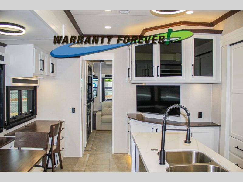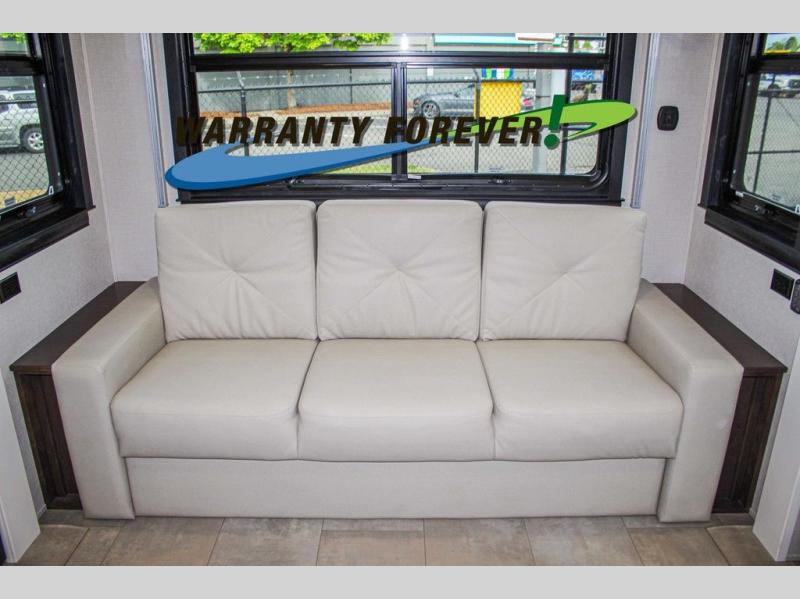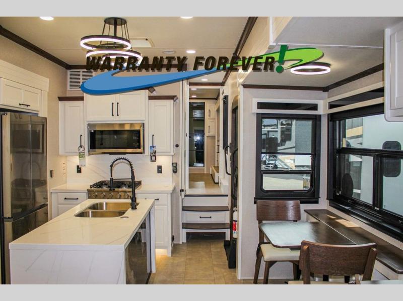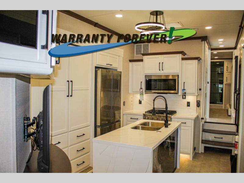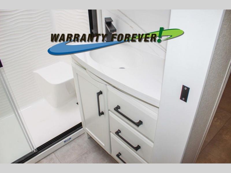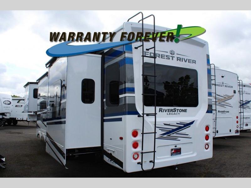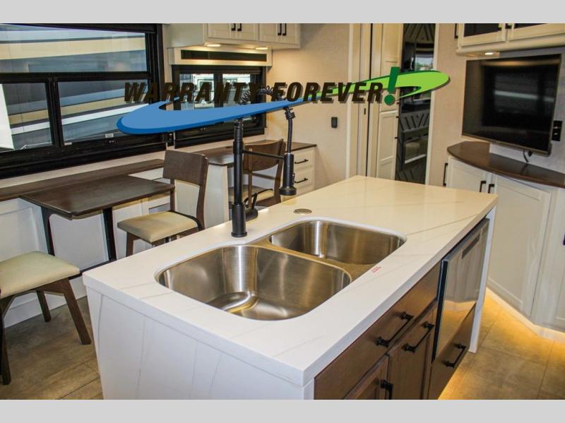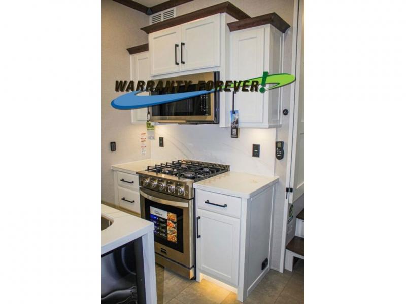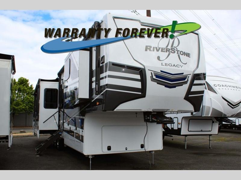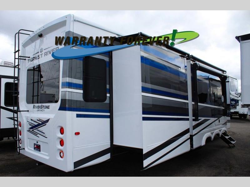 The Forest River RiverStone fifth wheels and toy haulers are luxurious units that have it all! You'll find an automatic six-point hydraulic level-up system to keep your unit in place, and there is preparation for a four-camera observation system. The TravlFi Journey XTR 4G/LTE router and WiFi extender will help you stay connected to the outside world, and you'll never have to overpack again since the Splendid “Astral” stackable washer and dryer will let you clean the small amount of clothes you've brought with you. Another high luxury is the Fischer Paykal dishwasher which will allow you to spend more time enjoying your camp life and less time cleaning up. Each unit is built with a LCI Road Armour suspension system, dual-pane frameless windows, a full docking station, a 200W solar panel, and a BMPro touch control system.