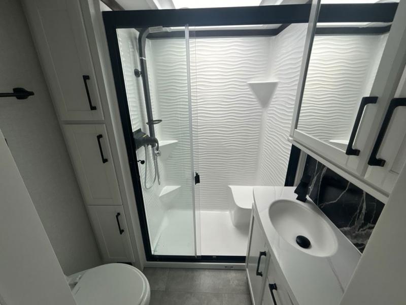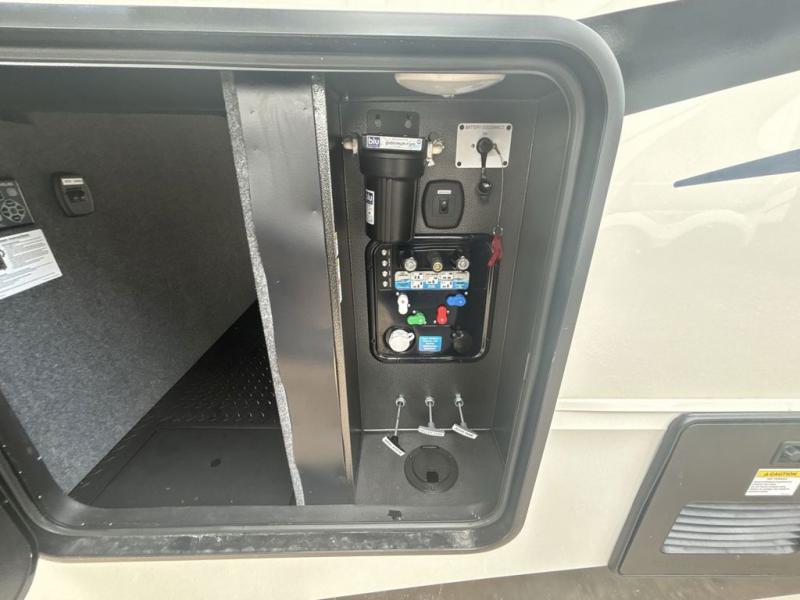 The Forest River RiverStone fifth wheels and toy haulers are luxurious units that have it all! You'll find an automatic six-point hydraulic level-up system to keep your unit in place, and there is preparation for a four-camera observation system. The TravlFi Journey XTR 4G/LTE router and WiFi extender will help you stay connected to the outside world, and you'll never have to overpack again since the Splendid “Astral” stackable washer and dryer will let you clean the small amount of clothes you've brought with you. Another high luxury is the Fischer Paykal dishwasher which will allow you to spend more time enjoying your camp life and less time cleaning up. Each unit is built with an LCI Road Armour suspension system, dual-pane frameless windows, a full docking station, a 200W solar panel, and a BMPro touch control system.