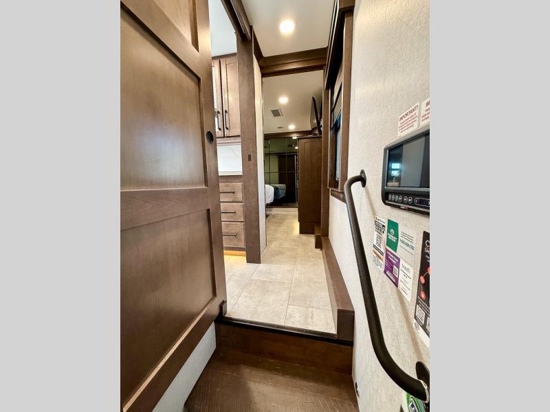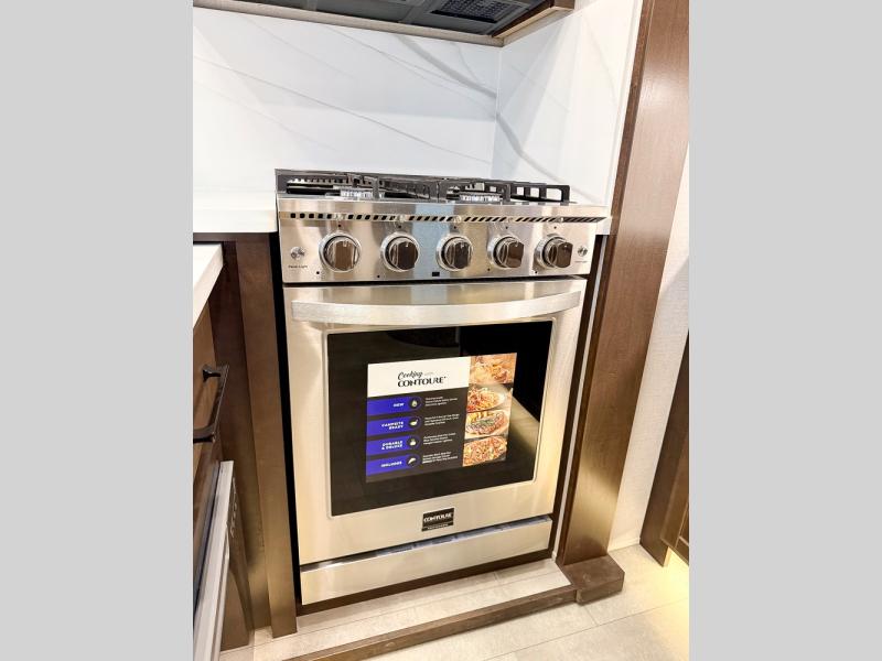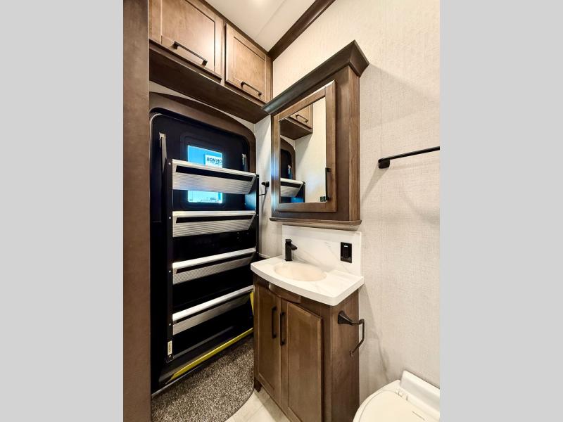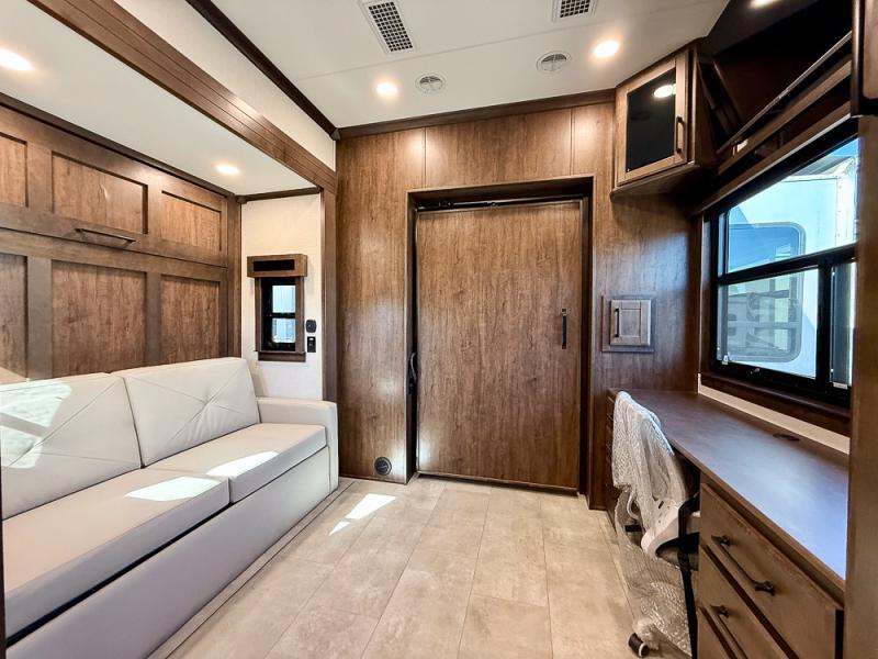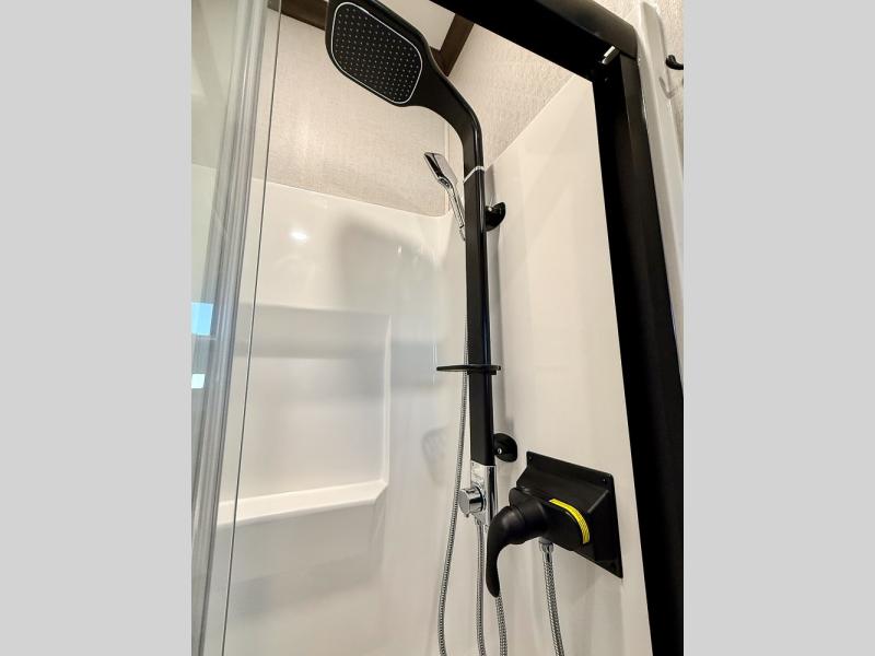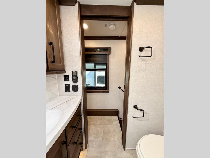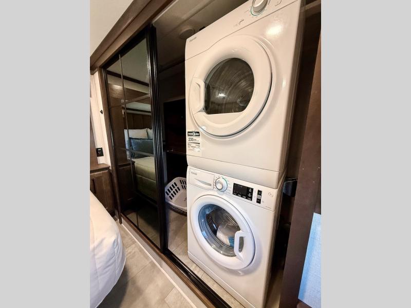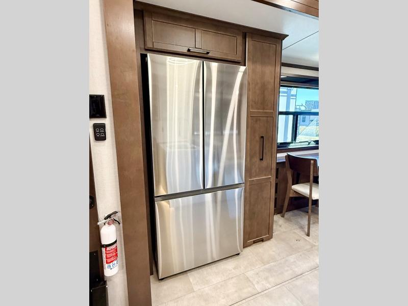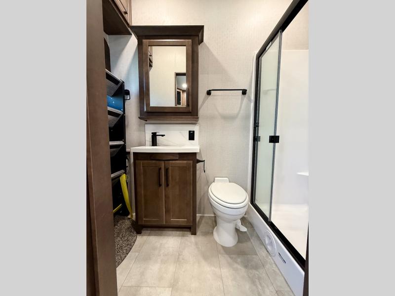 The Forest River RiverStone fifth wheels and toy haulers are luxurious units that have it all! You'll find an automatic six-point hydraulic level-up system to keep your unit in place, and there is preparation for a four-camera observation system. The TravlFi Journey XTR 4G/LTE router and WiFi extender will help you stay connected to the outside world, and you'll never have to overpack again since the Splendid “Astral” stackable washer and dryer will let you clean the small amount of clothes you've brought with you. Another high luxury is the Fischer Paykal dishwasher which will allow you to spend more time enjoying your camp life and less time cleaning up. Each unit is built with an LCI Road Armour suspension system, dual-pane frameless windows, a full docking station, a 200W solar panel, and a BMPro touch control system.