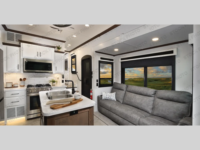 The Forest River RiverStone fifth wheels and toy haulers are luxurious units that have it all! You'll find an automatic six-point hydraulic level-up system to keep your unit in place, and there is preparation for a four-camera observation system. The King Wi-Fi Max router and omni-directional Wi-Fi antenna/extender will help you stay connected to the outside world, and you'll never have to overpack again since the Splendid “Astral” stackable washer and dryer will let you clean the small amount of clothes you've brought with you. Another high luxury is the Fischer Paykal dishwasher which will allow you to spend more time enjoying your camp life and less time cleaning up. Each unit is built with a Trail-Aire Road Armour suspension system, dual-pane frameless windows, a full docking station, a 190W solar panel, and a Firefly integrated touch control system.