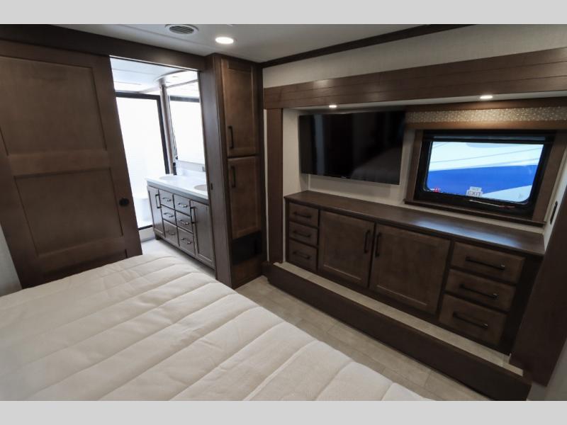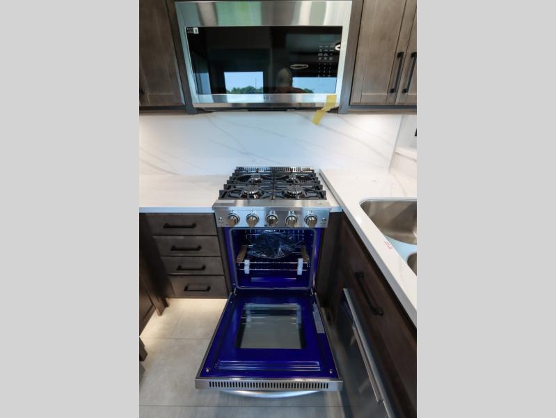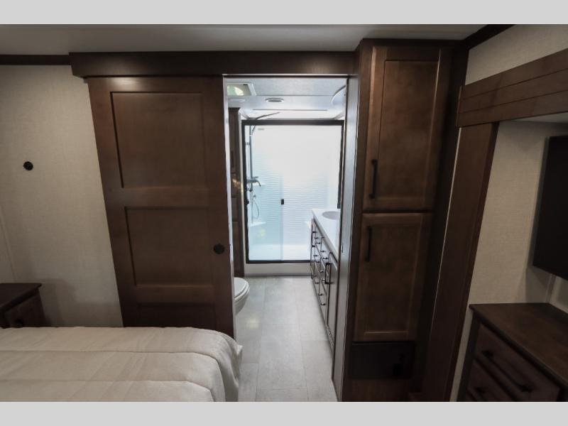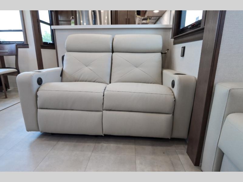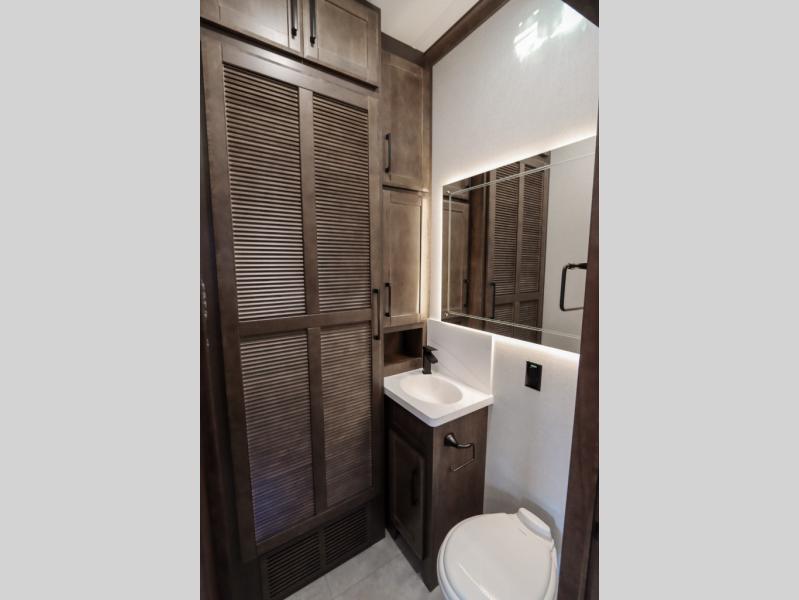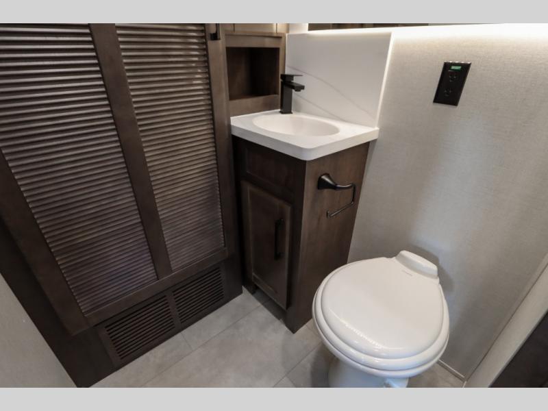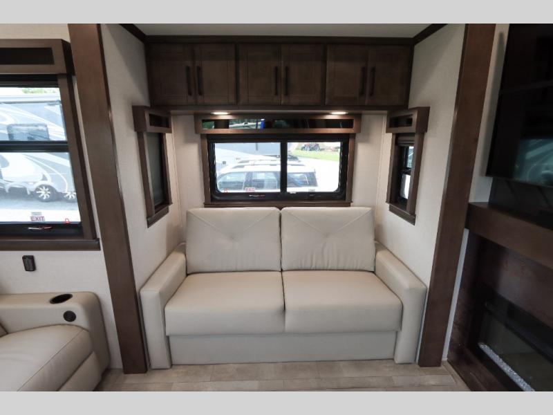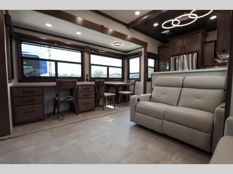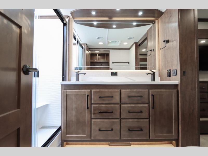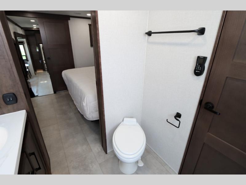 The Forest River RiverStone fifth wheels and toy haulers are luxurious units that have it all! You'll find an automatic six-point hydraulic level-up system to keep your unit in place, and there is preparation for a four-camera observation system. The TravlFi Journey XTR 4G/LTE router and WiFi extender will help you stay connected to the outside world, and you'll never have to overpack again since the Splendid “Astral” stackable washer and dryer will let you clean the small amount of clothes you've brought with you. Another high luxury is the Fischer Paykal dishwasher which will allow you to spend more time enjoying your camp life and less time cleaning up. Each unit is built with an LCI Road Armour suspension system, dual-pane frameless windows, a full docking station, a 200W solar panel, and a BMPro touch control system.