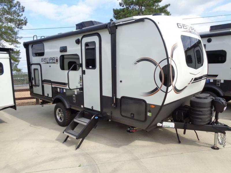 With any Rockwood GEO Pro travel trailer by Forest River you will enjoy easy towing, durable construction, and off-road capabilities with larger 15" tires and a lift kit! Each model is constructed with complete composite wall construction for added strength and durability, and the torsion axle, Rubber-Ryde suspension will make towing easier than ever. Inside, you'll find sleek roller shades for added privacy, a 12V refrigerator and a microwave, plus a 20,000 BTU furnace to keep you warm during the colder camping months.