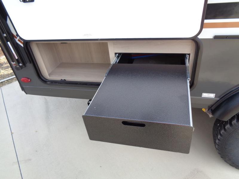 With any Rockwood GEO Pro travel trailer by Forest River you will enjoy easy towing, durable construction, and off-road capabilities with larger 15" tires and a lift kit! Each model is constructed with complete composite wall construction for added strength and durability, and the torsion axle, Rubber-Ryde suspension will make towing easier than ever. Inside, you'll find sleek roller shades for added privacy, a 12V refrigerator and a microwave, plus a 20,000 BTU furnace to keep you warm during the colder camping months.