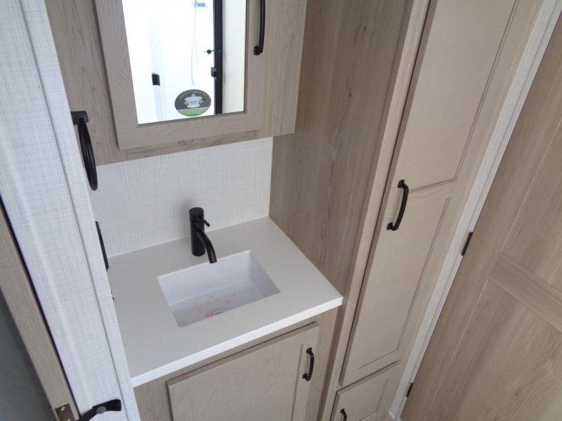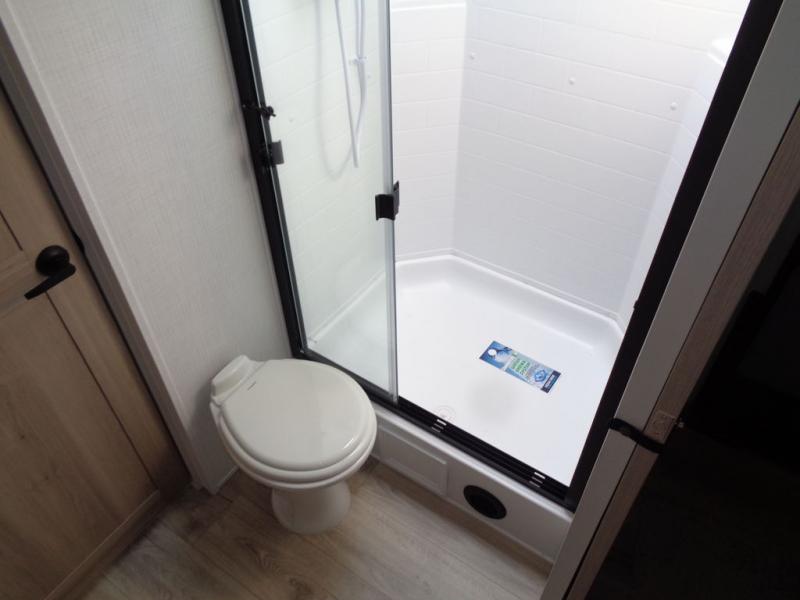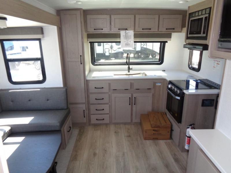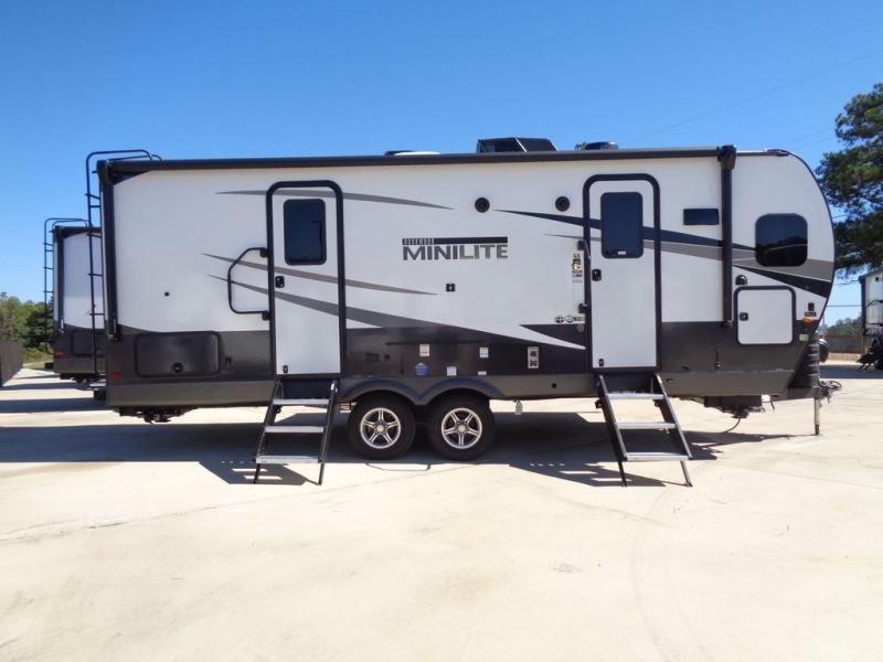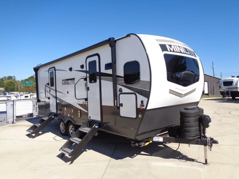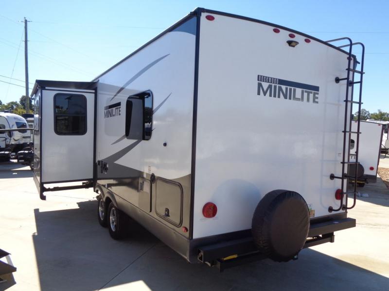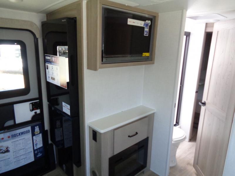 Each Rockwood Mini Lite travel trailer by Forest River is constructed with a fully laminated one-piece walkable roof, sleek frameless windows, and a six-sided full aluminum frame for strength and durability. The 12V thermostatically controlled heated tanks, plus radiant foil in the underbelly and slide out floors will allow you to camp well into the colder months, and the 200W roof solar panel will be perfect for a little off-gridding. Each model includes solid surface kitchen countertops, solid wood cabinet doors, night roller shades, plus many more interior features. Having an AIR 360+ omnidirectional antenna with WiFi prep on board gives you the option to get some work done if it's needed, and the power tongue jack provides hassle-free set up, so you can enjoy more time relaxing!