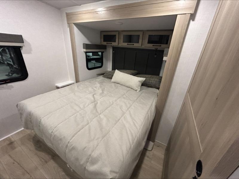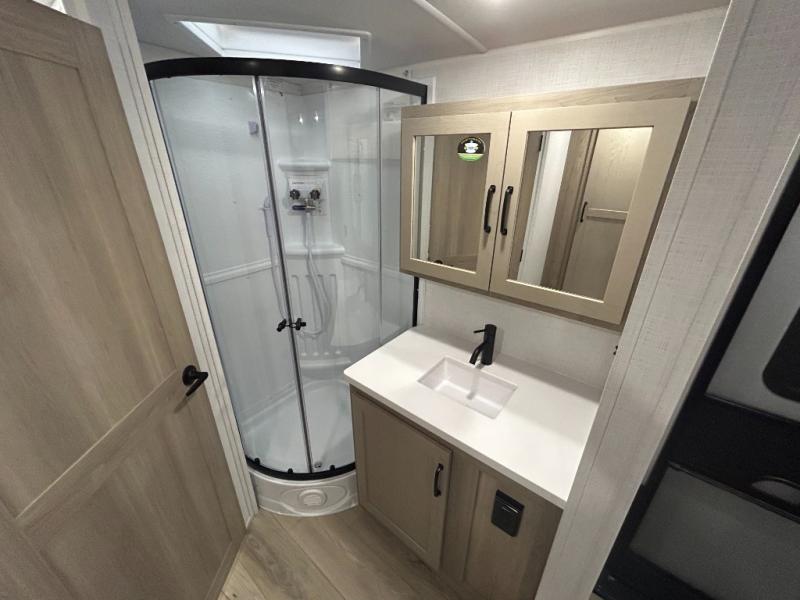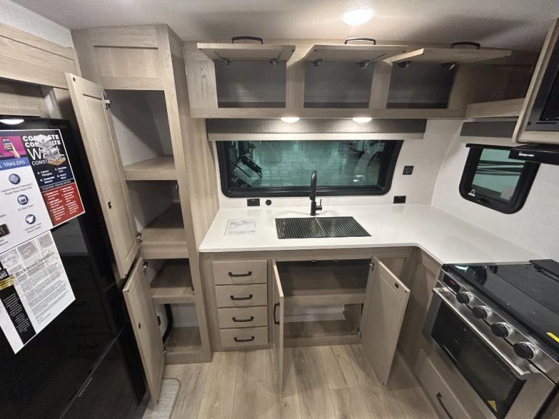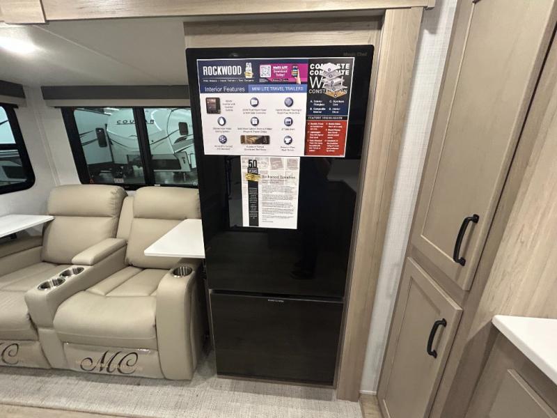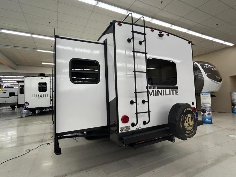 Each Rockwood Mini Lite travel trailer by Forest River is constructed with a fully laminated one-piece walkable roof, sleek frameless windows, and a six-sided full aluminum frame for strength and durability. The 12V thermostatically controlled heated tanks, plus radiant foil in the underbelly and slide out floors will allow you to camp well into the colder months, and the 200W roof solar panel will be perfect for a little off-gridding. Each model includes solid surface kitchen countertops, solid wood cabinet doors, night roller shades, plus many more interior features. Having an AIR 360+ omnidirectional antenna with WiFi prep on board gives you the option to get some work done if it's needed, and the power tongue jack provides hassle-free set up, so you can enjoy more time relaxing!
