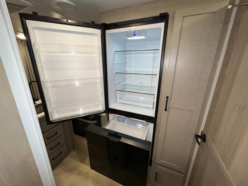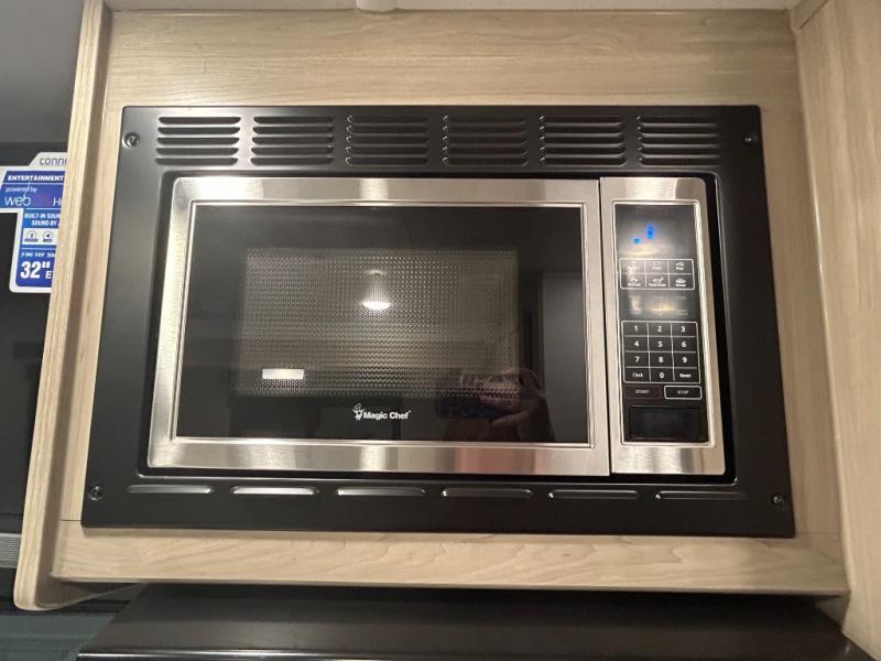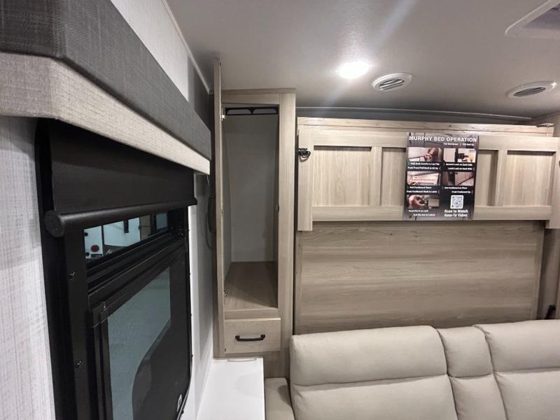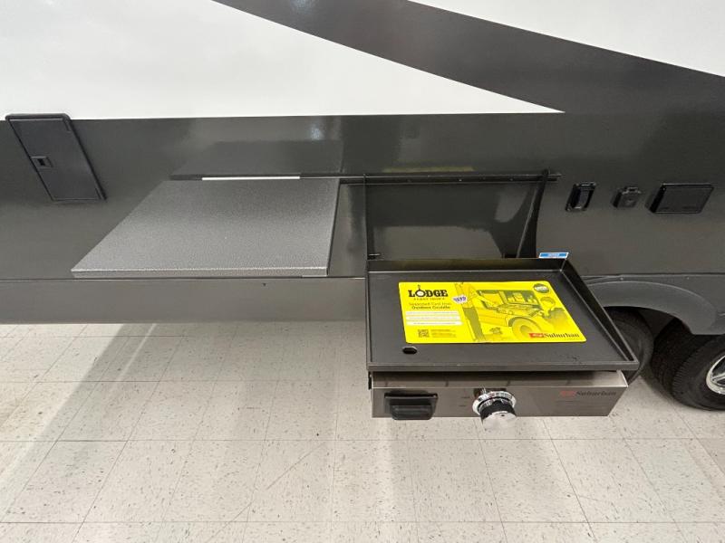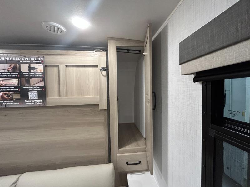 This trailer is one the whole crew will love! Start unloading the pass-thru storage when you arrive at your campsite, then put out the 18' power awning and start lunch on the exterior griddle. There is a full bath inside when you need to freshen up, and the fully-equipped interior kitchen can be used if the weather isn't cooperating with your plans. A U-shaped dinette slide provides a place to dine together and play board games, and two guests can sleep here at night. Speaking of nighttime, there is also a private bunkhouse in the back with a Dream Dinette and flip-up bunk plus a slide out for more space and an optional TV. You'll find your own space up front on the RV queen Murphy bed, complete with dual wardrobes and a privacy curtain when you need to get dressed. And in the morning you can fold away the bed to relax on the 74" sofa!