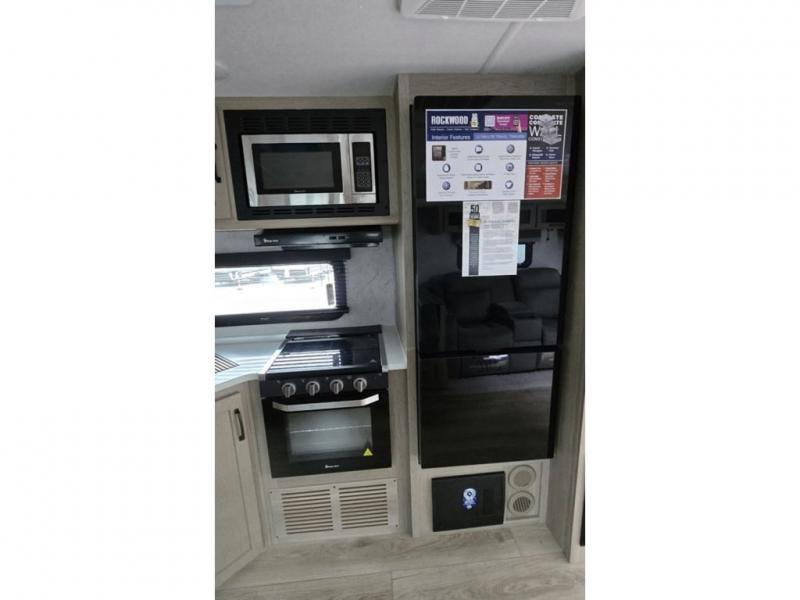 Each Rockwood Ultra Lite travel trailer by Forest River includes superior construction with a high gloss front cap, laminated white fiberglass sidewalls, and tinted frameless windows for a sleek look. The torsion axle, Rubber-Ryde suspension will make towing smooth and hassle-free, along with the nitrogen filled, Goodyear Endurance tires and the tire pressure monitor system. Interior comforts include designer kitchen backsplash, solid wood cabinet doors with hidden hinges, and night roller shades to name a few. Choose a Rockwood Ultra Lite travel trailer today!