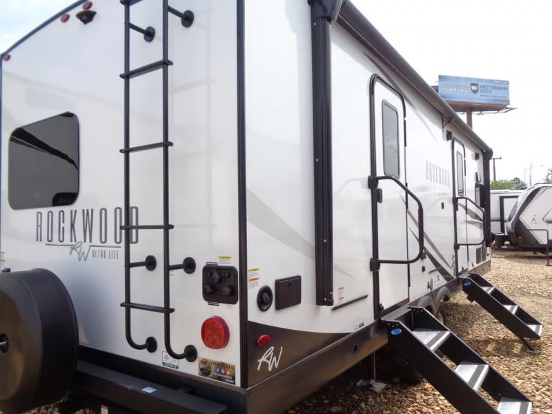 Each Rockwood Ultra Lite travel trailer by Forest River includes superior construction with a high gloss front cap, laminated white fiberglass sidewalls, and tinted frameless windows for a sleek look. The torsion axle, Rubber-Ryde suspension will make towing smooth and hassle-free, along with the nitrogen filled, Goodyear Endurance tires and the tire pressure monitor system. Interior comforts include designer kitchen backsplash, solid wood cabinet doors with hidden hinges, and night roller shades to name a few. Choose a Rockwood Ultra Lite travel trailer today!