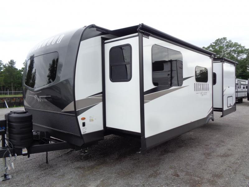 Each Rockwood Ultra Lite travel trailer by Forest River includes superior construction with a high gloss front cap, laminated white fiberglass sidewalls, and tinted frameless windows for a sleek look. The torsion axle, Rubber-Ryde suspension will make towing smooth and hassle-free, along with the nitrogen filled, Goodyear Endurance tires and the tire pressure monitor system. Interior comforts include designer kitchen backsplash, solid wood cabinet doors with hidden hinges, and night roller shades to name a few. Choose a Rockwood Ultra Lite travel trailer today!