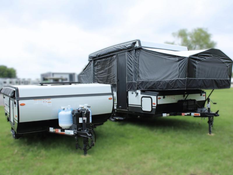 The Clay exterior with alloy banding gives this pop-up a clean, modern look. An LED-lit awning, one-piece screen door, and two 20 lb. LP tanks round out a feature list designed to keep you powered, protected, and ready for anything.